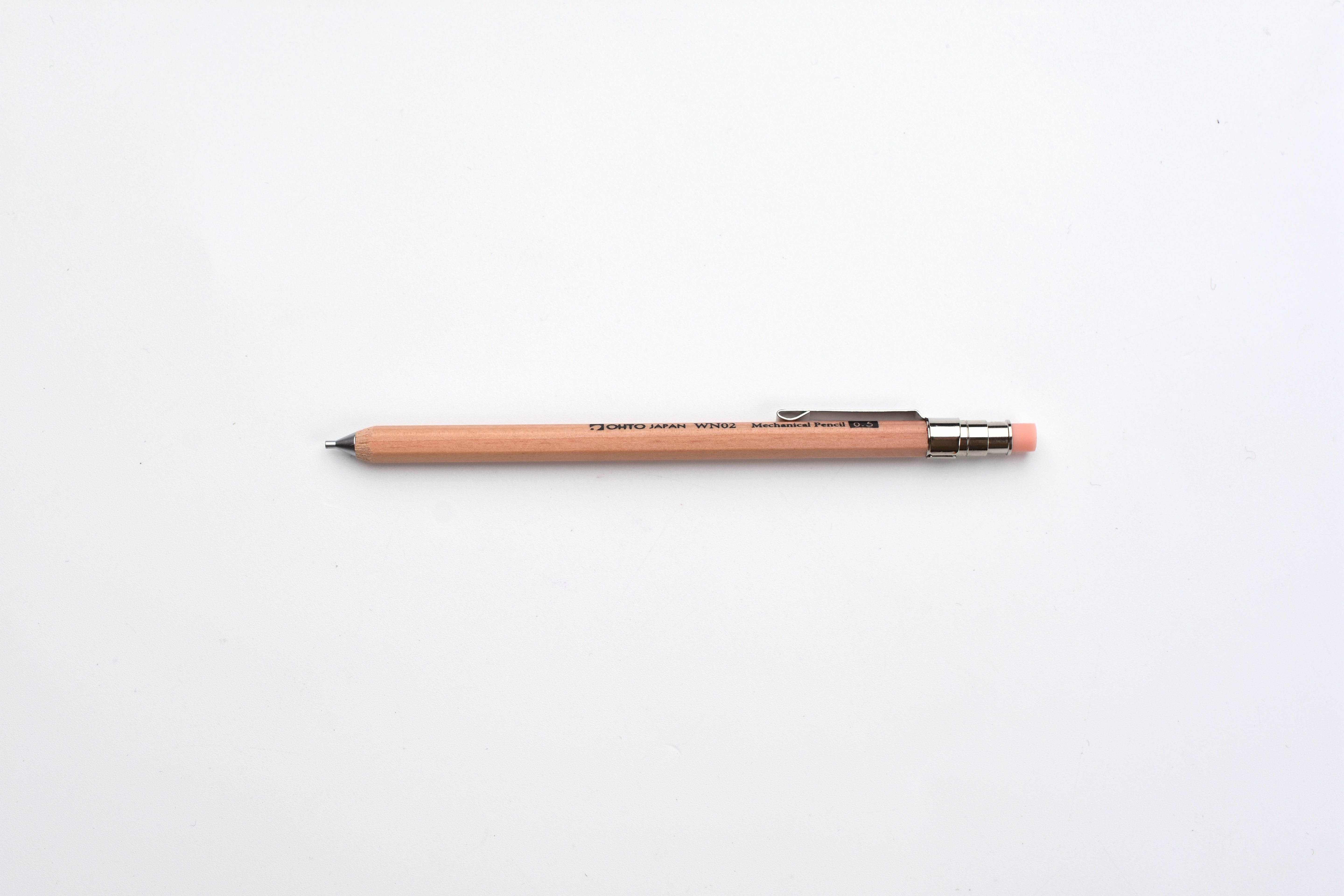 This pencil is part of OHTO's WN02 (“Warm and Natural”) series—a compact mechanical pencil that blends the traditional aesthetics of a wooden pencil with the convenience of a mechanical design. Crafted with a natural incense cedar barrel, it offers a warm, tactile feel reminiscent of classic writing tools. Its compact form makes it perfect for on-the-go use, easily fitting into pockets, small pen loops, or clipped securely inside an A7-sized notebook.