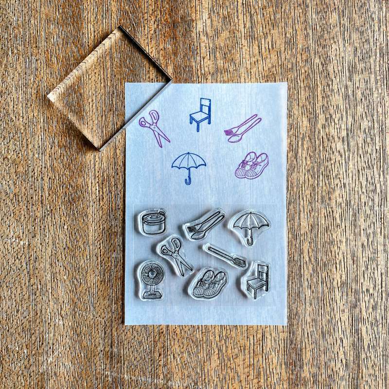 Each of the Mizushima Jizai Clear Stamp Set - Pocket packs come in a small resealable pouch with 10-16 different clear stamps and one acrylic block. Each pack features a different theme such as fruits, animals, work, and many others. The small size of the clear stamps are great for decorating your planner or journal, gift tags, note cards, and so much more. The clear acrylic block allow you to see exactly where you’re placing your stamp.