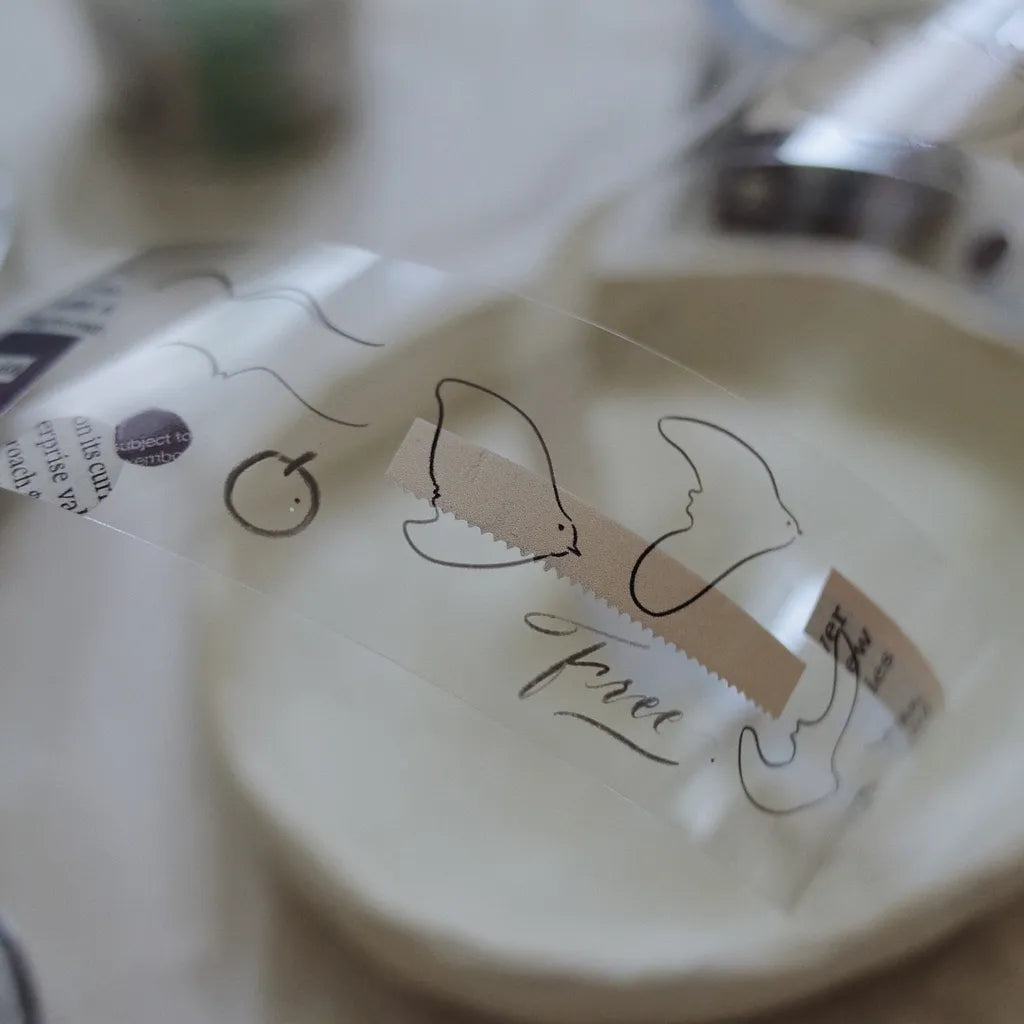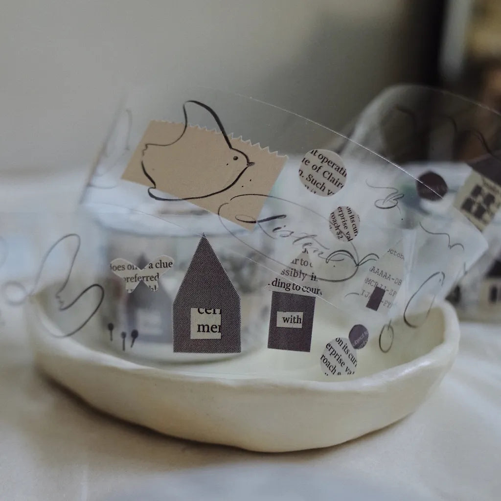 This Matte PET Tape has a nostalgic print of illustrated birds, homes and handwritten notes with book page cut outs of different shapes. It's the accent for your journaling, decorating and crafting.