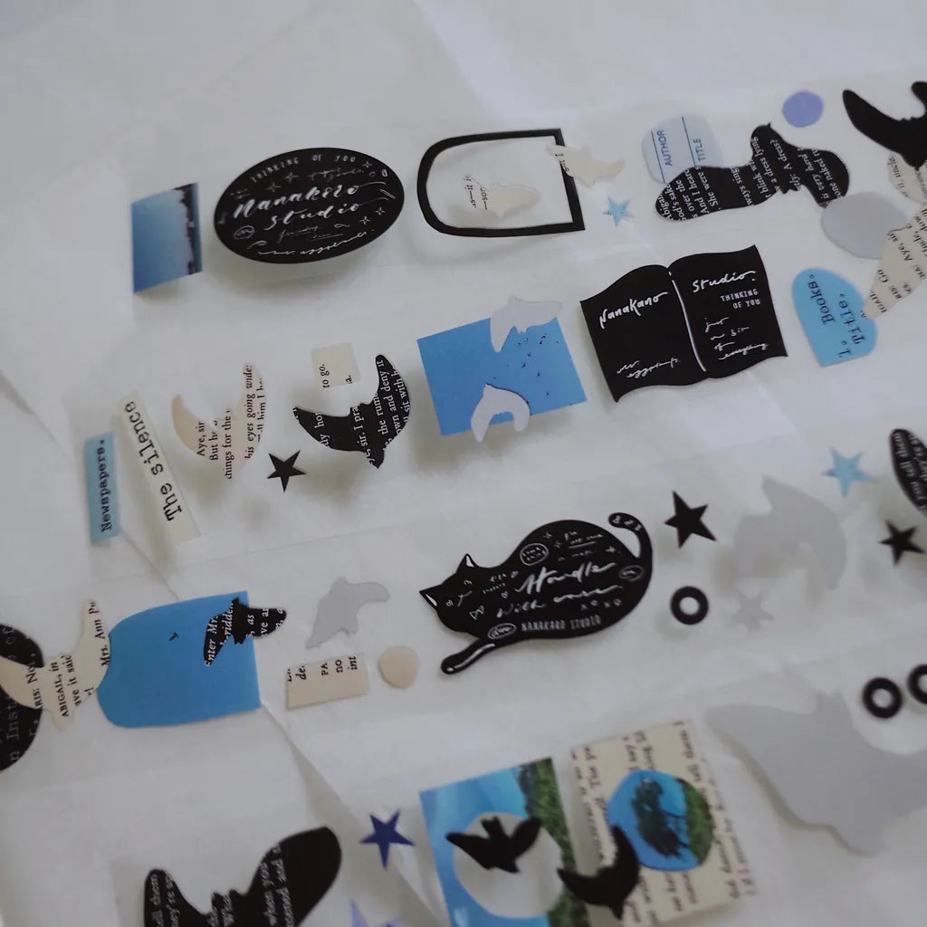 This PET tape has beautifully hand written quotes and illustrated birds and cats with text elements printed into their silhouettes. This PET tape is perfect for your journaling spreads and crafts.