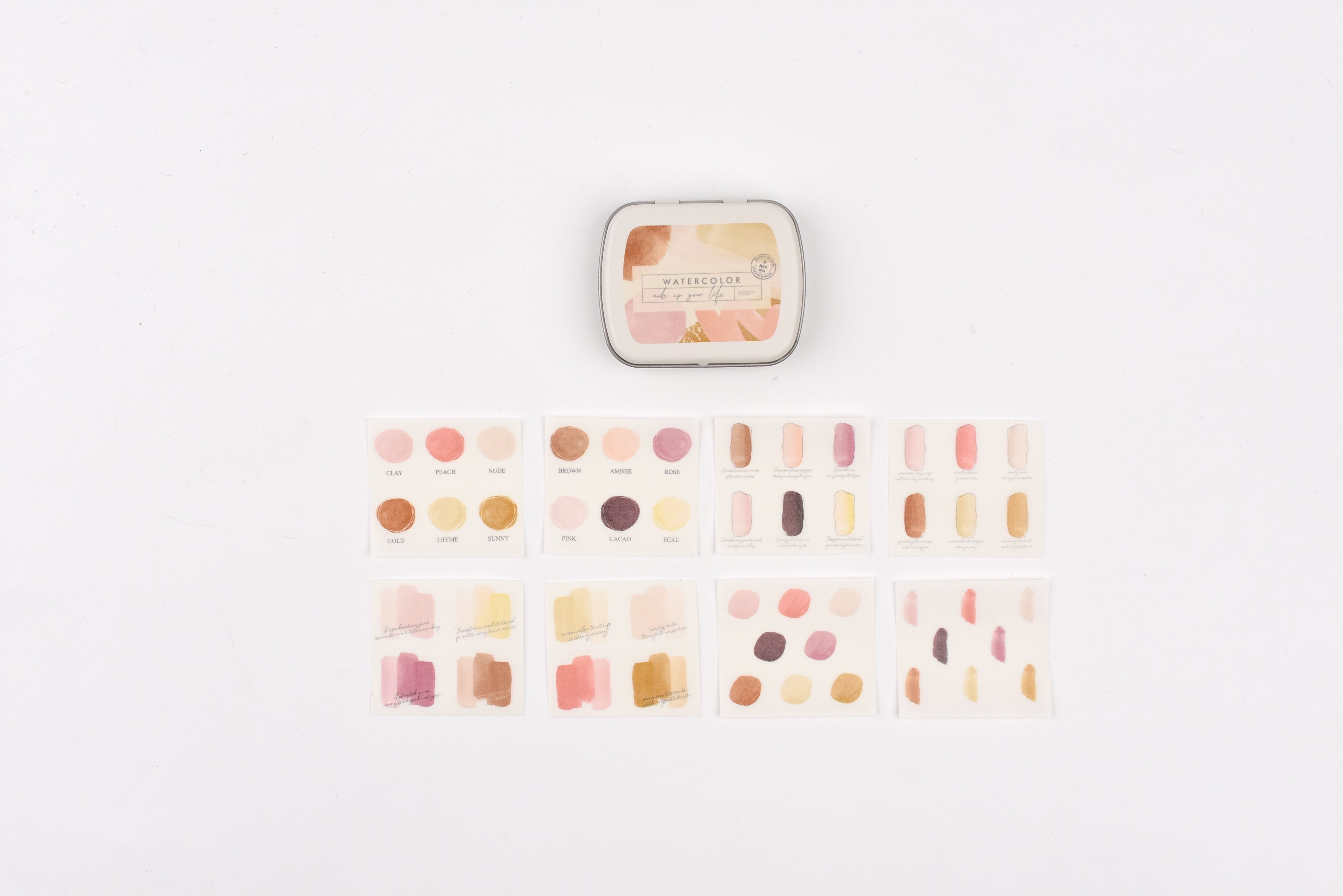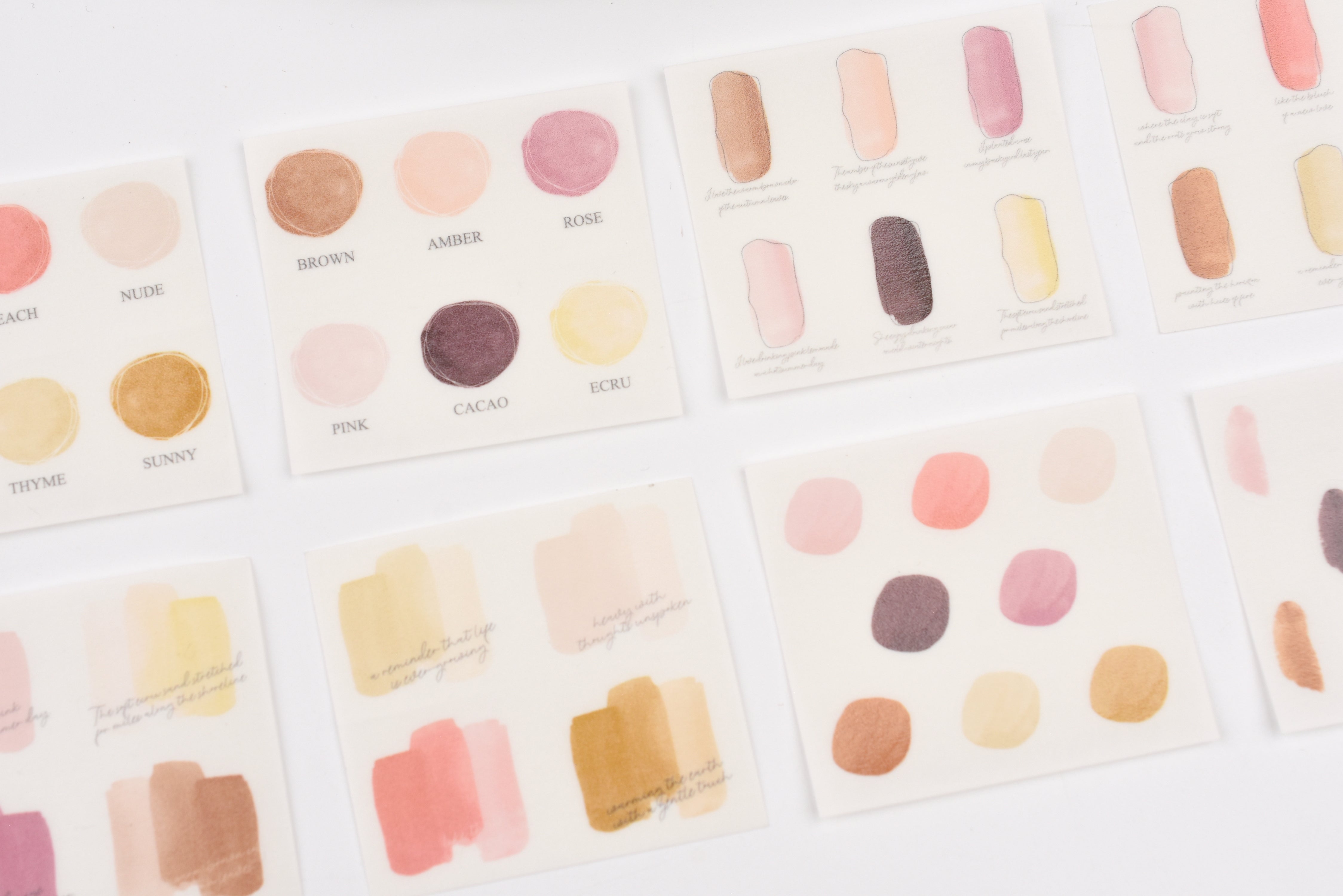 MU Mini Tin Palette Stickers is a set of stickers packaged in a mini tin box, offering a convenient and stylish way to organize and access them. Inspired by the essence of watercolor sets, these washi paper stickers capture the charm of watercolor hues. Available in a variety of shapes—round, square, and rectangular—they are perfect for adding a splash of vibrant color and artistic flair to your creative projects.