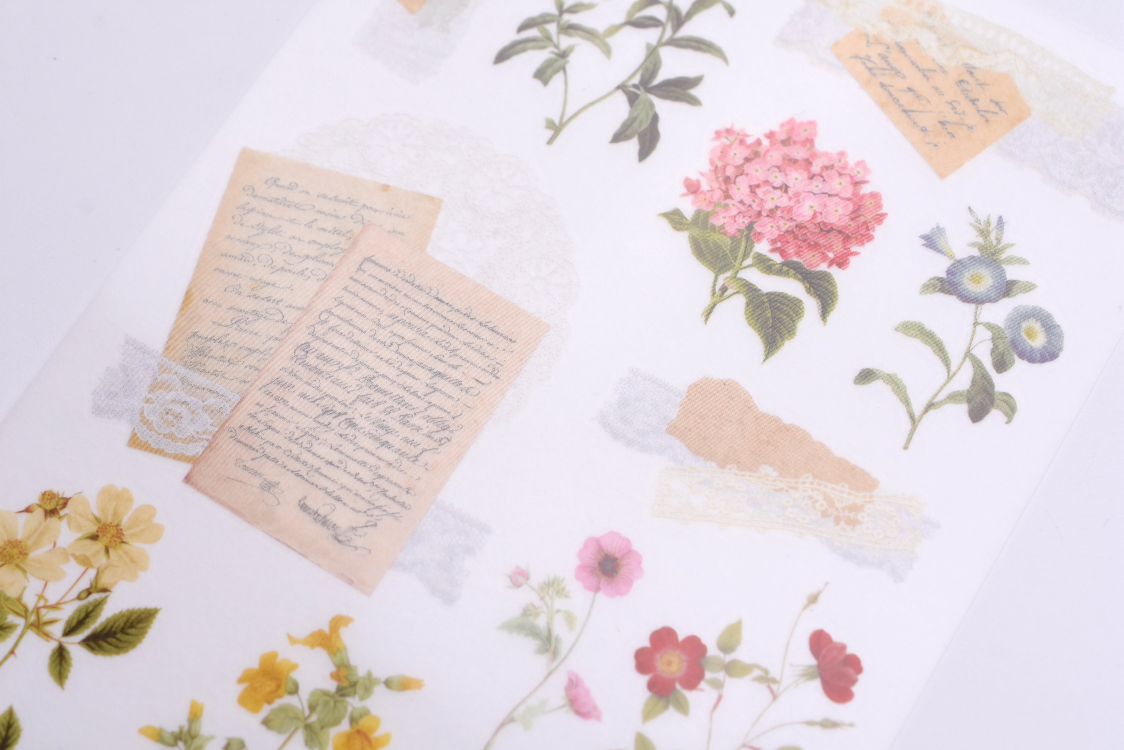 MU Print-On Stickers come with 2 sheets of different sticker designs and are perfect for decorating and personalizing. They can be used on paper, wood, glass and other smooth surfaces. Overlay the stickers in your journal, on cards, or other objects to create your own designs. To use, cut out the desired patterns, separate the back paper, position it on the surface you wish to print on, use a hard edge such as the wooden transfer stick to scratch all over the design and then tear off the plastic layer to reveal the finished print-on.