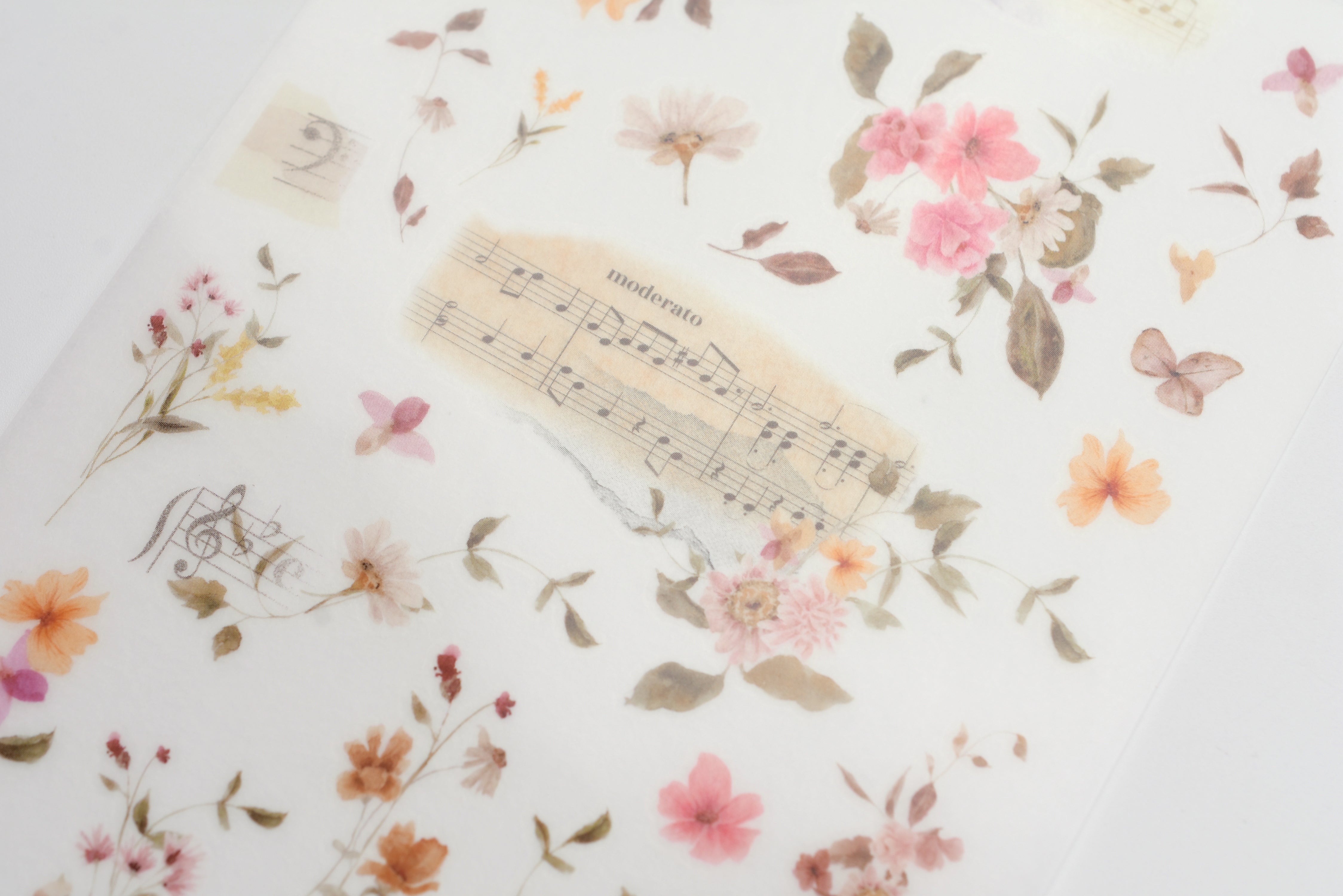 MU Print-On Stickers come with 2 sheets of different sticker designs and are perfect for decorating and personalizing. They can be used on paper, wood, glass and other smooth surfaces. Overlay the stickers in your journal, on cards, or other objects to create your own designs. To use, cut out the desired patterns, separate the back paper, position it on the surface you wish to print on, use a hard edge such as the wooden transfer stick to scratch all over the design and then tear off the plastic layer to reveal the finished print-on.