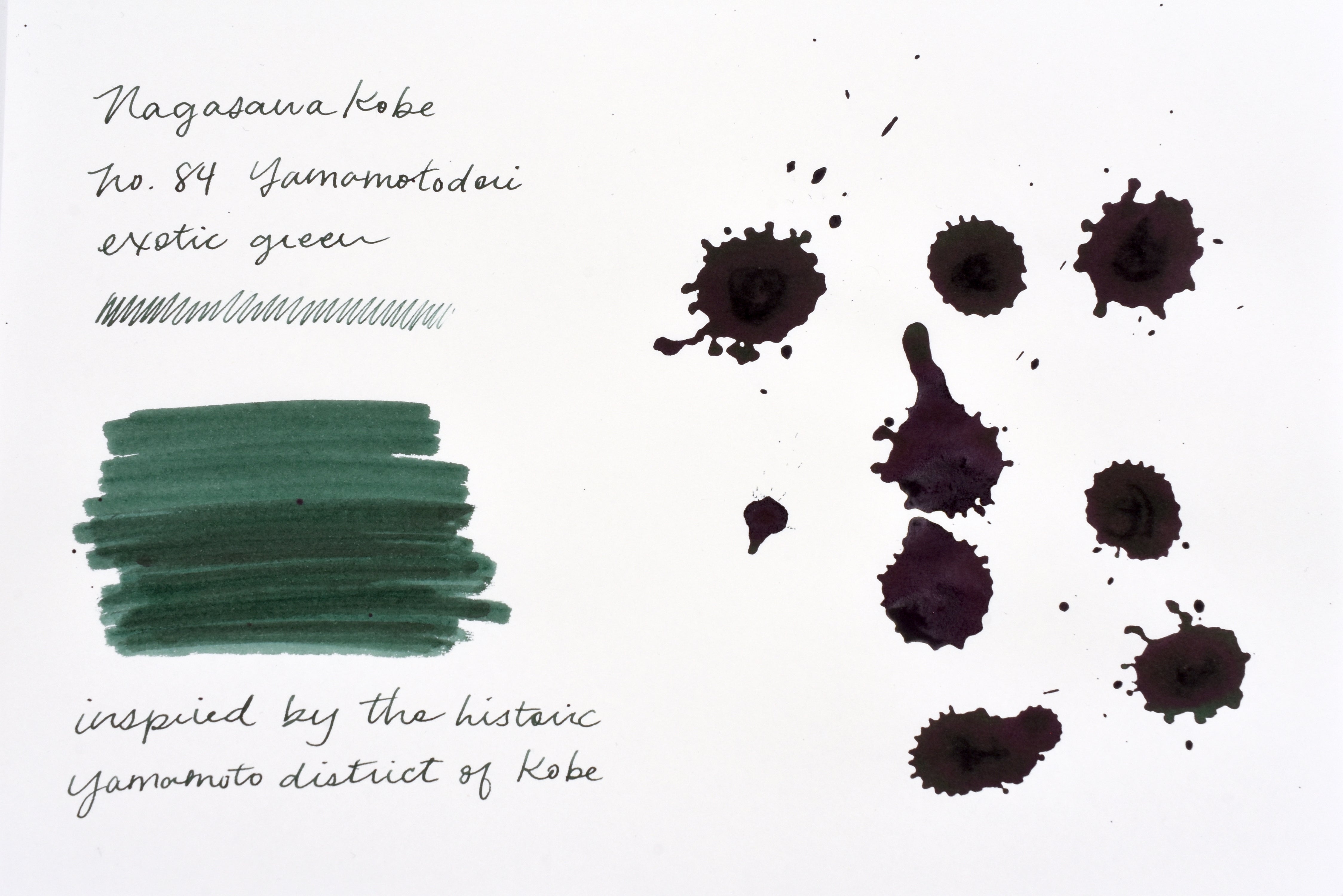 Nagasawa Kobe Ink No.84 Yamamoto-dori Exotic Green is inspired by the historic Yamamoto district of Kobe, where Western and Japanese architecture blend seamlessly. This deep, elegant green reflects the refined beauty and timeless charm of the area's traditional buildings, preserved as a cultural treasure since 1980.