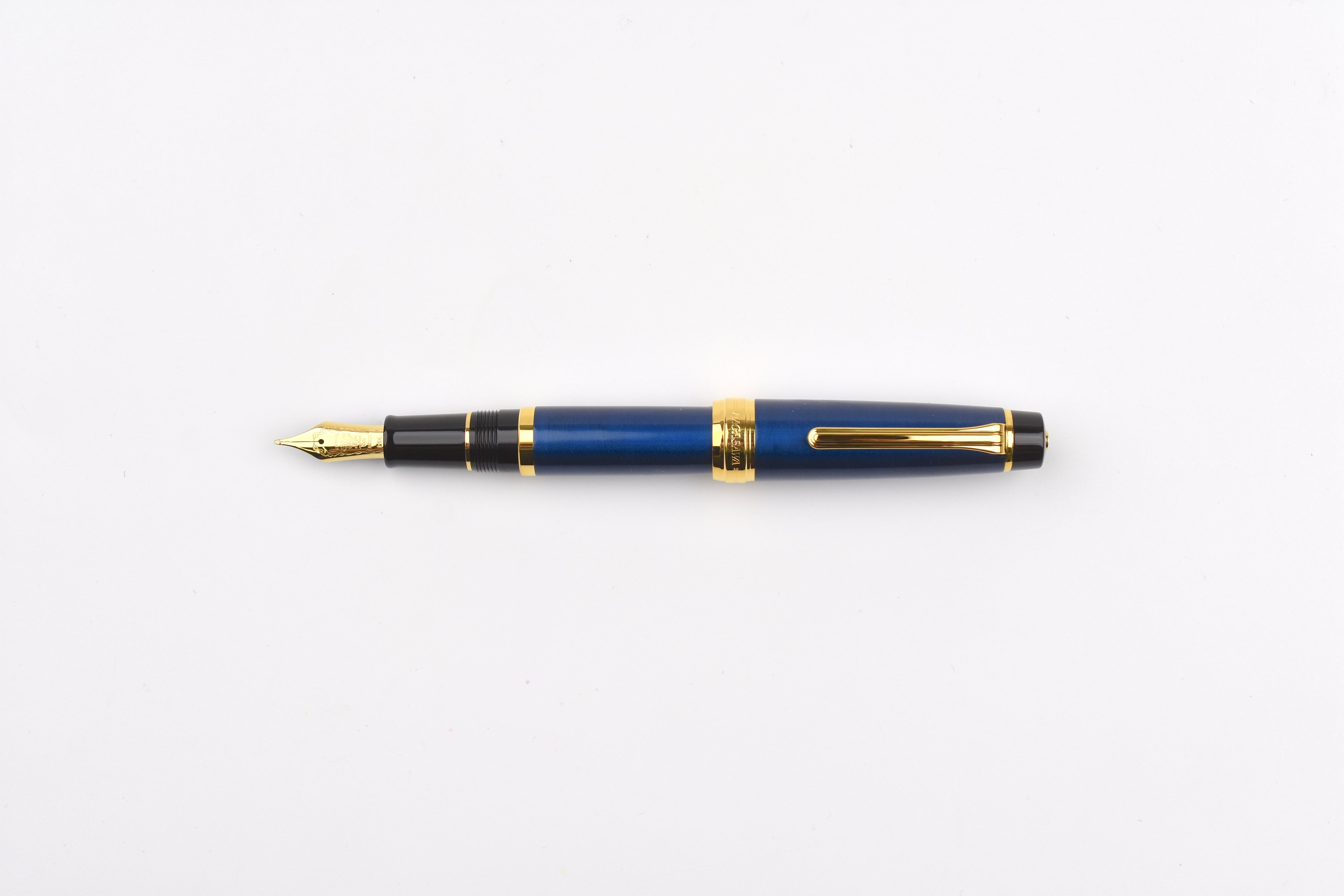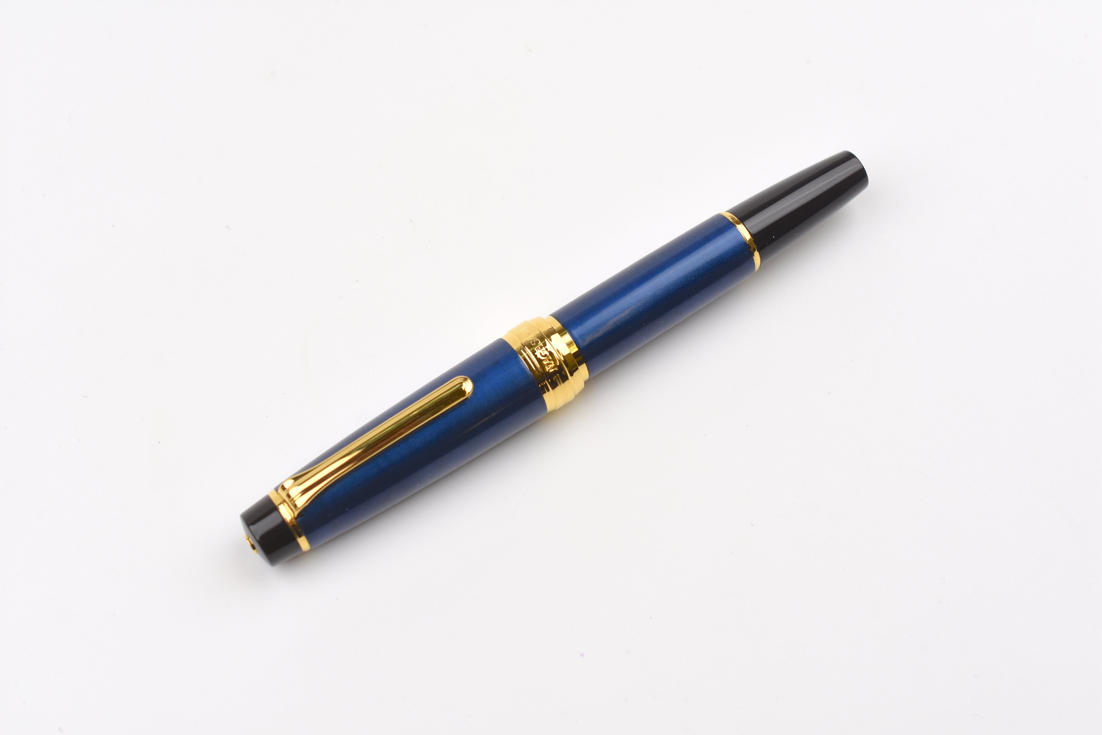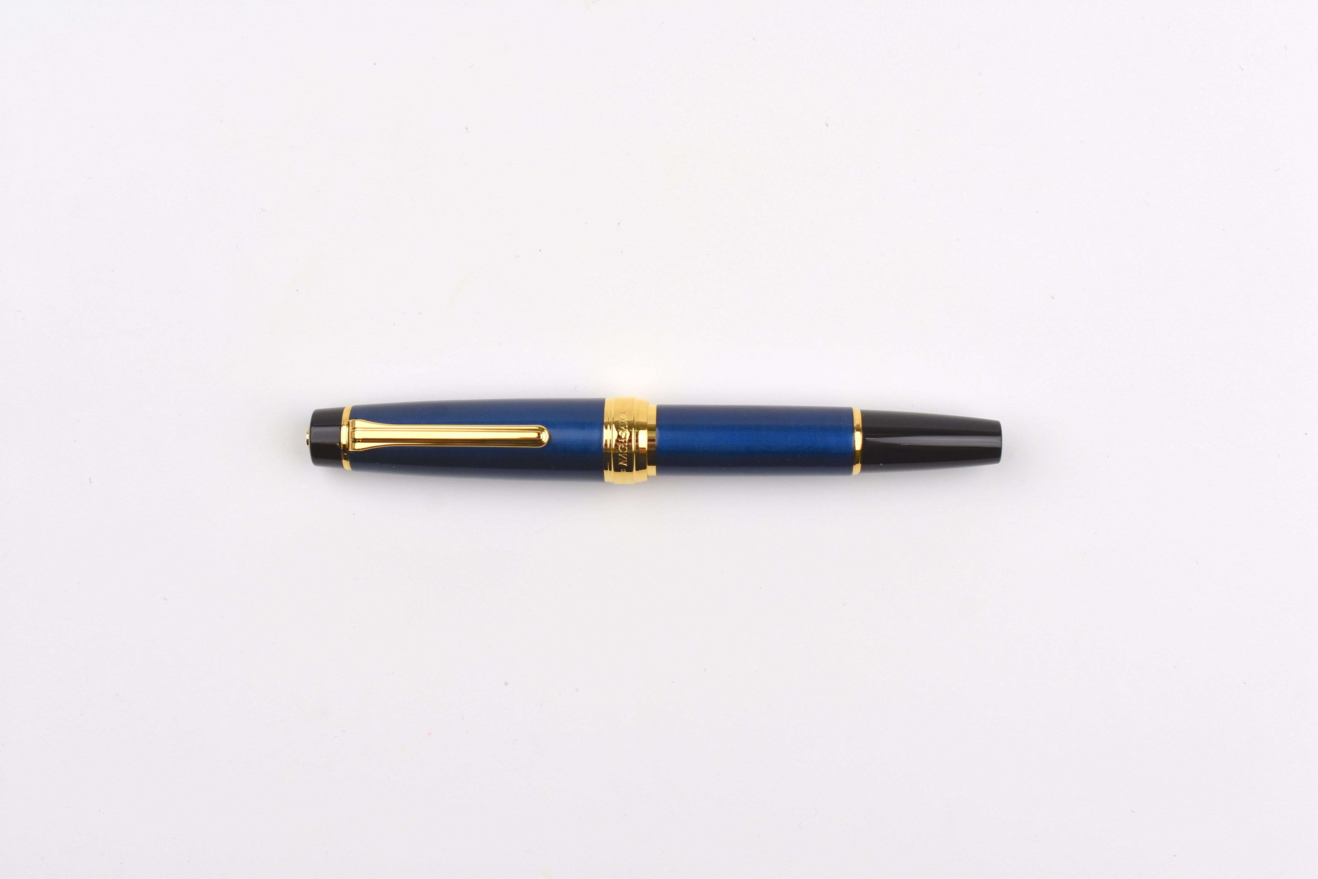 The Kitanozaka's deep, transparent blue finish pays homage to Nagasawa’s original "#38 Kitanosaka Night Blue" ink—an elegant shade reminiscent of the serene night sky over Kitanozaka. Equipped with a specialty Naginata Togi nib, the pen is specifically designed to enhance the beauty of Japanese Kanji writing, rich in tome, hane, and harai strokes. The unique curvature of the nib allows for expressive line variation, producing bold strokes when angled low and delicate thin lines when held upright. As a mark of authenticity and heritage, the nib is engraved with a weathervane—an emblem found exclusively on Nagasawa’s original fountain pens.