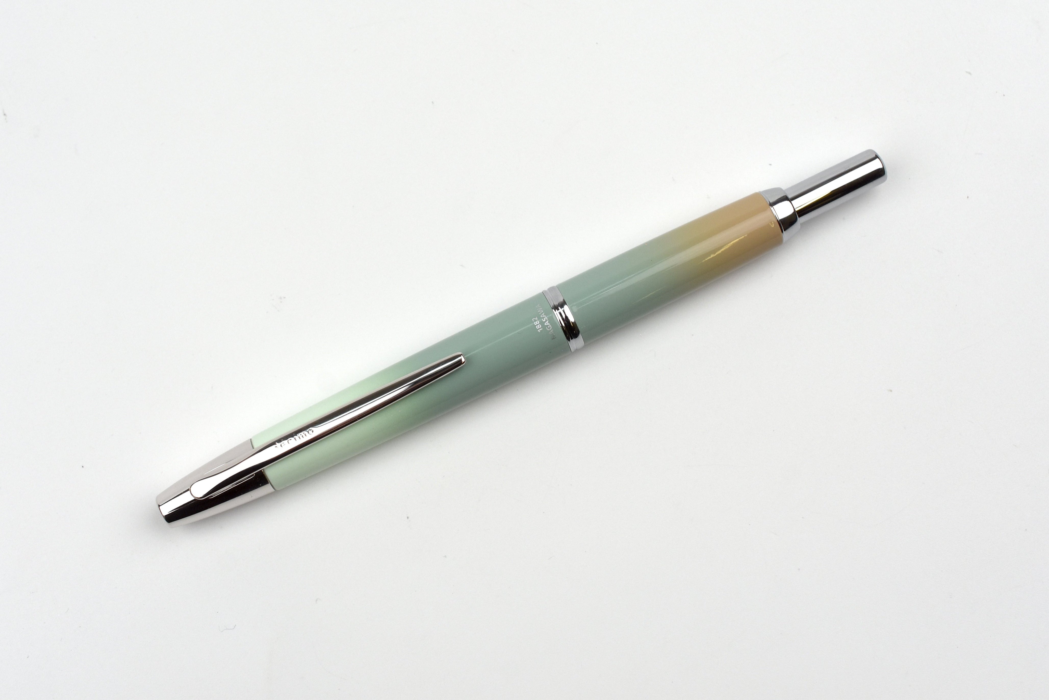 The pen's body features a gradient inspired by a blend of the two Kobe inks, "No. 75 Harbor Mint" and "No. 40 Sumiyoshi Brown". This combination captures the refreshing gradient of the sea and port, reflecting the colors of the Old Kobe Signal Tower at Kobe Port, the oldest remaining signal tower in the city.