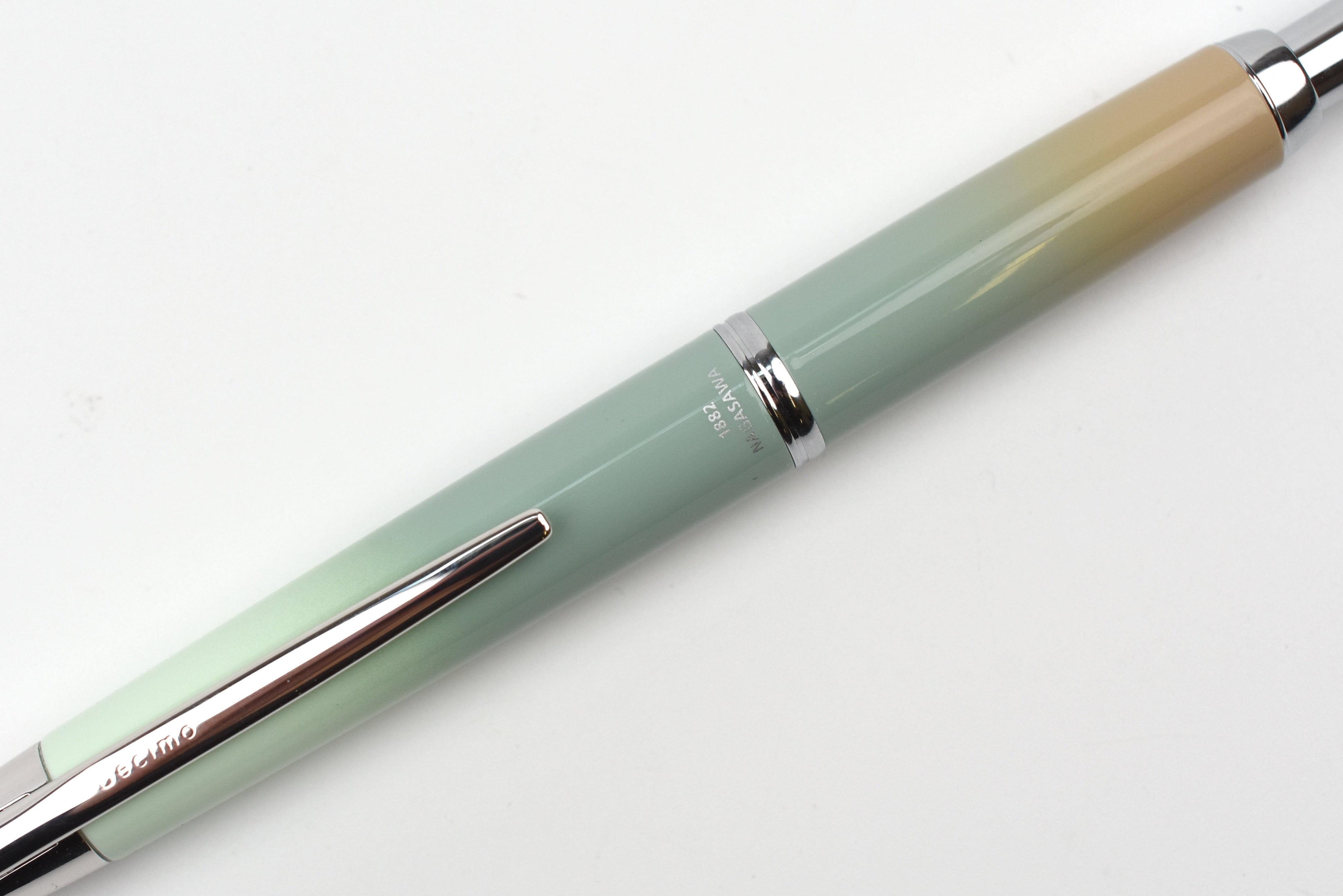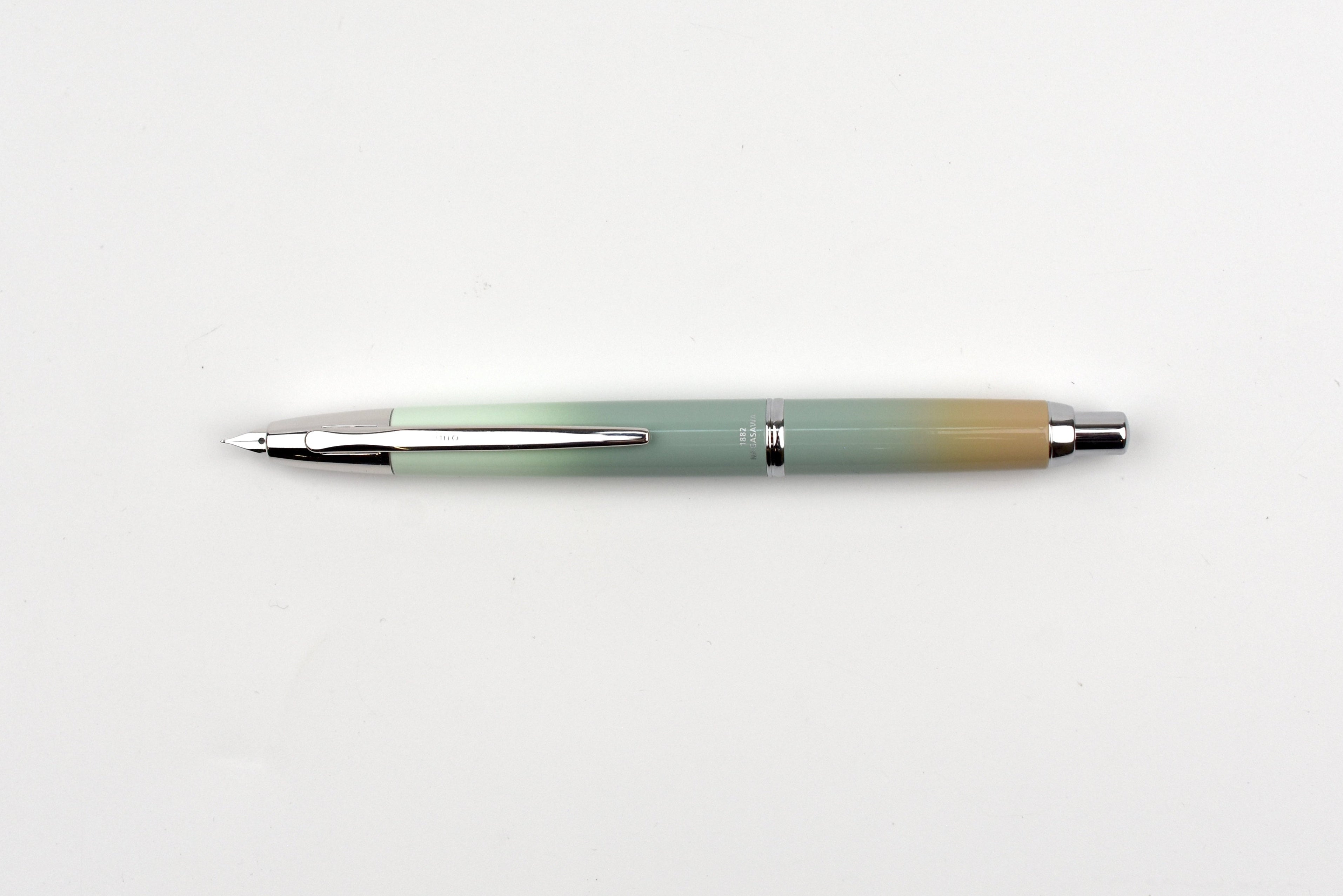 The Decimo fits beautifully in the hand and the nib is excellent. The Kobe Nagasawa special edition has an elegant gradation of the Harbour Mint Green with a tinge of peach at the end. I had been unsure about the peach in photos, but in person it suits. A gorgeous pen.
