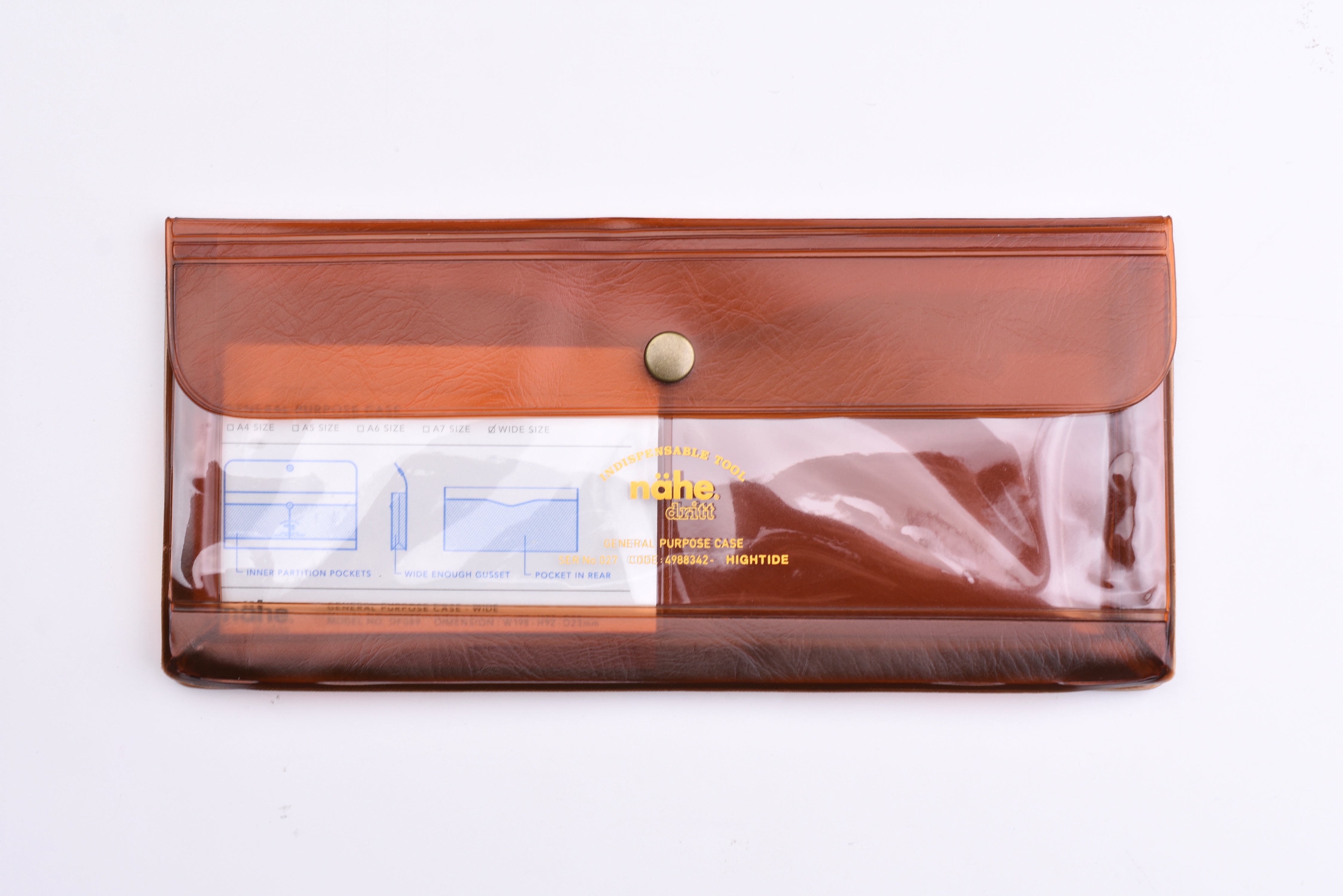 Nähe General Purpose Case - Wide - Clear Brown. The clear PVC pouch makes it easy to organize and instantly see and store pen, stationery and small gadgets.
