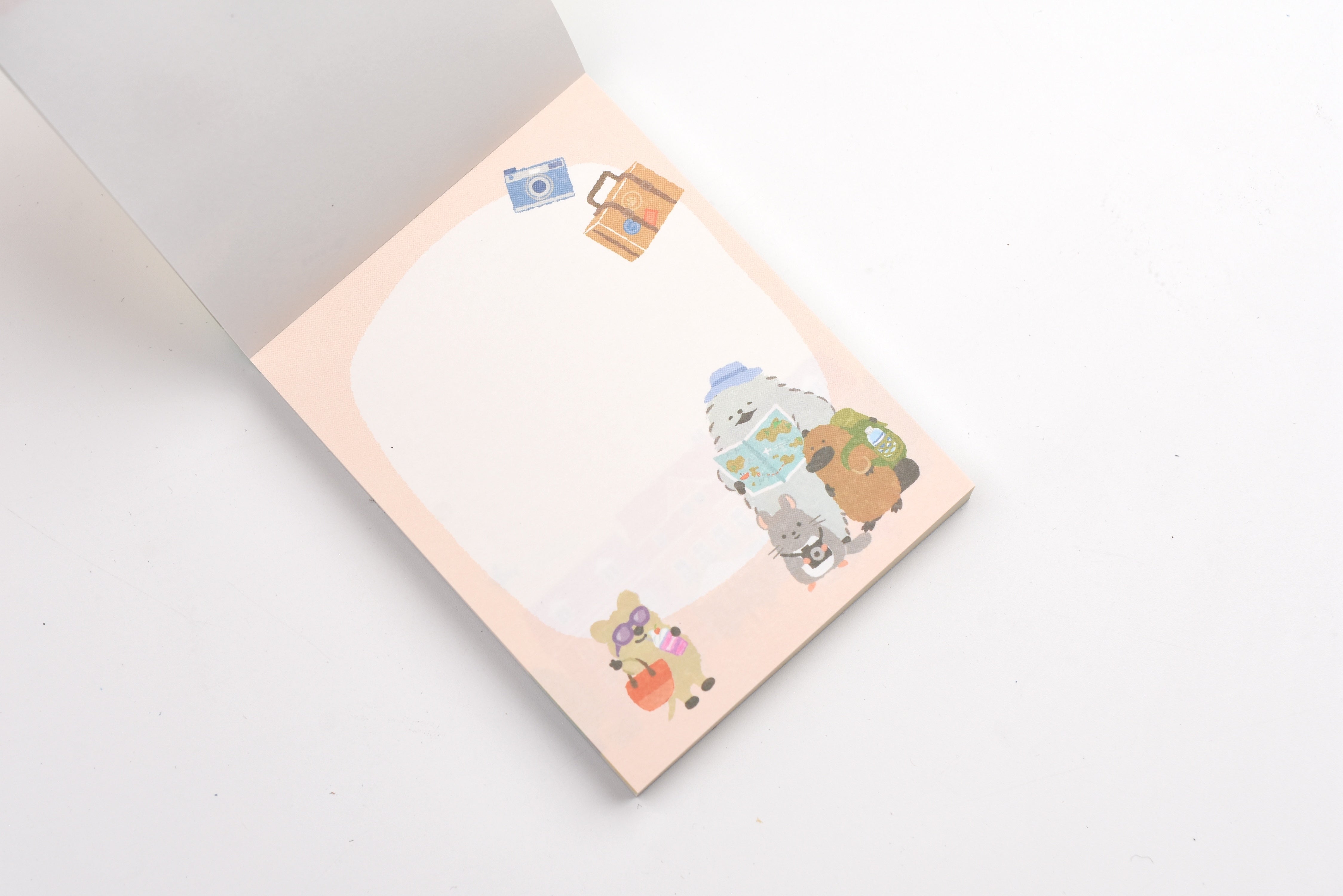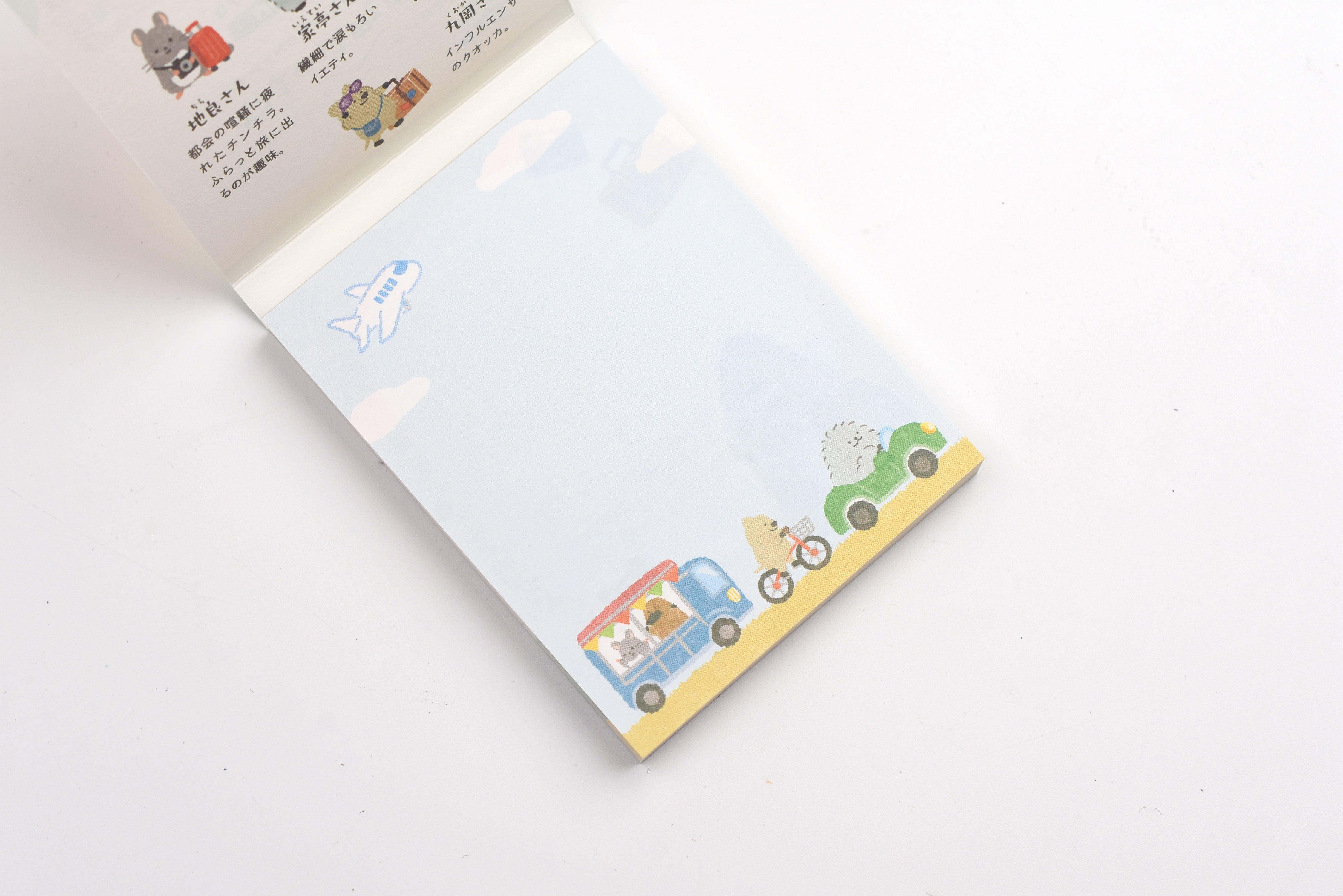 This memo pad features the charming animal characters from the "Yamanoha Chonaikai" (Yamanoha Neighborhood Association) series. With delightful illustrations of animals off on their travels, it brings a cheerful, adventurous feel to your notes, reminders, and messages. A fun way to add a sense of wanderlust to your everyday writing.