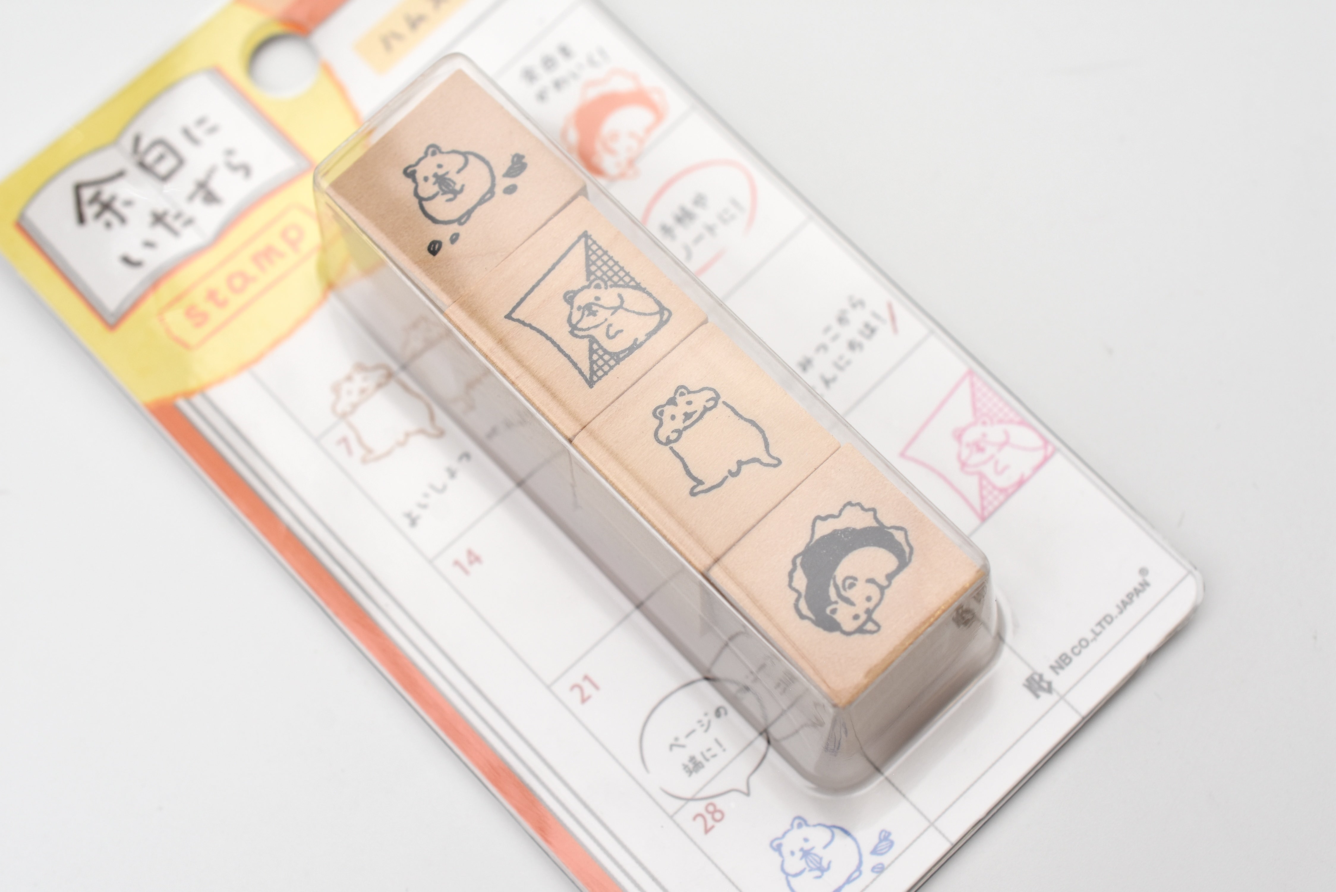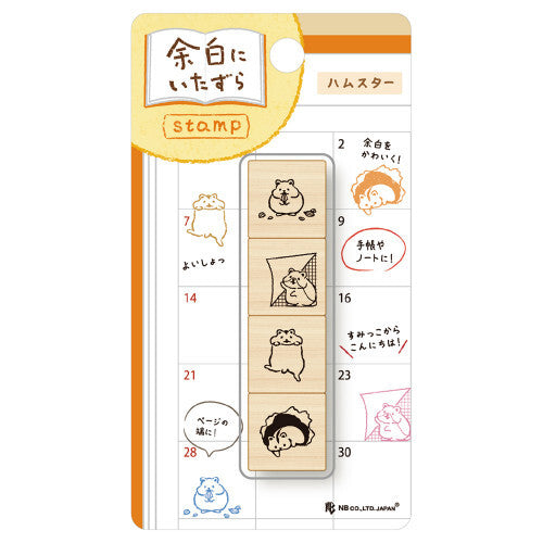 余白にいたずら (Yohaku ni Itazura) means “Doodles in the Margins”, a fitting name for this playful stamp series. This Hamster-themed set includes 4 compact wooden stamps featuring an adorable hamster character in various poses and expressions. Whether you're decorating a planner, journal, or memo, these stamps make it easy to turn mundane calendar corners and plain margins into fun, expressive corners of creativity.