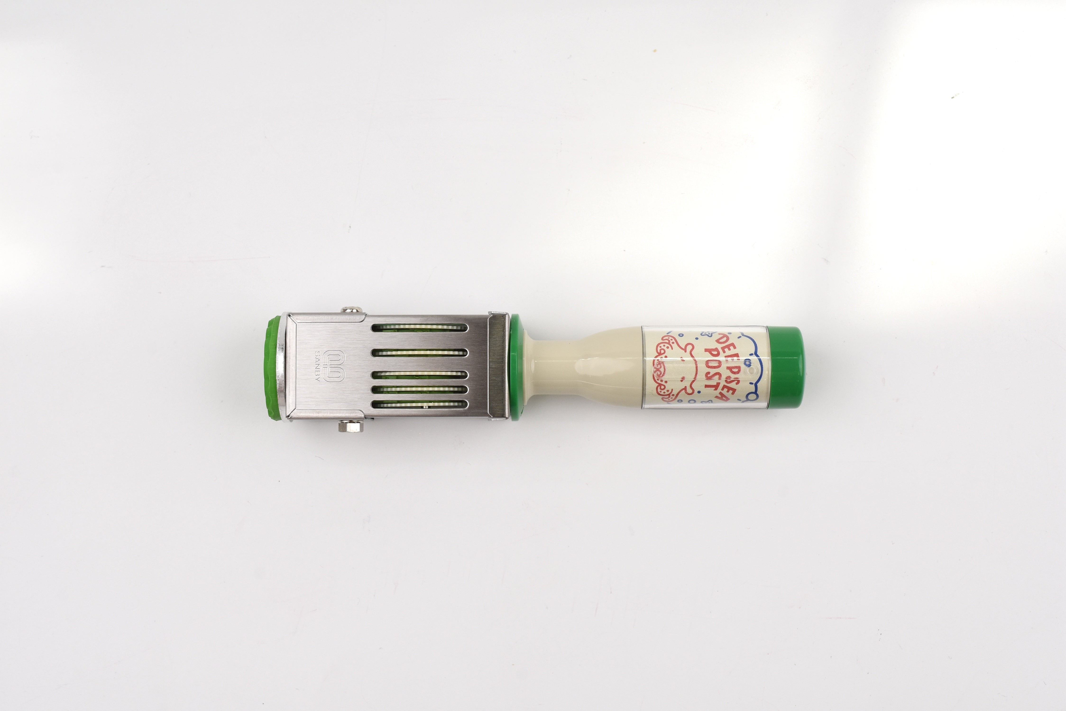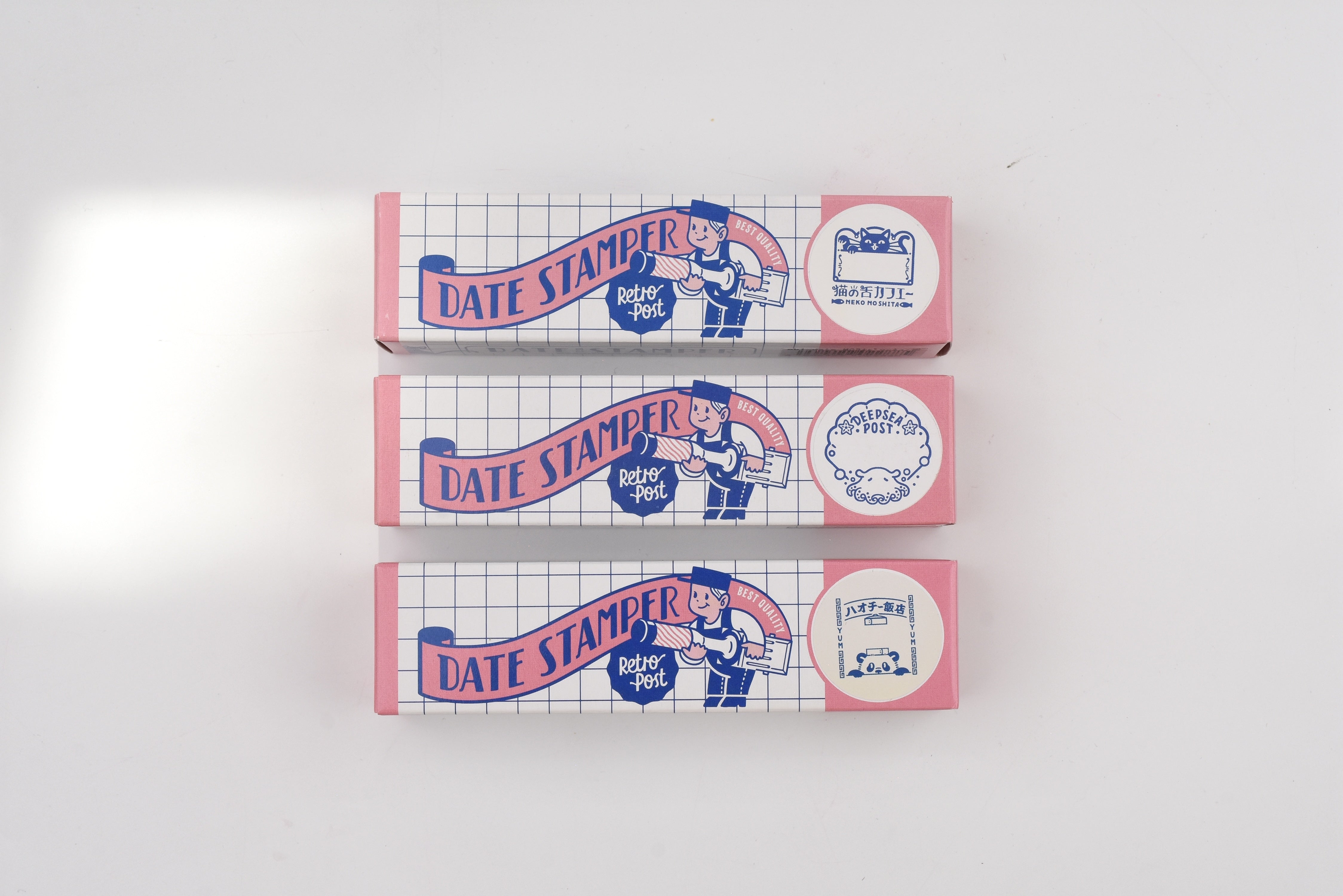 This retro-style date stamp is a special collaboration between Sanby and ob1toy (Obi-One/Wan), a talented graphic designer and illustrator known for his bold, playful artwork. Each design captures a lively scene—from cozy cafés to underwater mailrooms—infused with ob1toy's signature retro-inspired charm.