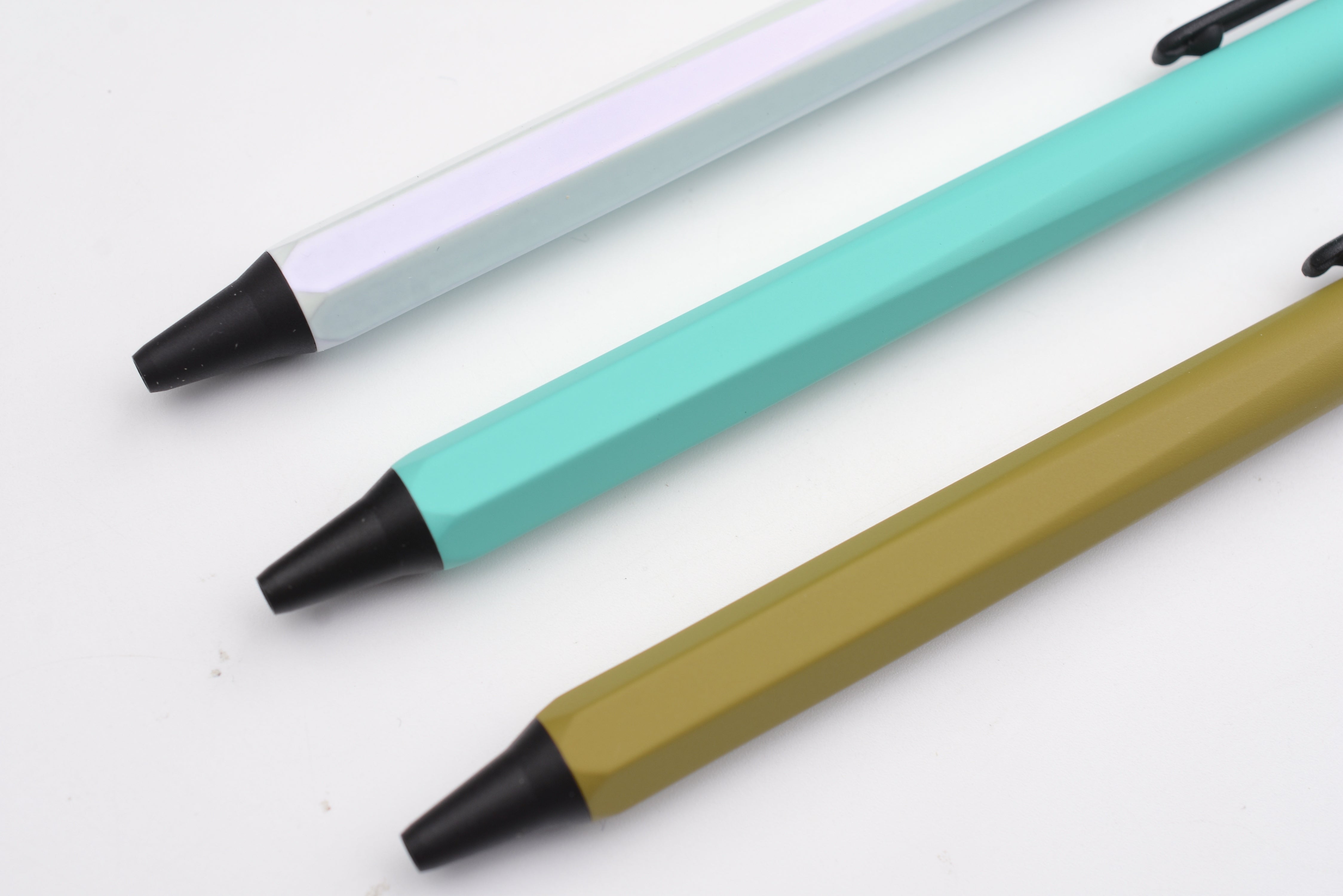 Love this pen with ergonomic grip perfectly designed for my fingers and grip; also, not to heavy nor light, not slippery (not sure about the white one as I did not buy that one as I prefer matte or semi matte finish) just perfect and with the best refill inside that I have come across yet it is a bomb of a pen. This is the one to have for sure. Hope they make one in yellow color and why not few more colors. Best Japanese click pen I have come across ever and as pen aficionado I have tried hundreds of Japanese pens.