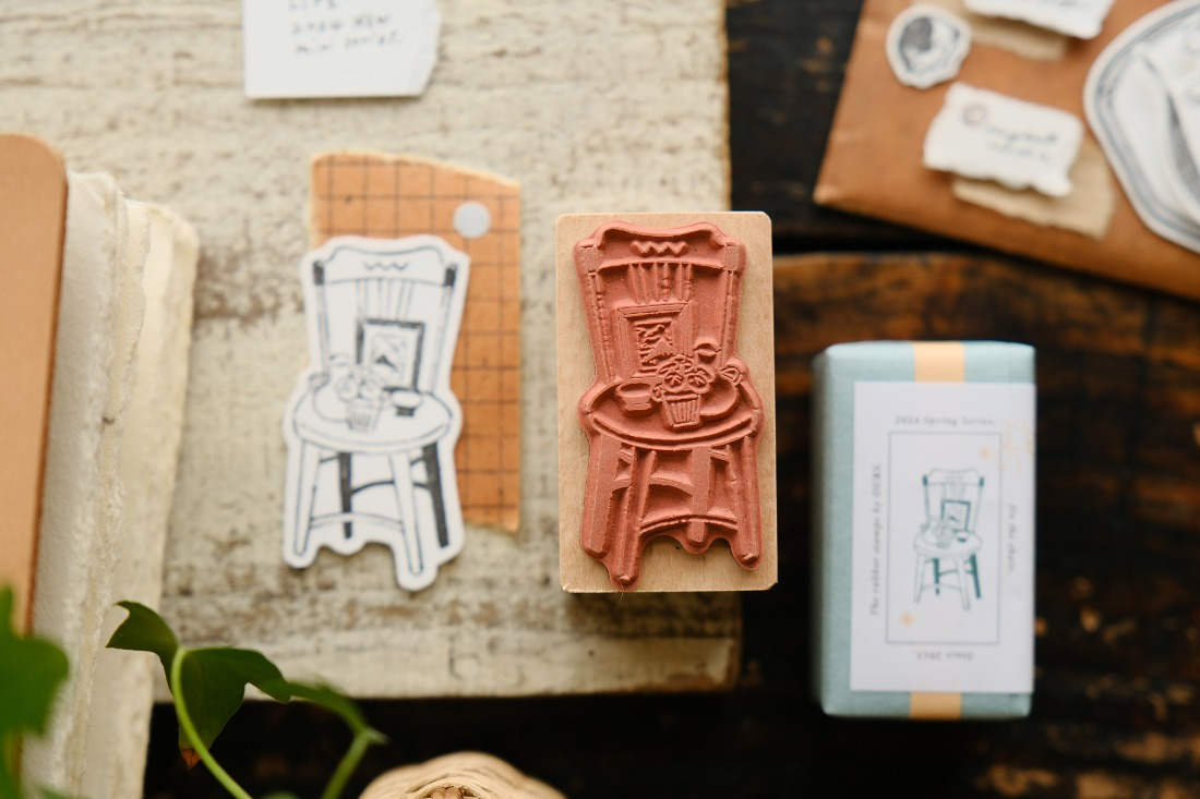 A new adorable design by Koopa, this stamp encourages you to decorate your journal or notebook just like your home, one little spot at a time! This cute catch-all chair holds a picturesque lansdscape photo, a vase, and plant to spruce up the corner of your page.
