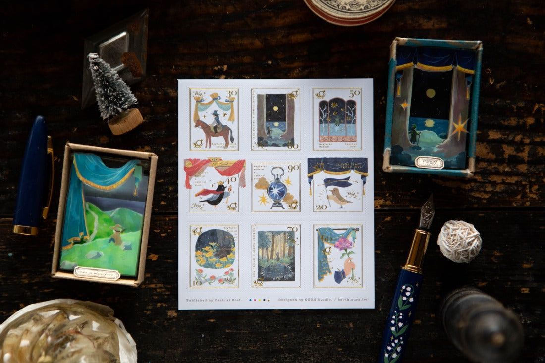 The Wayfarer 2 series is inspired by the fantastical journey of a traveler wandering to collect botanical specimens. Paper theater elements were also incorporated into the design, making this series perfect for you to create collages.