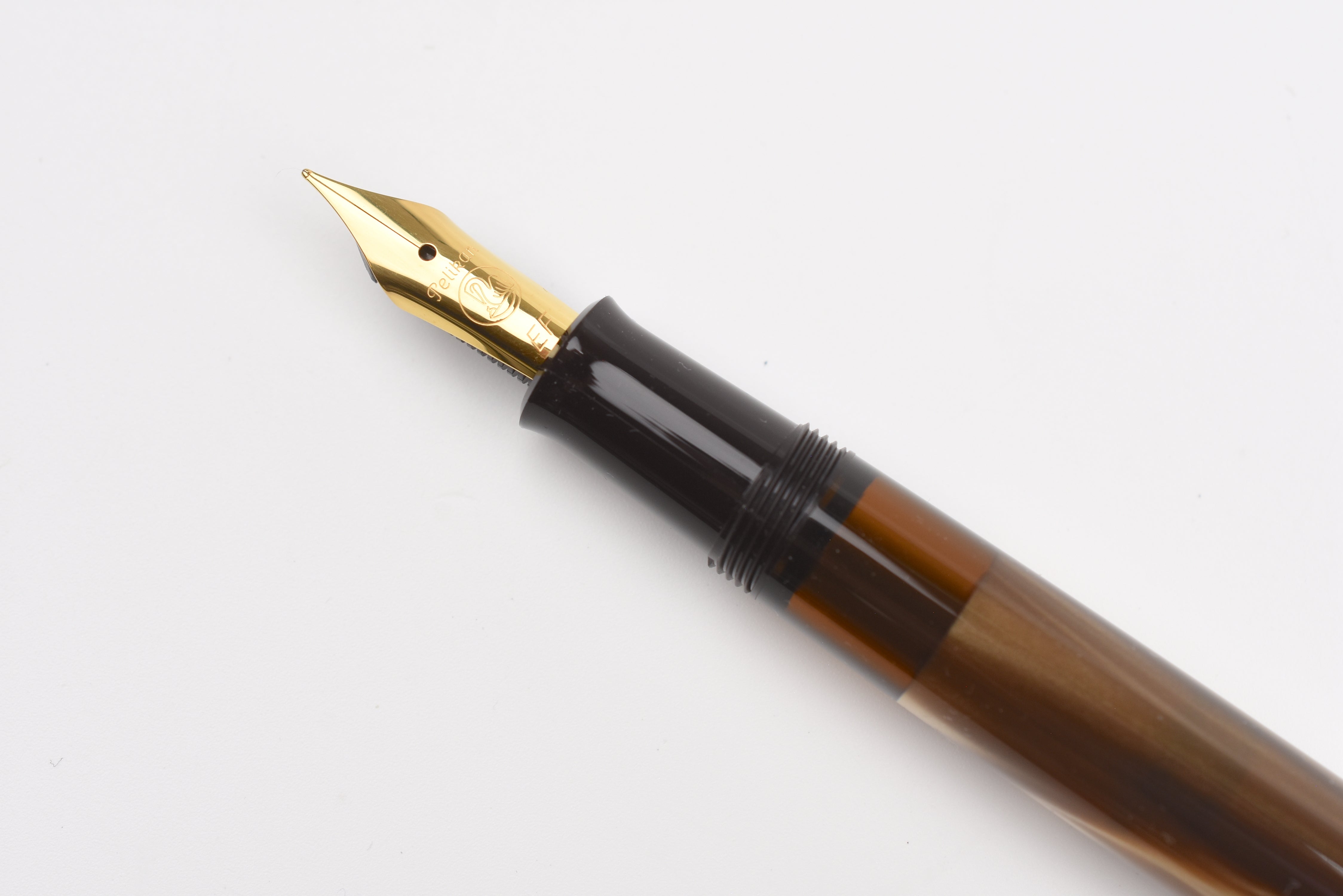 The Classic Brown Marble features a stunning brown marble finish that shimmers with a captivating pearlescent sheen. A transparent amber window near the grip offers a glimpse of the ink level, combining style with practicality.