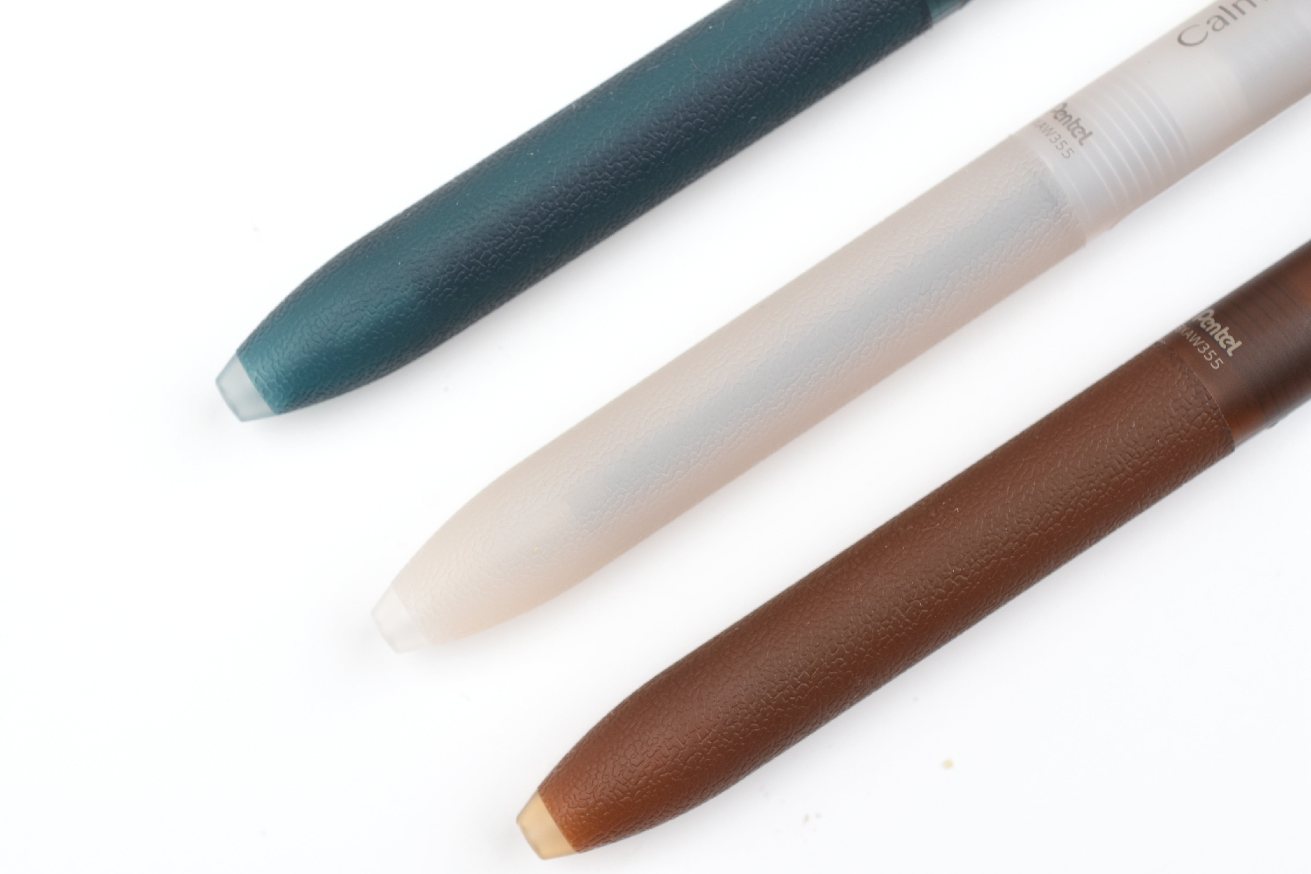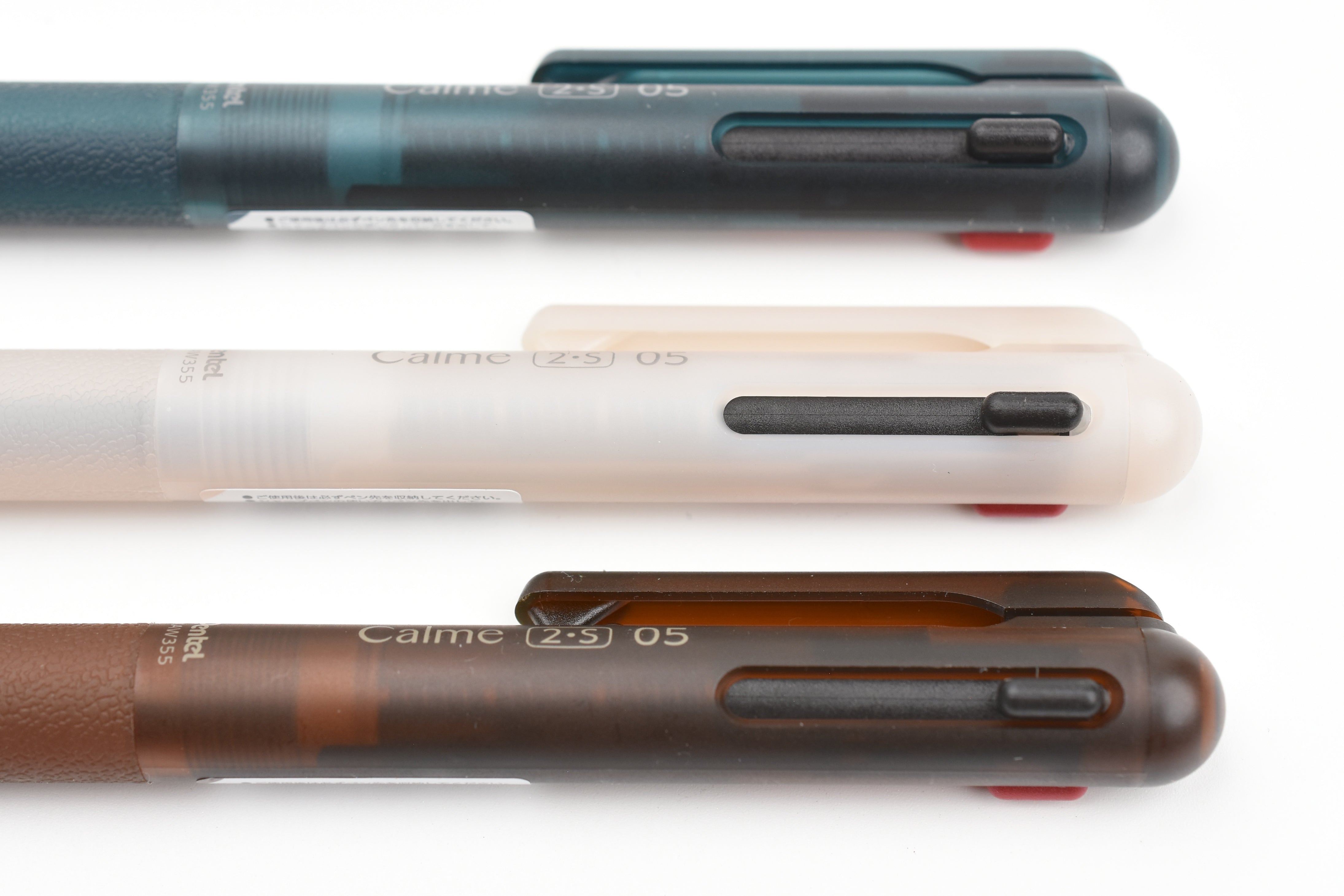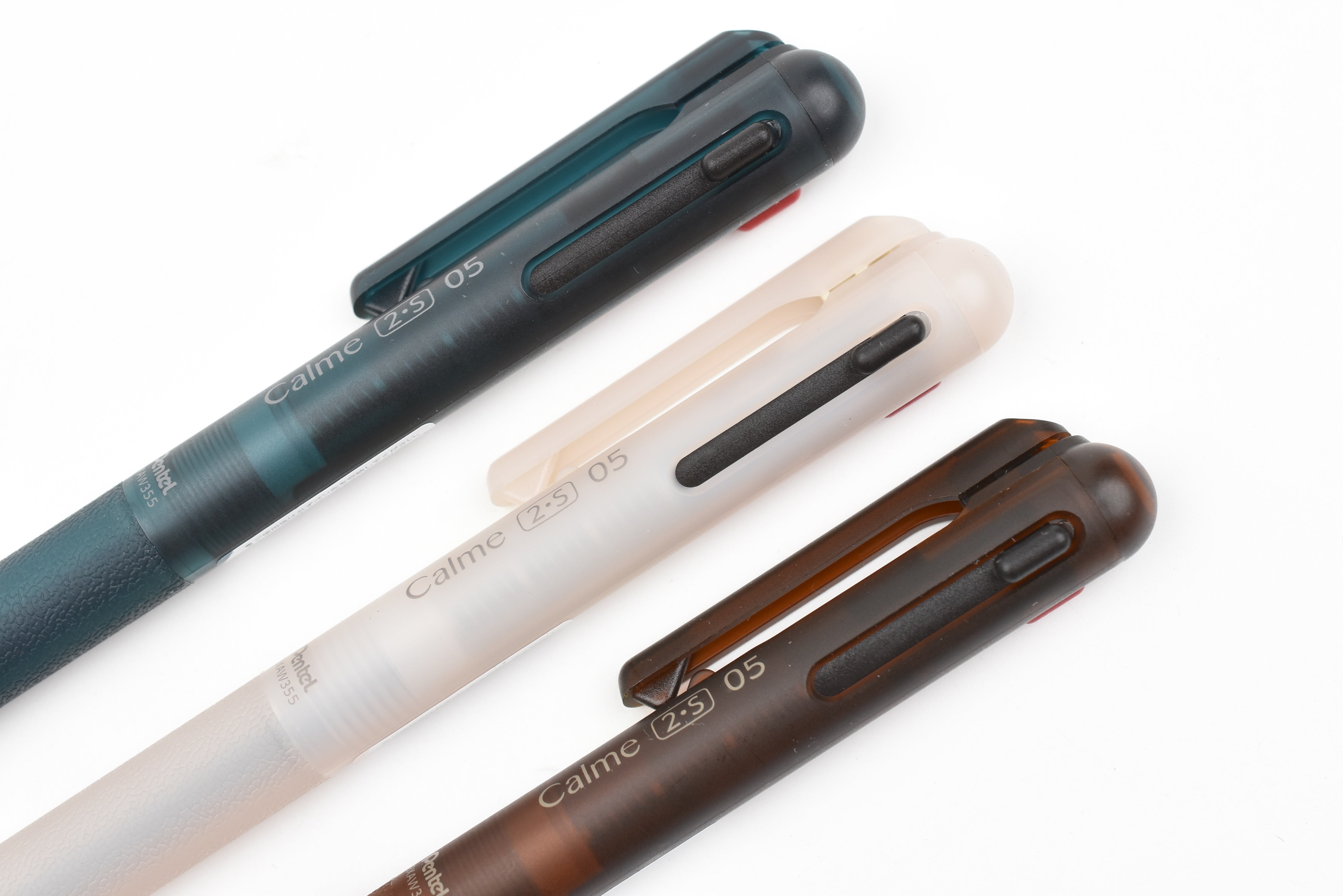 Pentel Calme Multi Pen was designed to be a clickable multipen with one of the quietest and unobtrusive knock mechanisms. When compared to most other clickable pens, the Calme pen is 66% quieter. The design of these multipens are meant to be calming as well. Available in matte neutral colors for the most part, pens in the Calme collection come with a rubber grip section with a satisfyingly textured and almost leather-like surface and an equal diameter as the rest of the pen, allowing the grip section to seamlessly align with the rest of the pen.