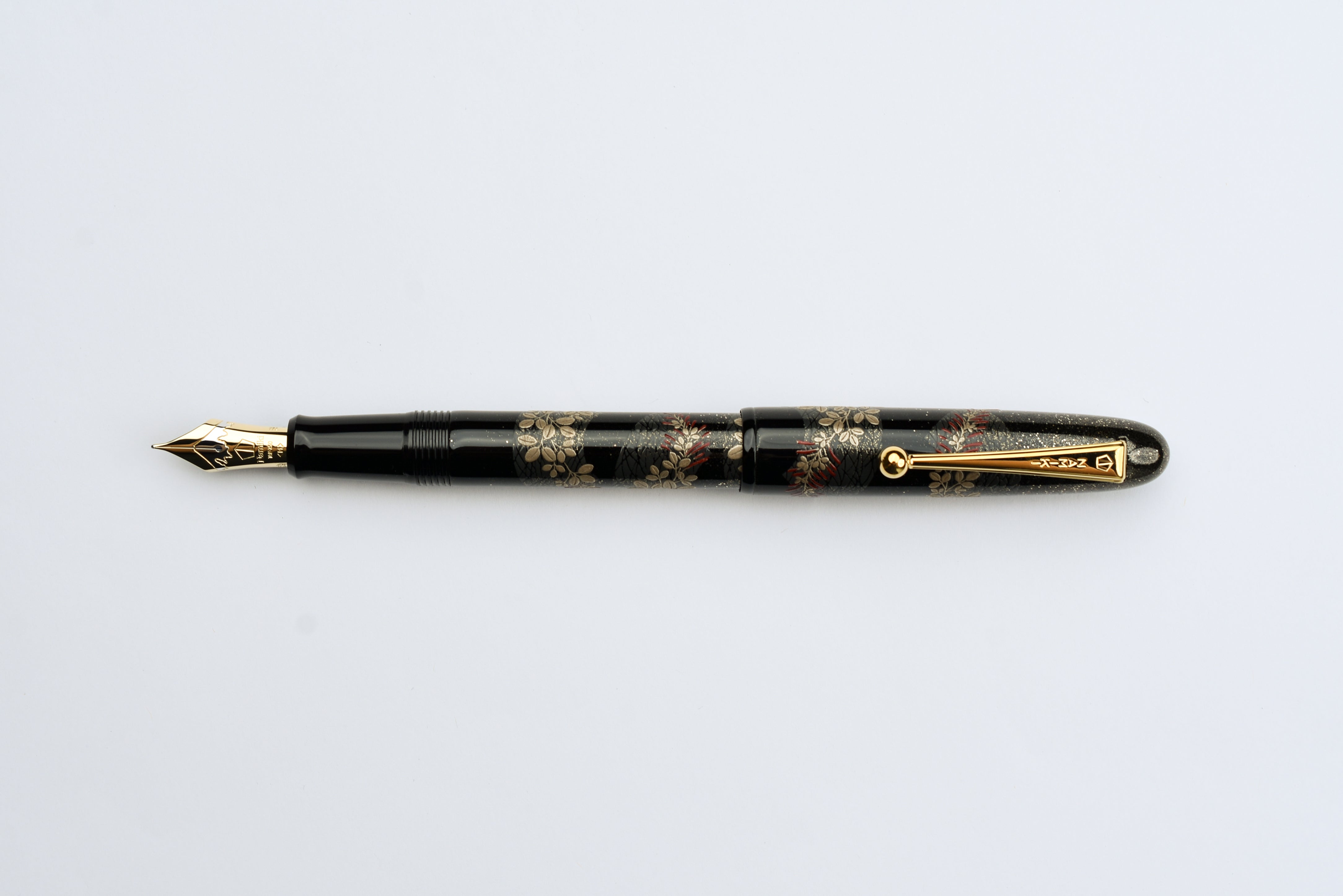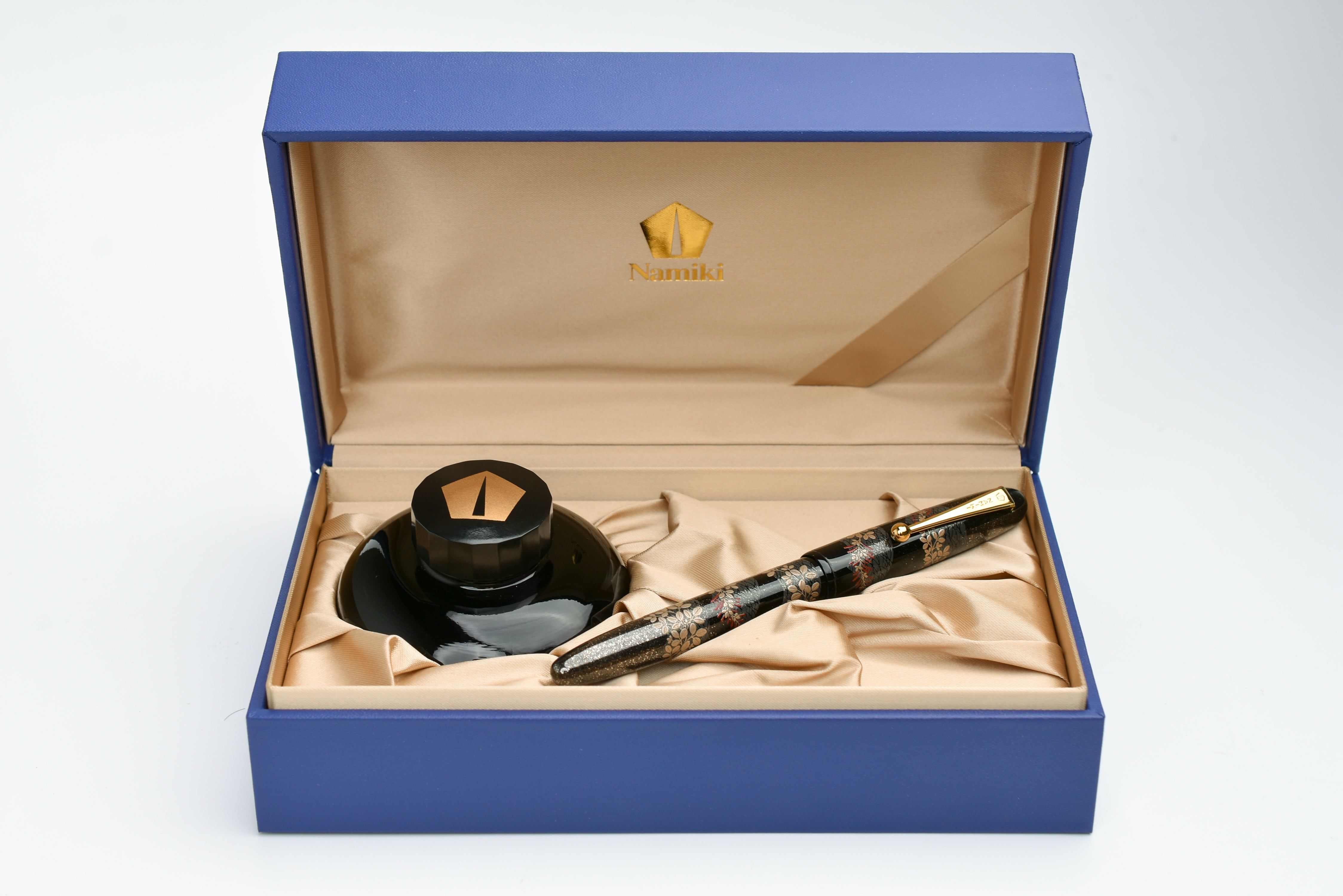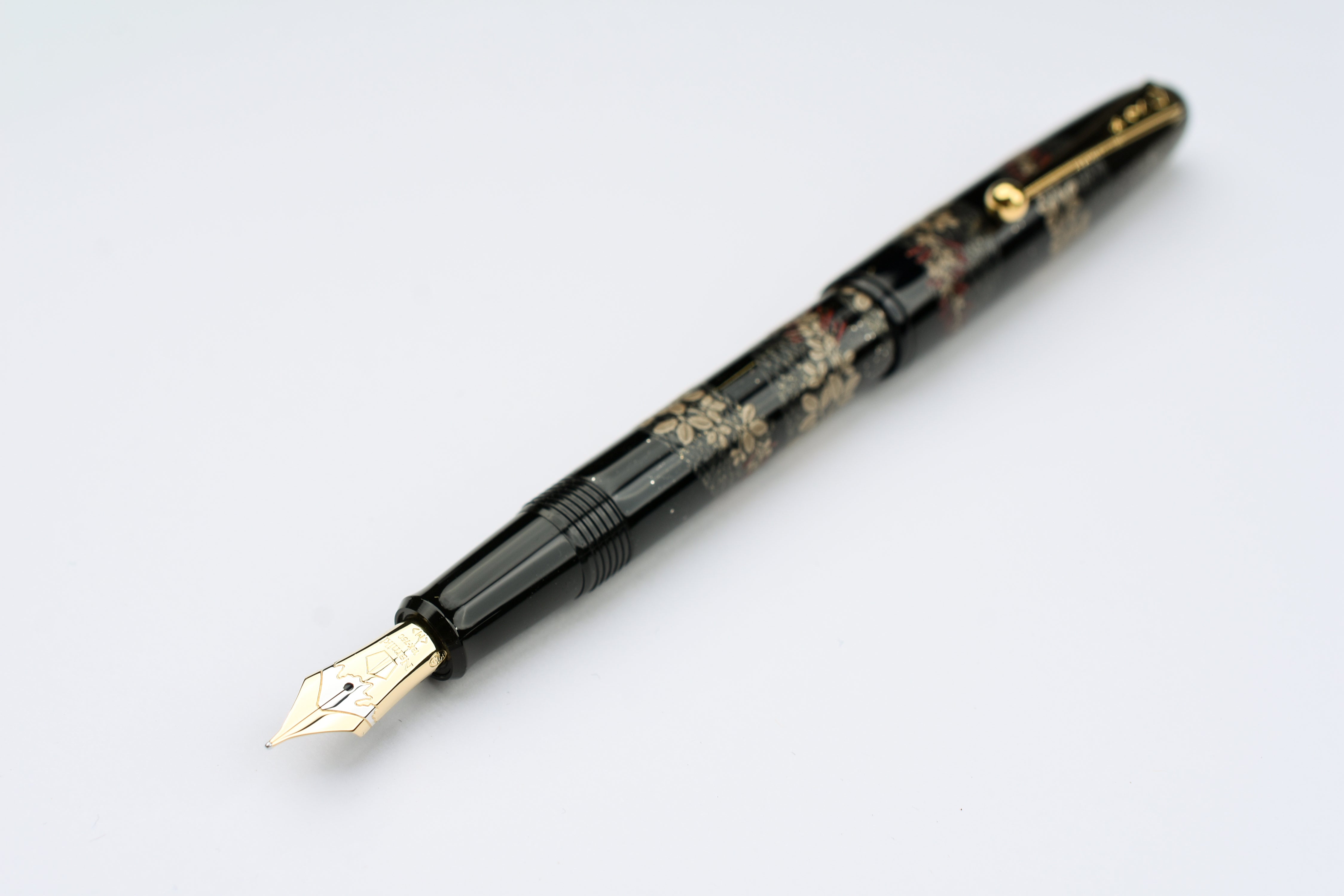The Limited Edition Namiki fountain pens are made in limited quantity every year. Bush Clover will only have 300 pieces available worldwide. Each pen is carefully crafted and engraved with the traditional Namiki number and artisan signature. Designed and produced by the celebrated artisan group Kokkokai (國光會), the barrel uses traditional maki-e urushi lacquer work and is finished with gold dust using the togidashi polishing technique. Bush Clover comes with a #10 18 karat gold nib with rhodium accents that features the customary Mount Fuji illustration.