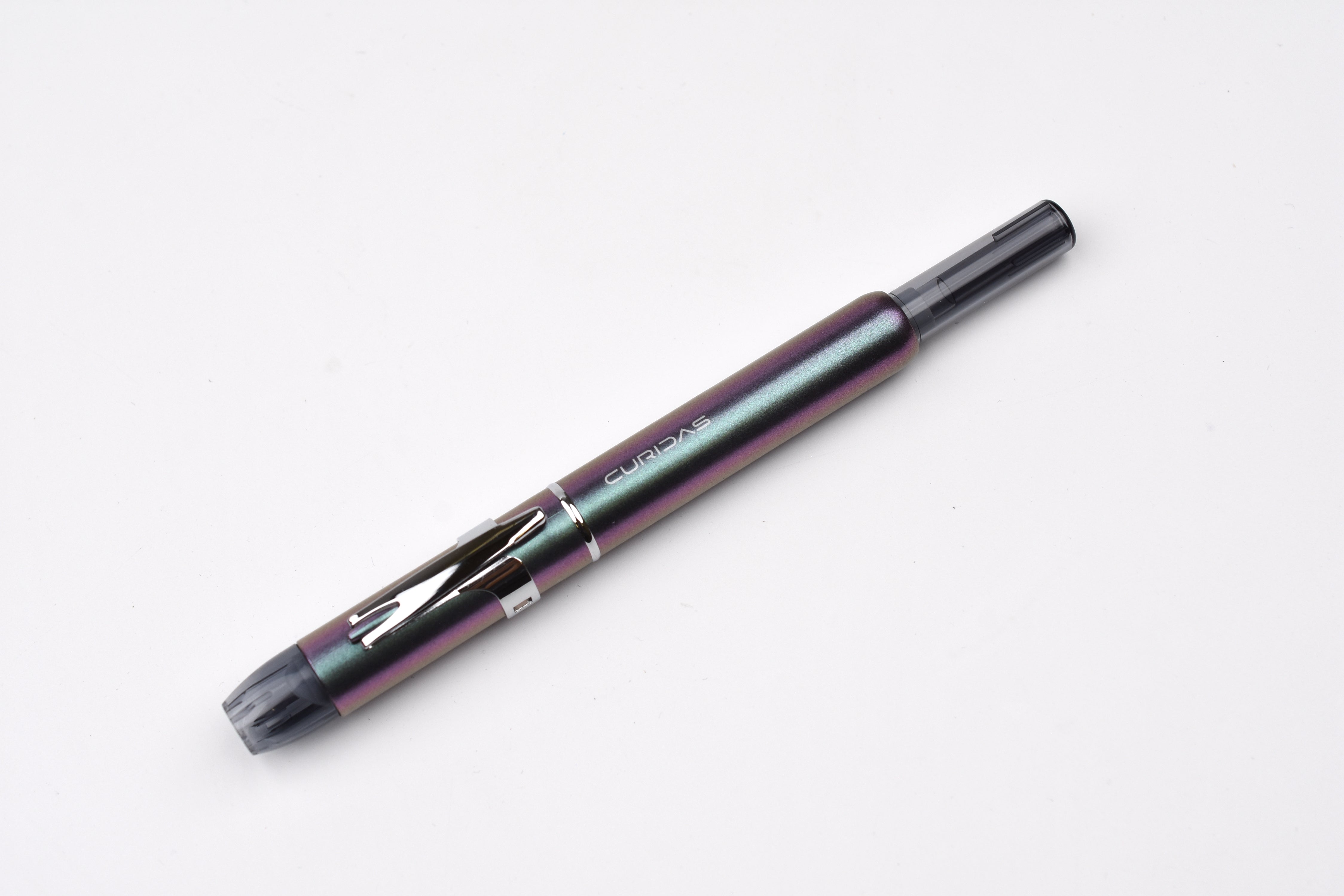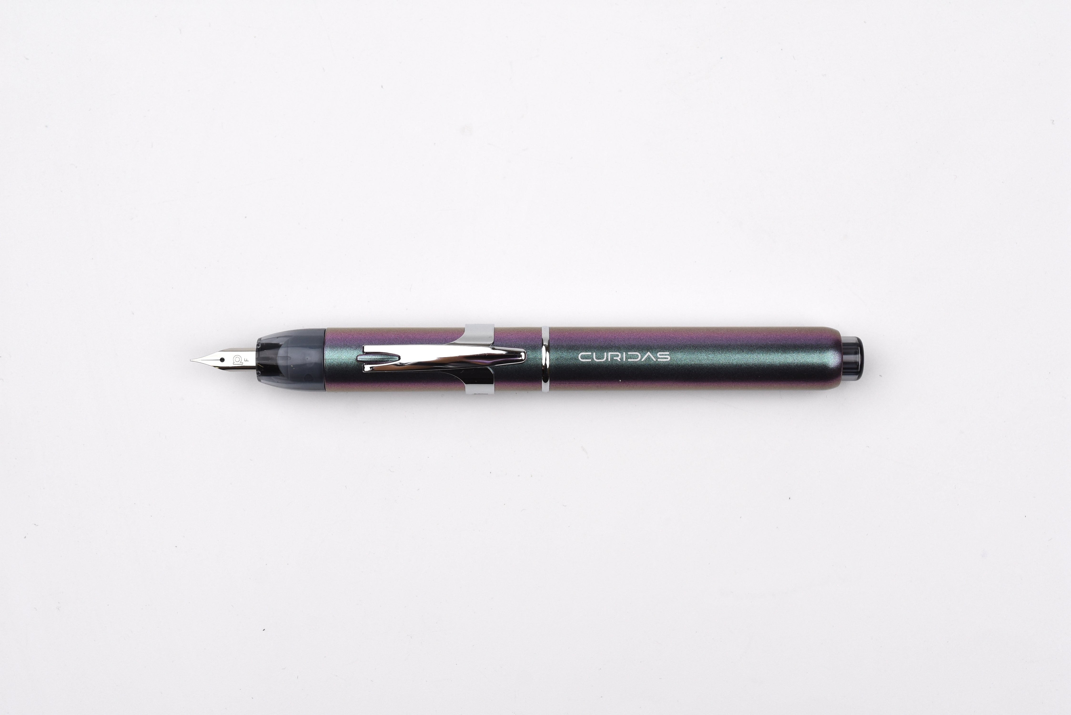 Designed for comfort and practicality, CURIDAS features a long nib for better visibility, a compact clip for upright storage while allowing a flexible grip, and an airtight sealing system that prevents ink evaporation while keeping the nib ready to write. It is also compatible with converters, allowing for bottled ink usage, while allowing a smooth one-handed writing operation unlike capped pen alternatives.