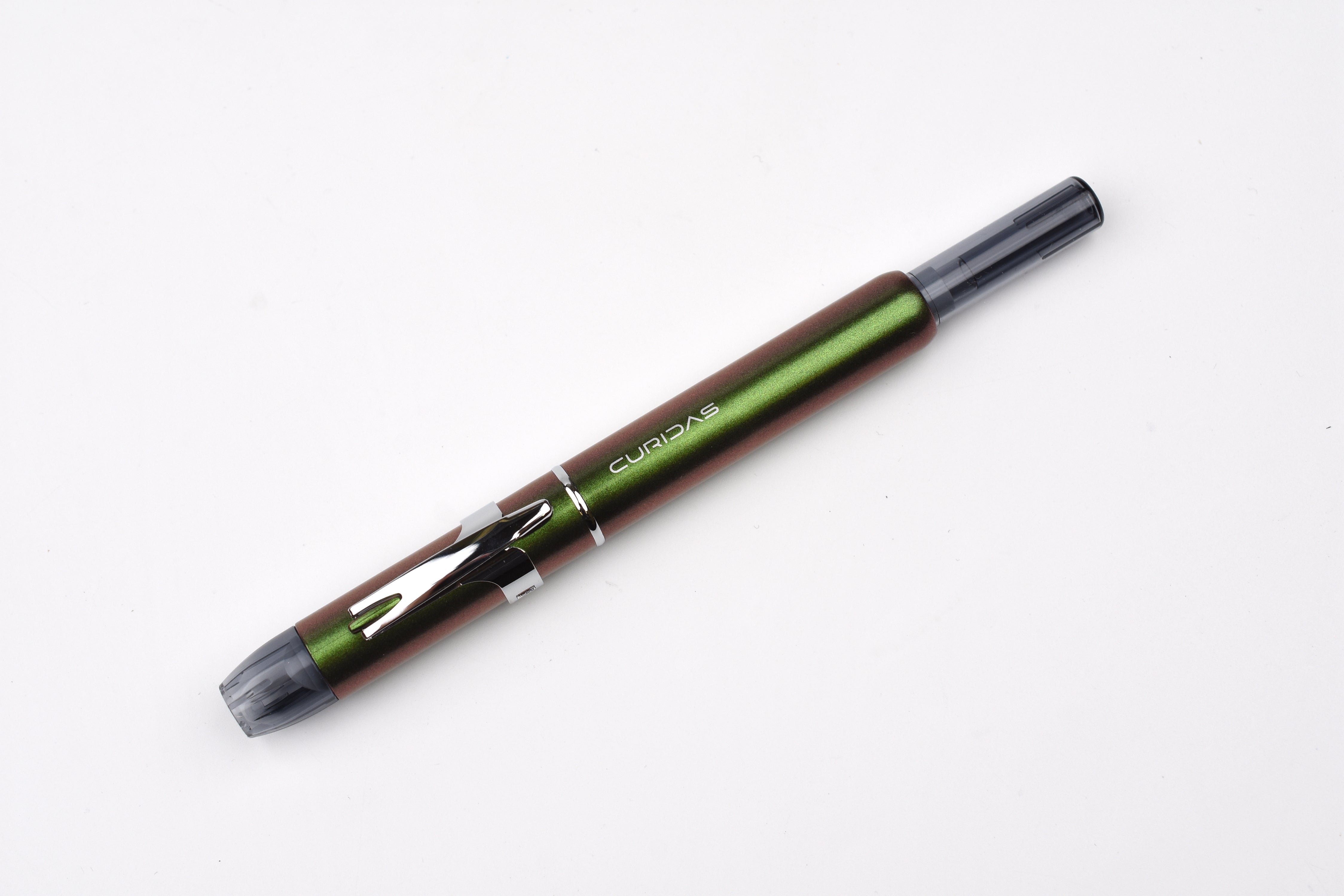 Designed for comfort and practicality, CURIDAS features a long nib for better visibility, a compact clip for upright storage while allowing a flexible grip, and an airtight sealing system that prevents ink evaporation while keeping the nib ready to write. It is also compatible with converters, allowing for bottled ink usage, while allowing a smooth one-handed writing operation unlike capped pen alternatives.