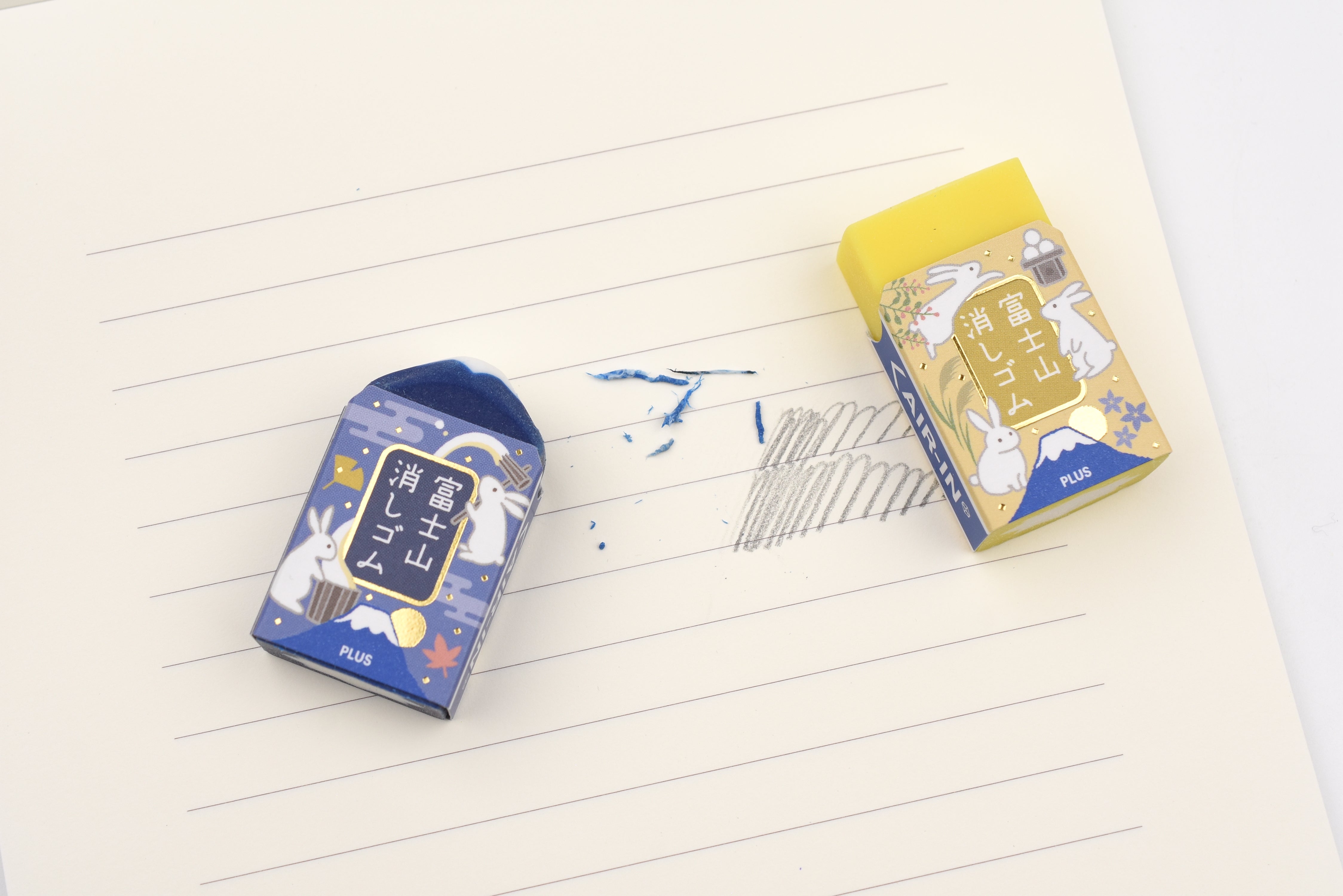 PLUS Air-in Mt. Fuji Eraser - Fuji Tsukimi - Limited Edition is inspired by Japan’s autumn moon-viewing tradition and the serene beauty of the harvest season. As you erase, Mt. Fuji’s snow-capped peak gradually appears, turning a simple task into a delightful experience. This set includes two seasonal designs, “Night Fuji,” a deep ultramarine for the autumn night sky, and “Moon Fuji,” a golden yellow for the glowing harvest moon.