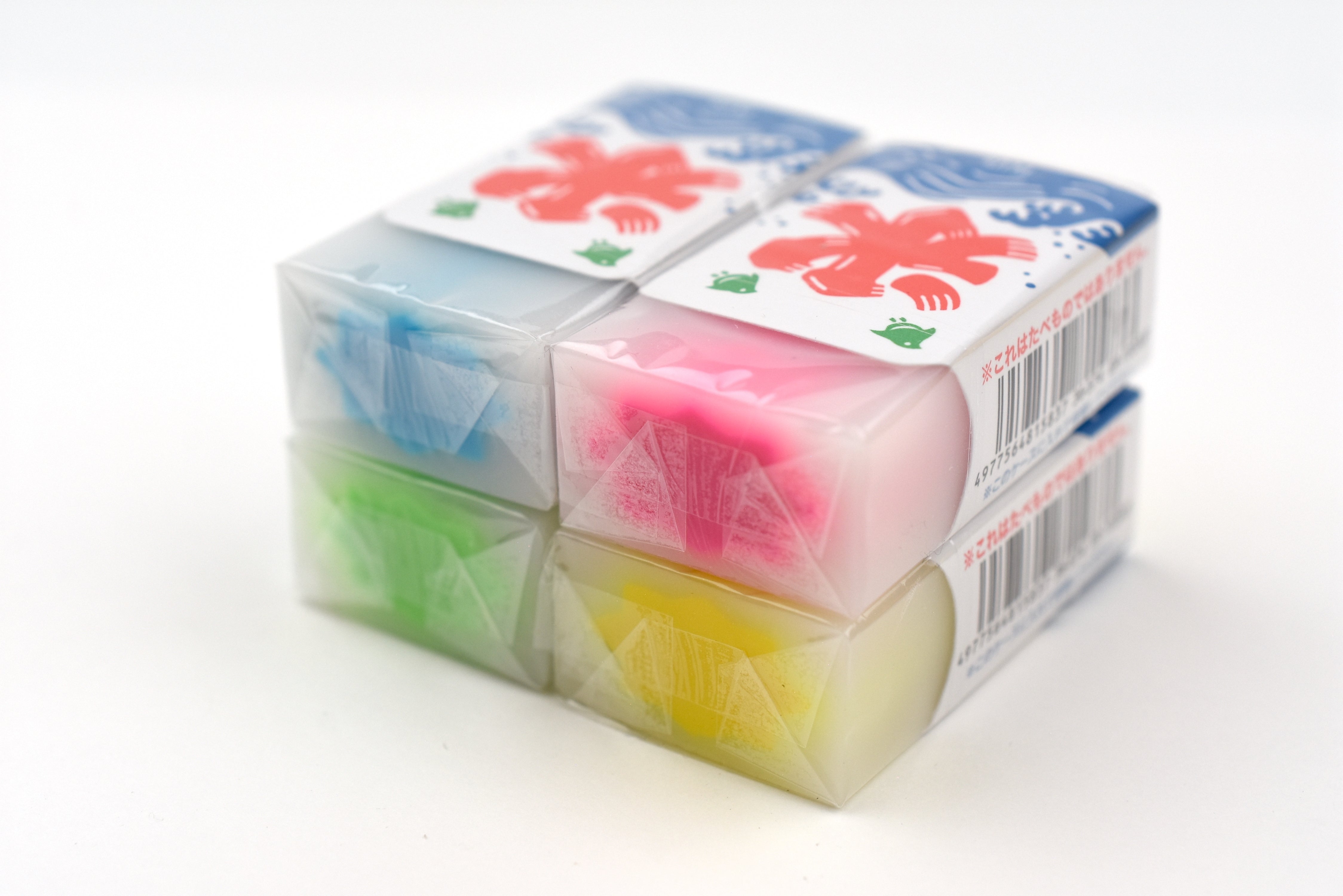 Inspired by Japan's "Summer Festivals," it captures the refreshing essence of shaved ice enjoyed during these celebrations. As you erase, the eraser transforms, gradually revealing the cool, colorful layers of shaved ice topped with neon syrups in four fun flavors – Strawberry, Blue Hawaii, Lemon, and Melon. With each stroke, it reveals Mt. Fuji’s peak atop a mound of icy goodness, adding a playful, interactive touch. The retro festival-style case enhances the summer vibe, elevating the design’s appeal.