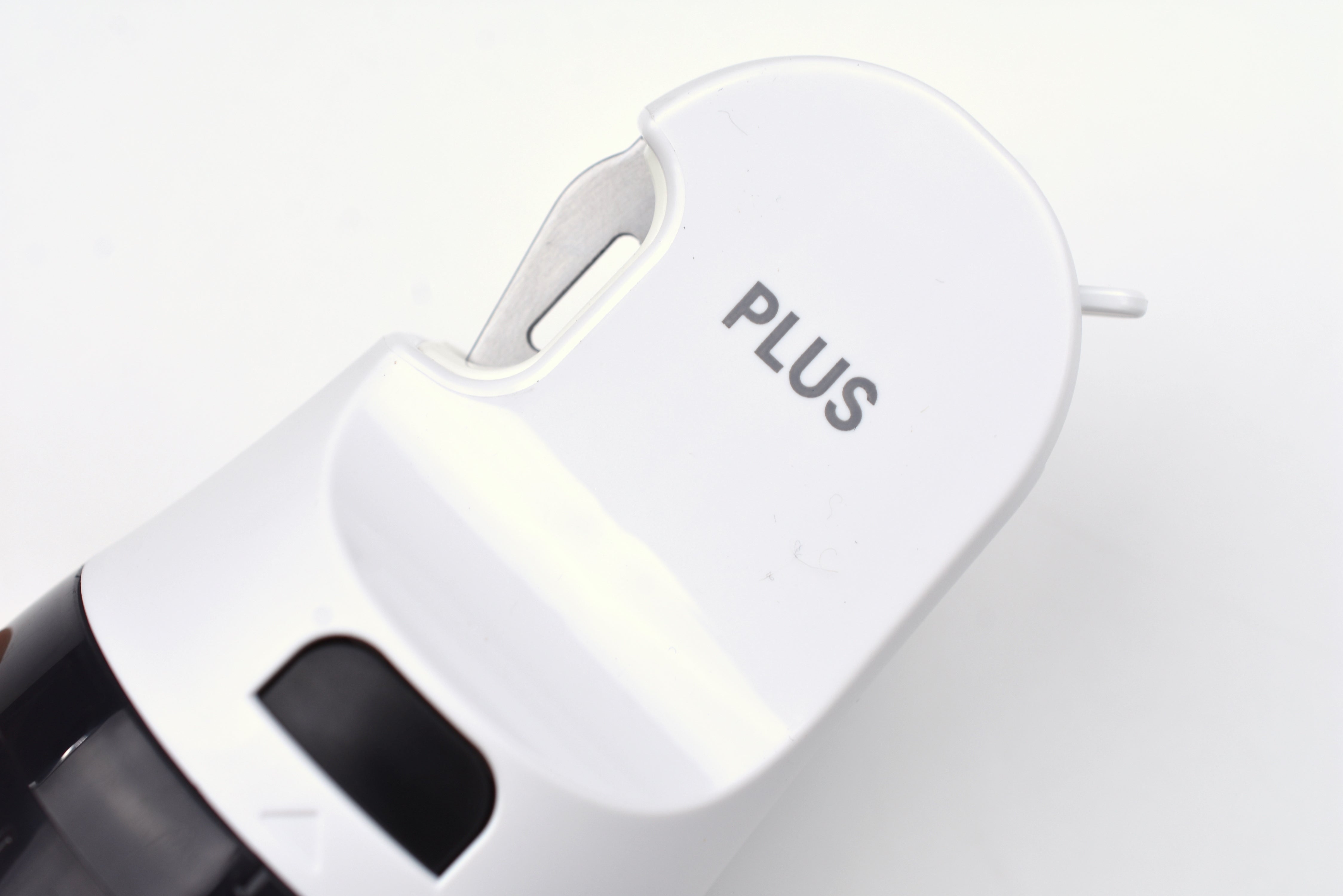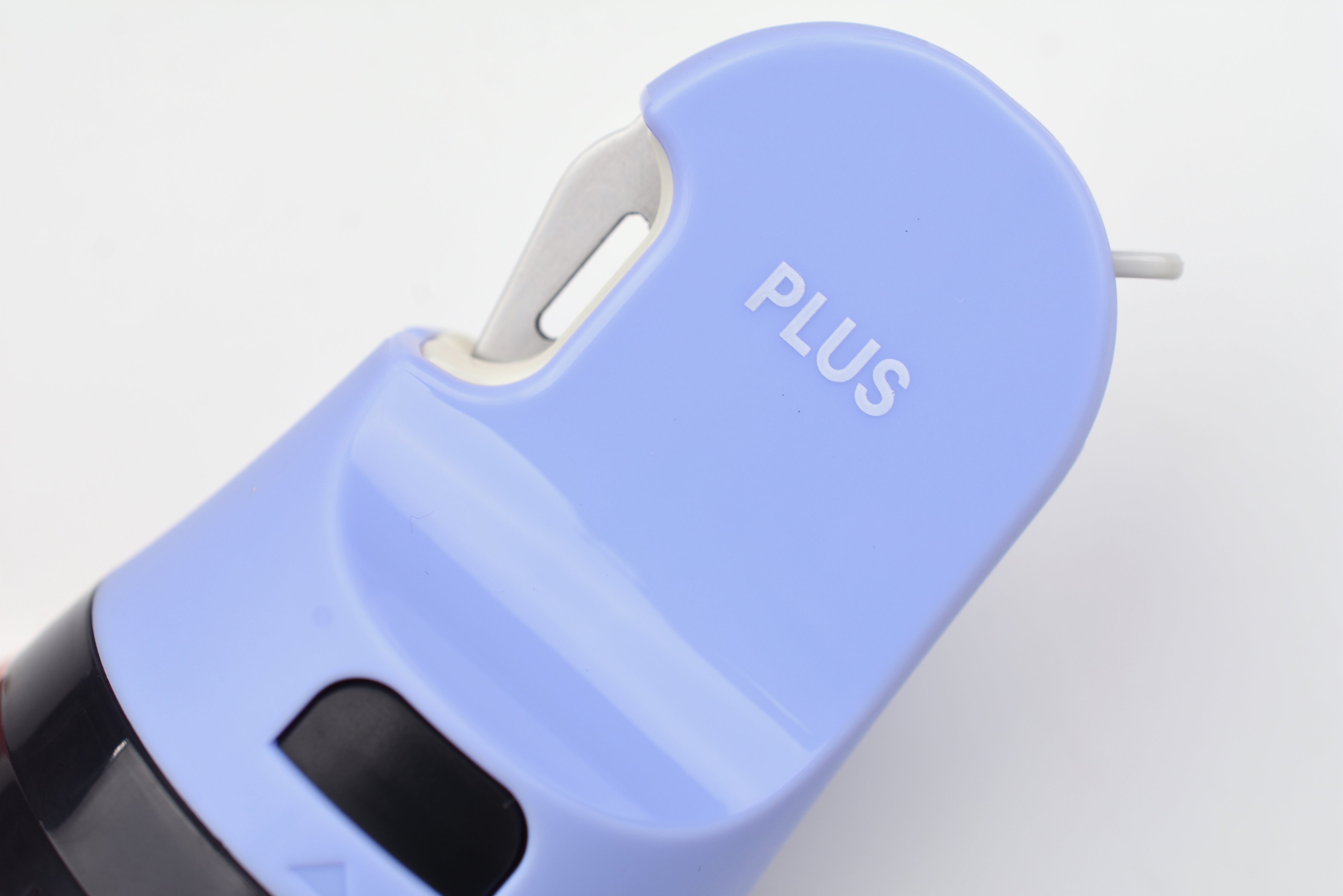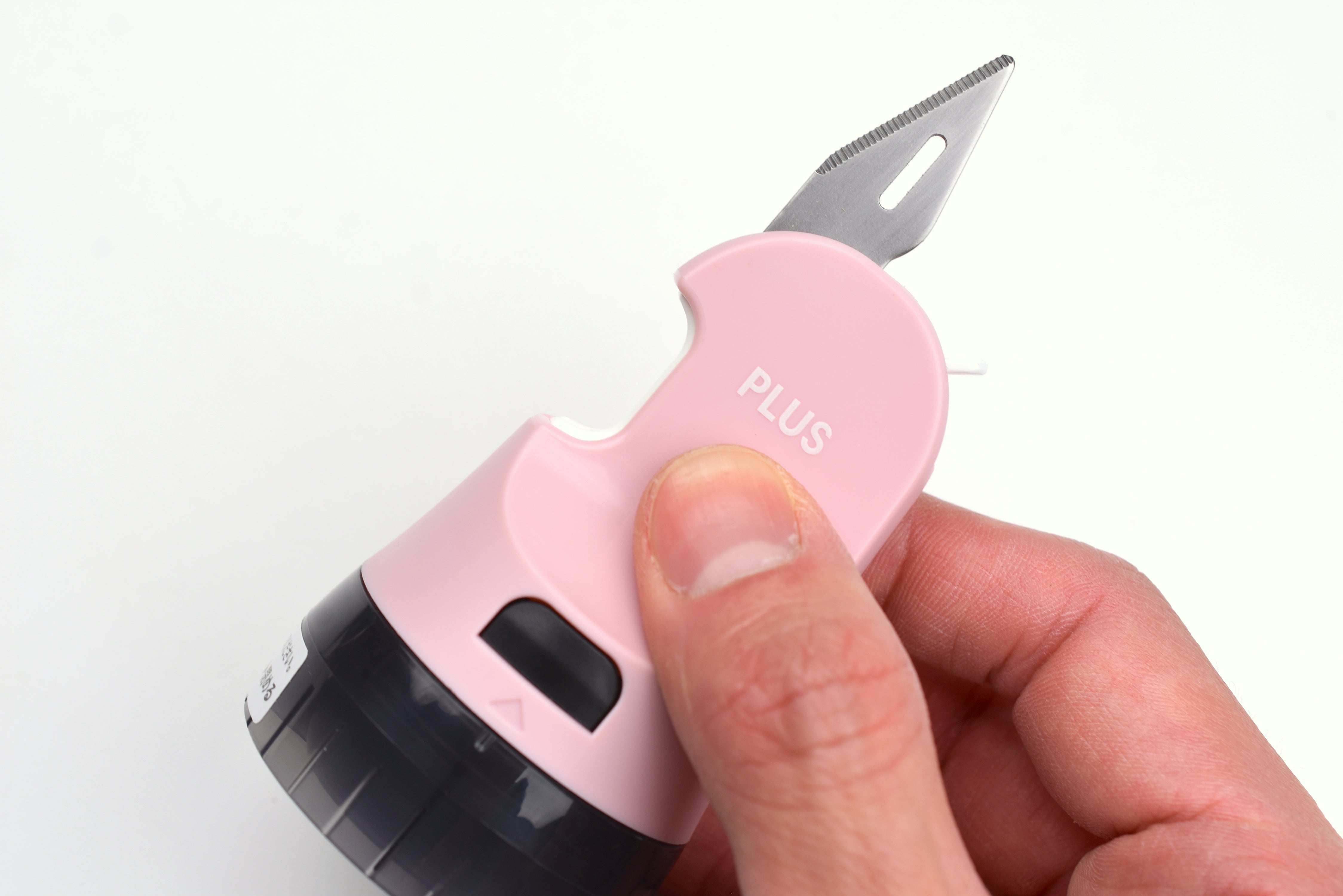 The Roller Keshipon is a handy package opener combined with an identity protection roller stamp. Created by PLUS, this device contains a retractable blade that can be twisted out to open up sealed packages. The white lock lever on the side will secure the blade when you are cutting open boxes, preventing it from retracting back. After usage, you can easily press down the lock lever before pulling back the blade.