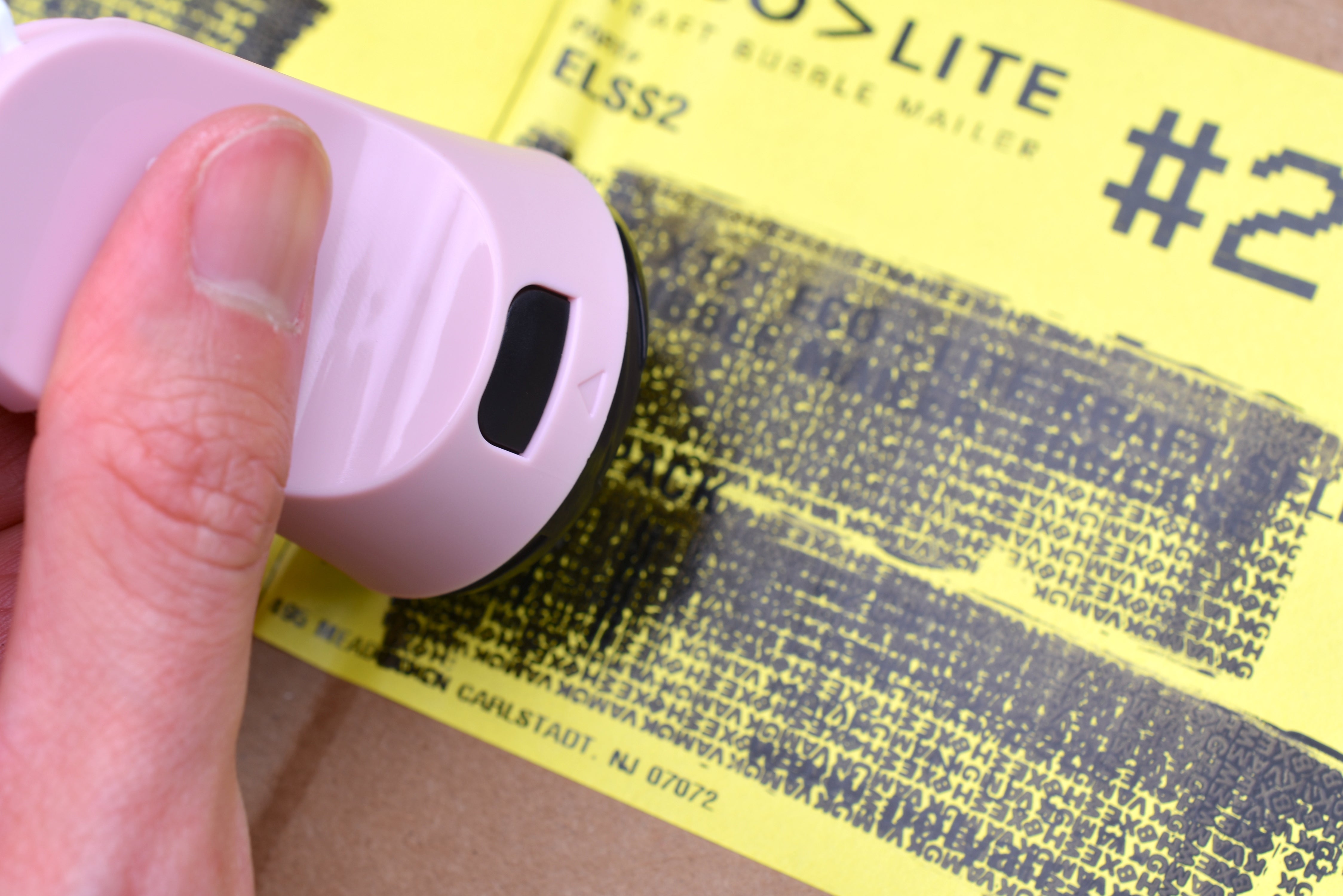 The bottom part of this gadget contains a wide roller stamp to conceal your personal information on the package. Before using, twist open the bottom black cap of this device and then roll the stamp over your personal information, such as address, name, etc. The special-formulated stamp ink will work on all sorts of paper surfaces, including thermal receipt paper. This self-inking roller stamp can be used up to 30 meters long, which is equivalent to 500 times of stamping. Stamp Refills are also available. To swap out a used up stamp cartridge, press down the two black buttons on the side together and the stamp cartridge will eject immediately.