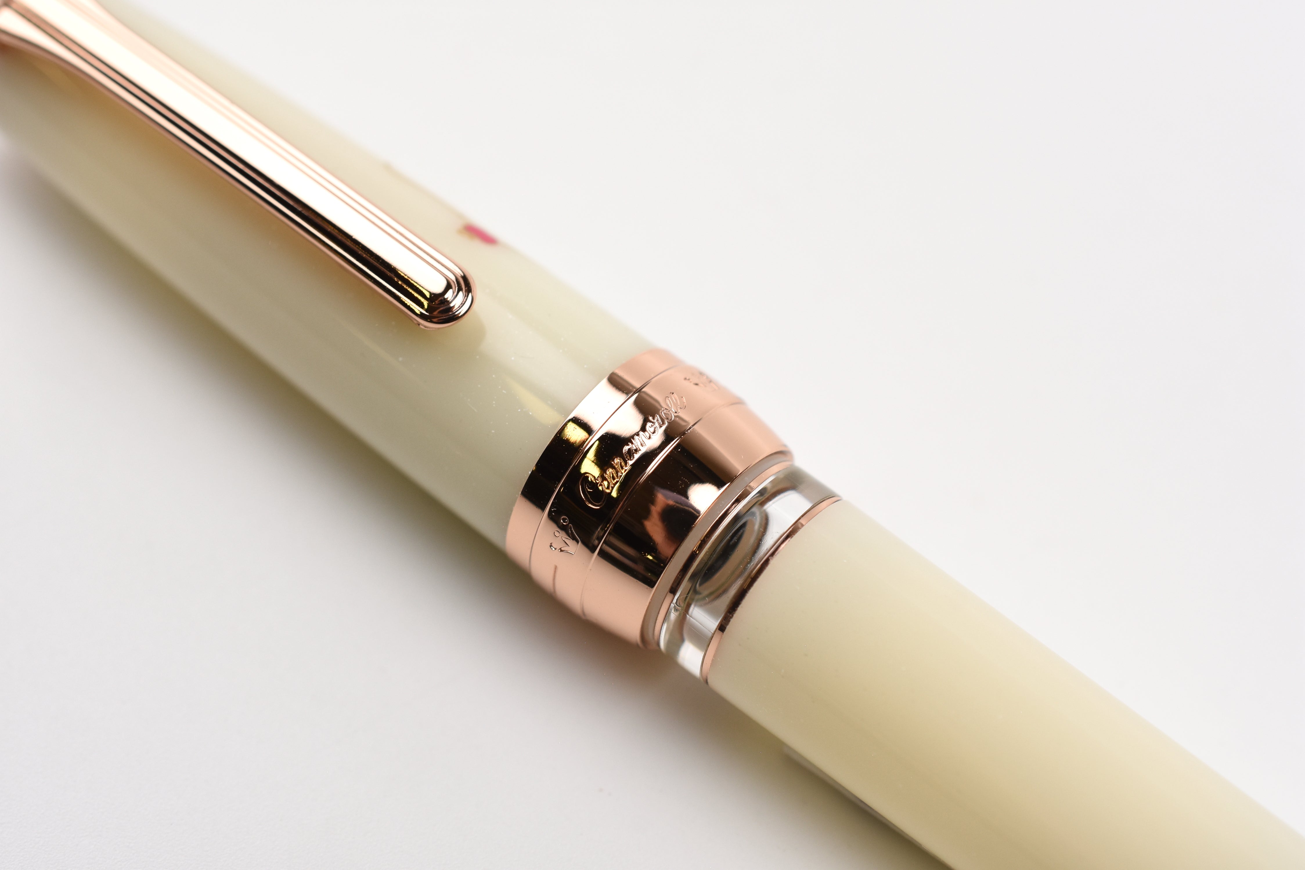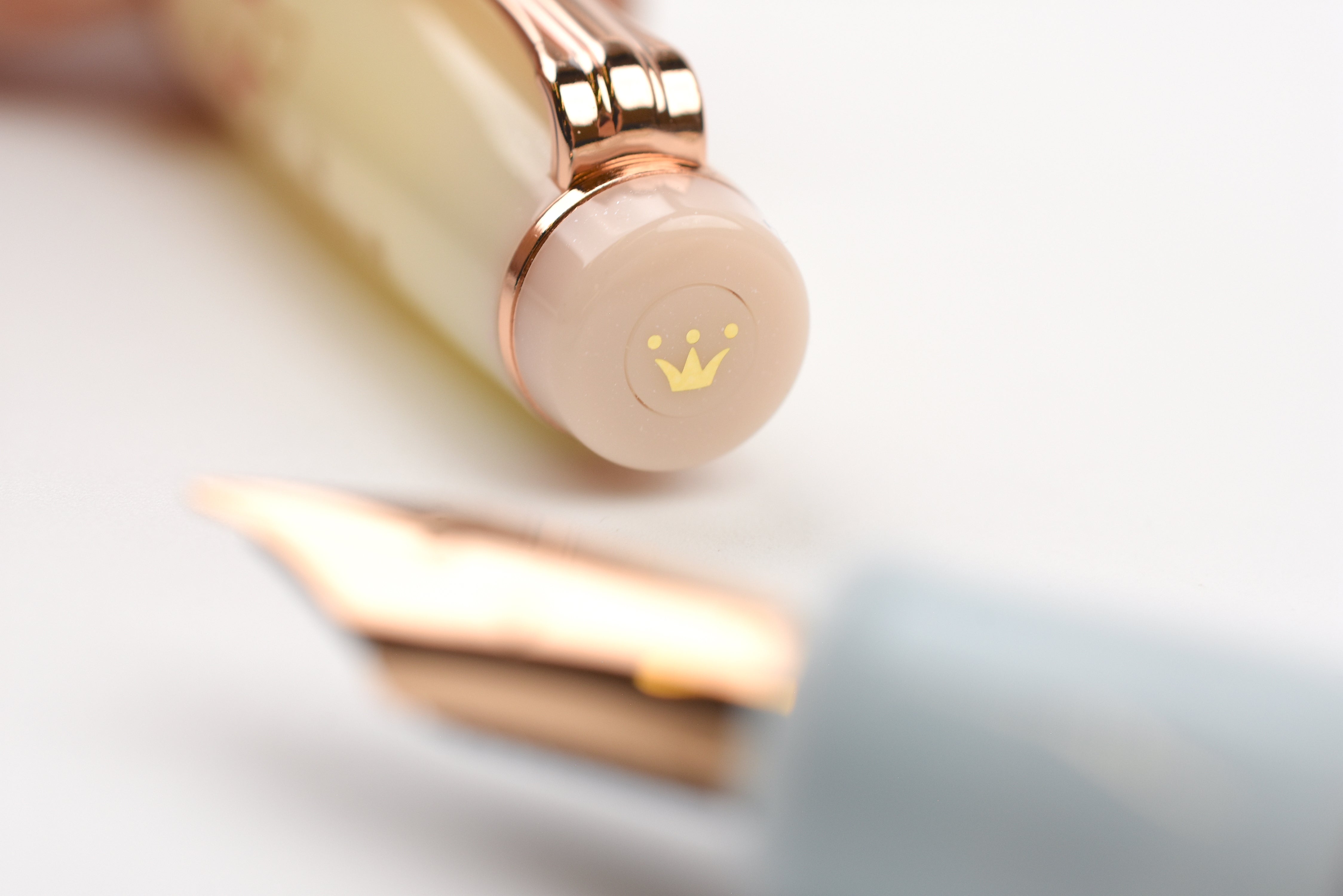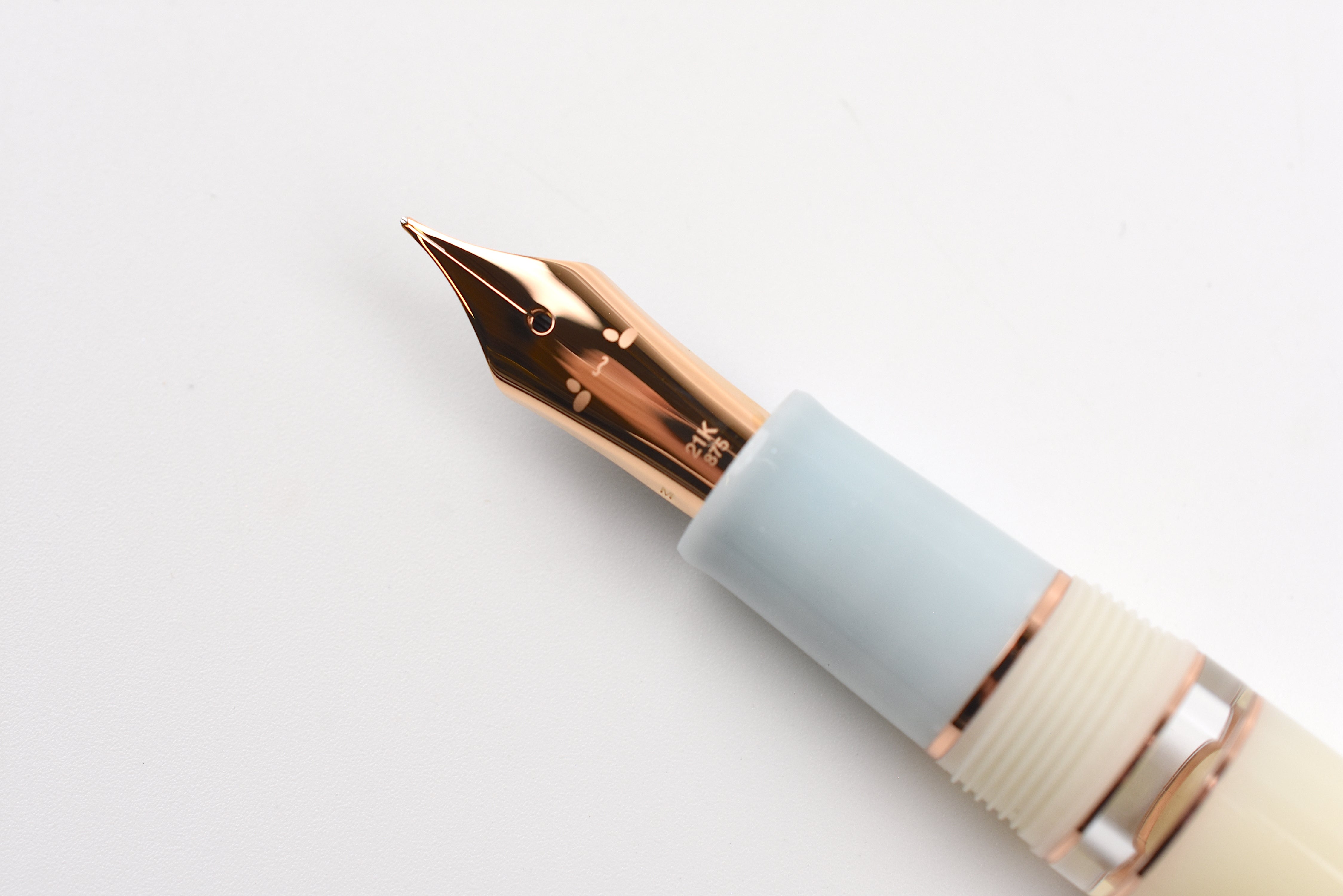 This special collaboration model with Sanrio's popular Cinnamoroll character captures the elegant and cute design of the world of Cinnamoroll. Rose gold accents on the clip and ring add a touch of luxury, and the cap and finial have a special design of the Cinnamoroll logo motif. The pen itself utilizes a piston filling mechanism, and features an ink window so you can see when it's time to refill your pen. Equipped with a 21k gold nib, the nib has Cinnamoroll's face specially engraved on the surface. Limited to 100 pieces worldwide, this pen is a cute one to have in any collection.