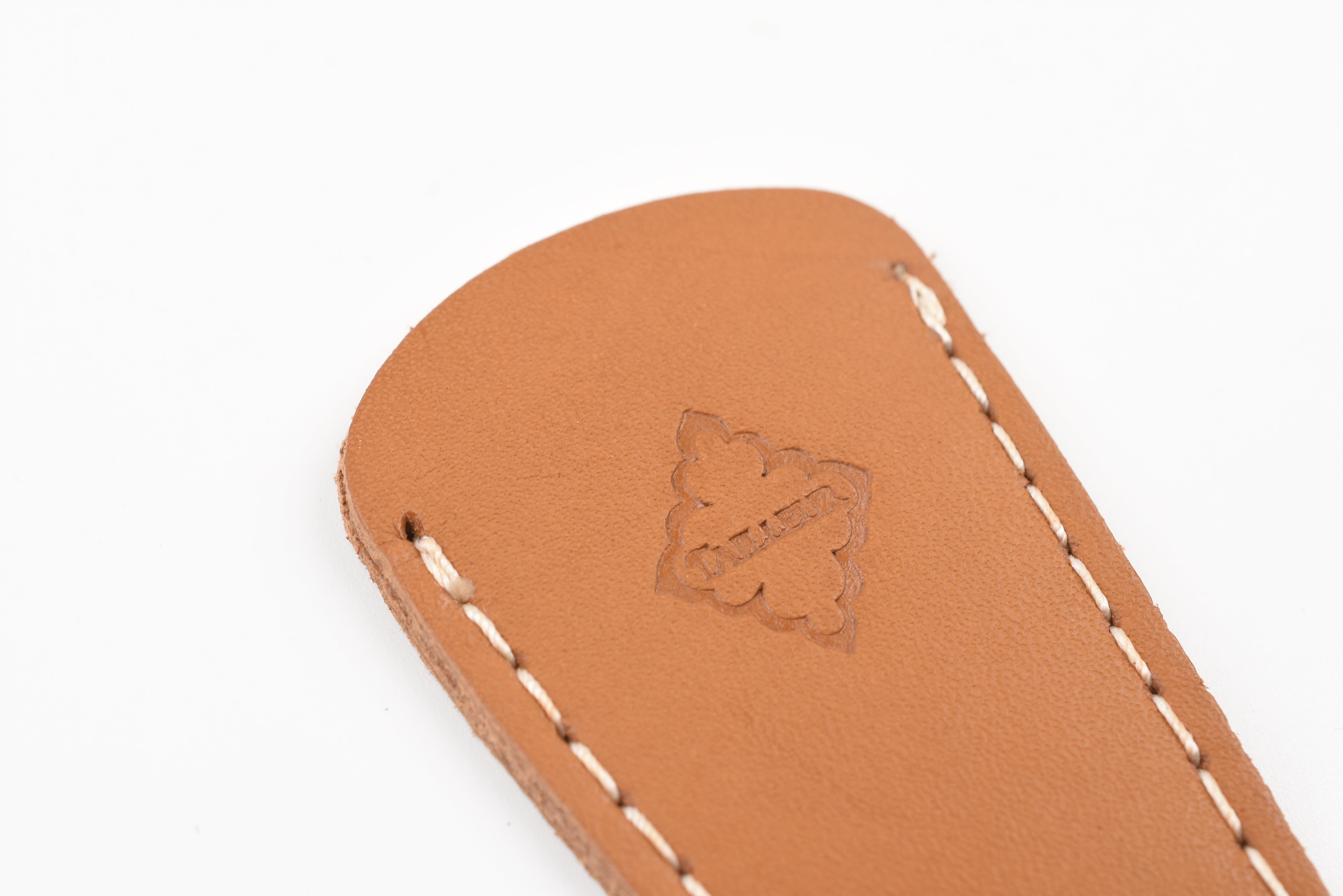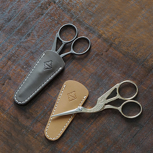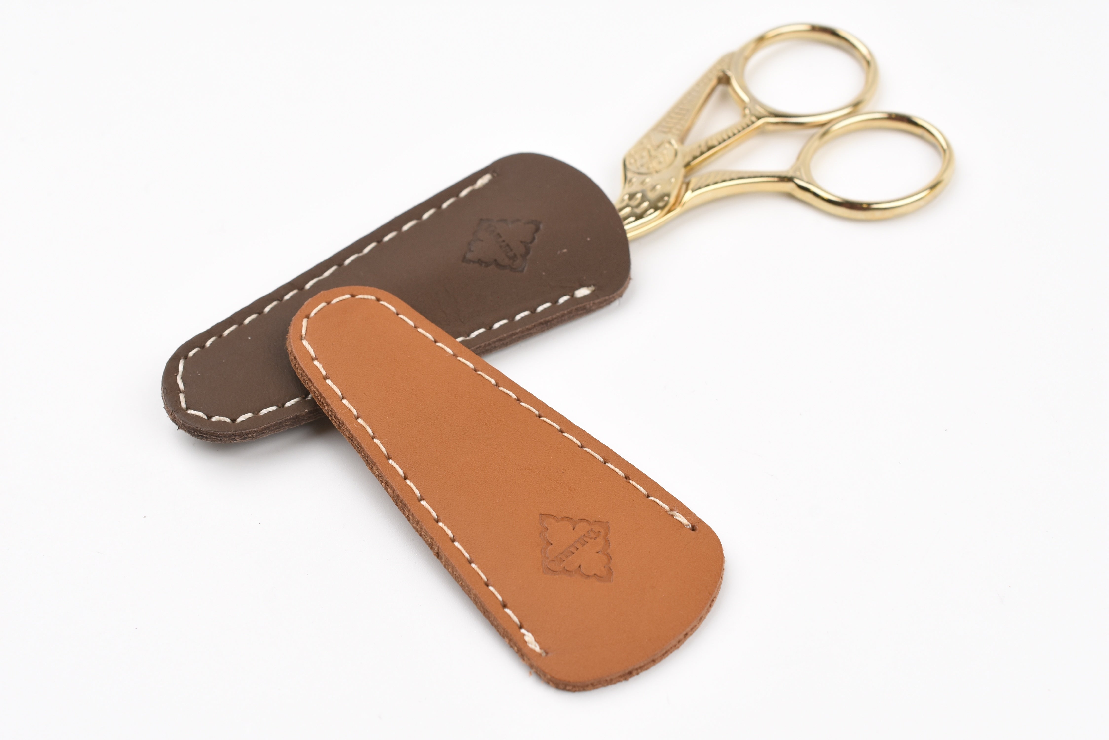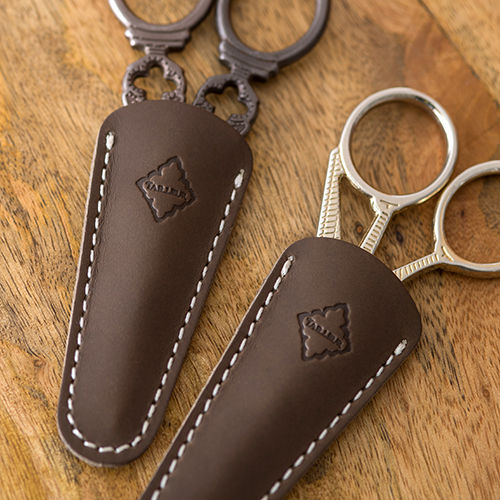 A scissor cap crafted from cow leather, designed to protect the blades in style. It pairs perfectly with Posh Living Antique-style Scissors for a cohesive and elegant look.