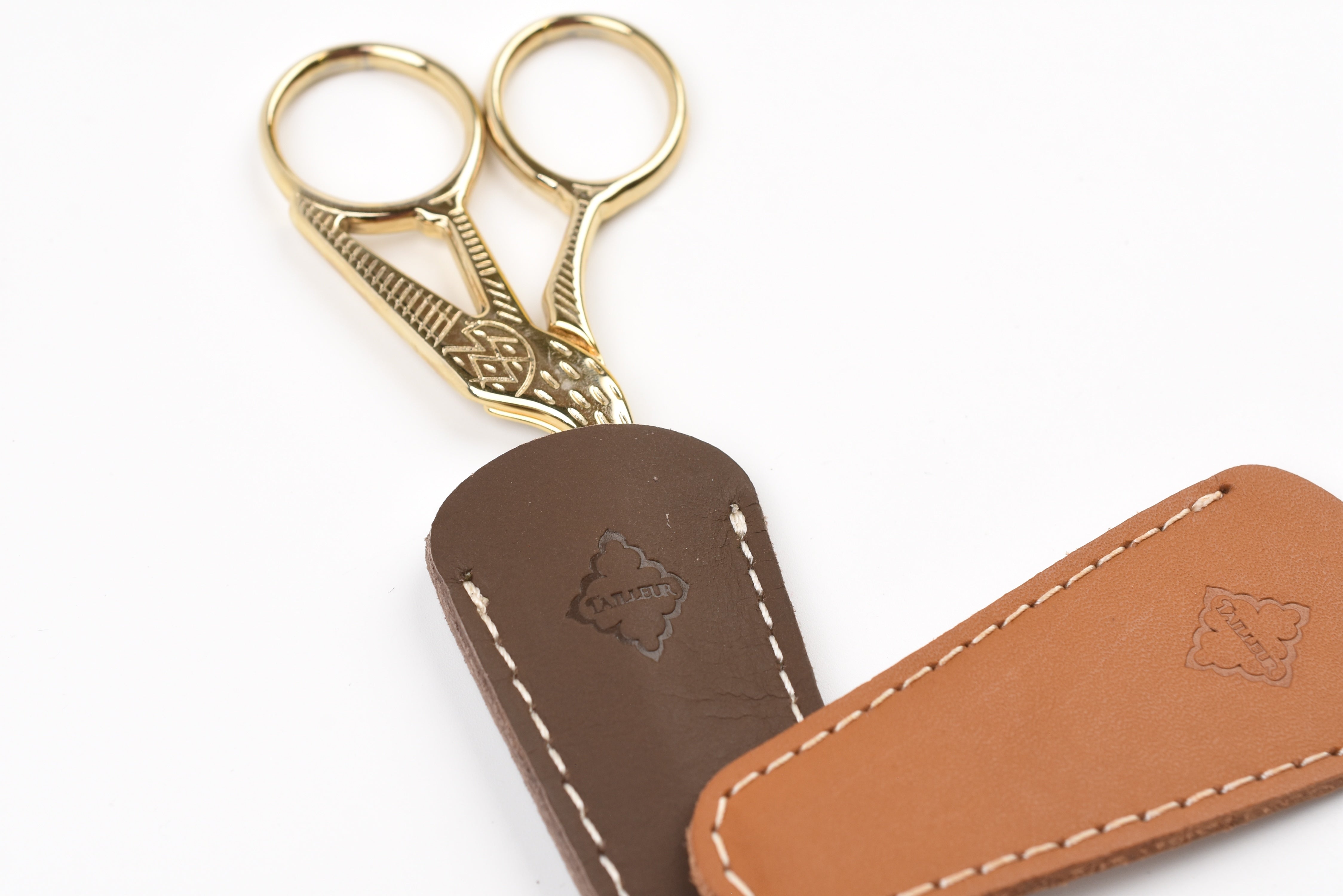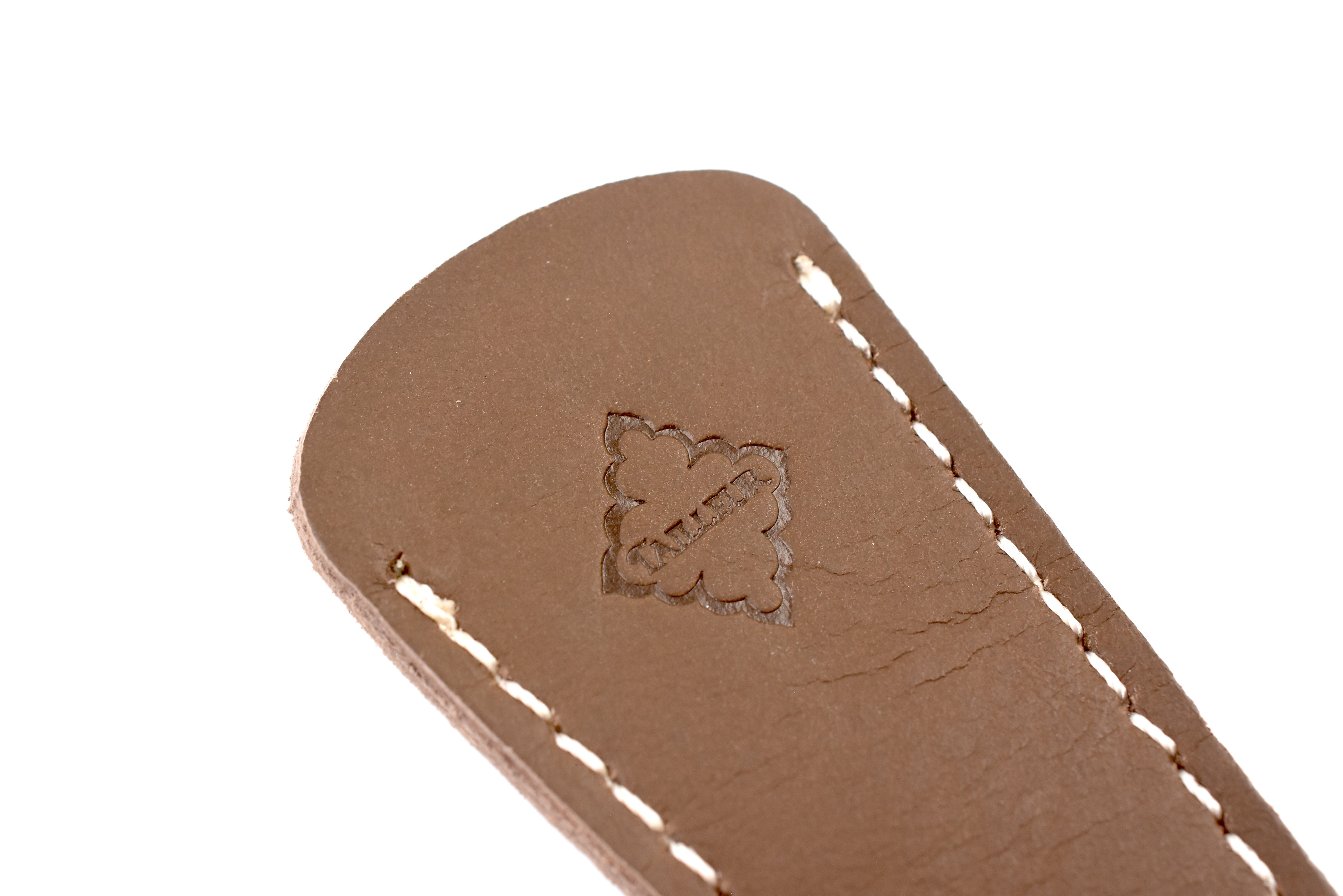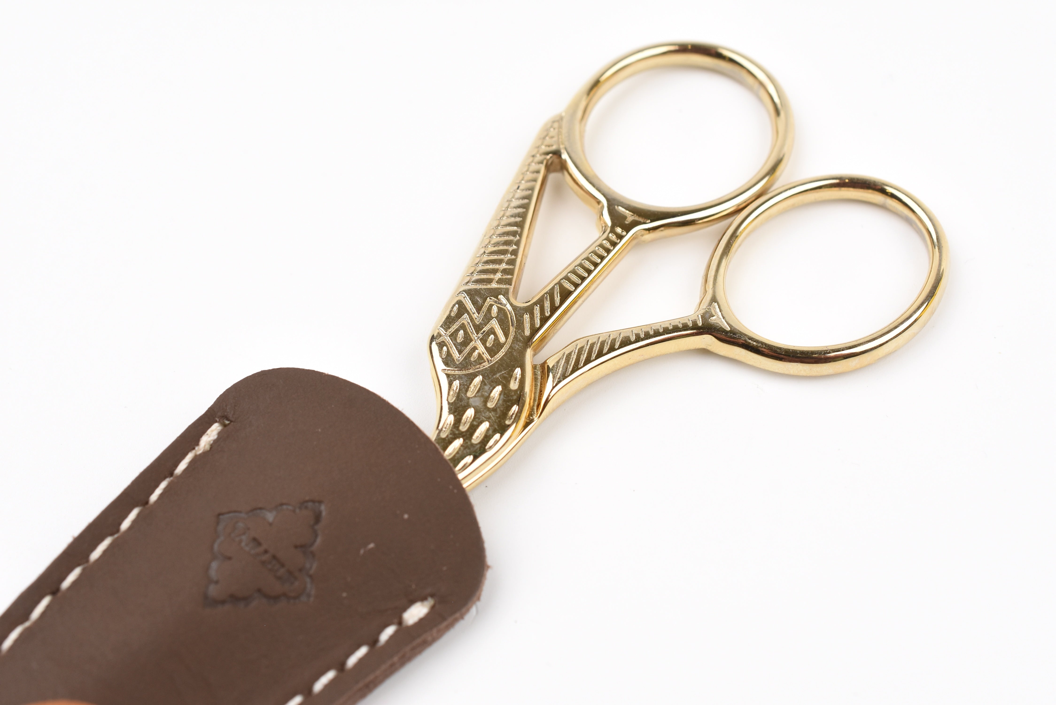 A scissor cap crafted from cow leather, designed to protect the blades in style. It pairs perfectly with Posh Living Antique-style Scissors for a cohesive and elegant look.