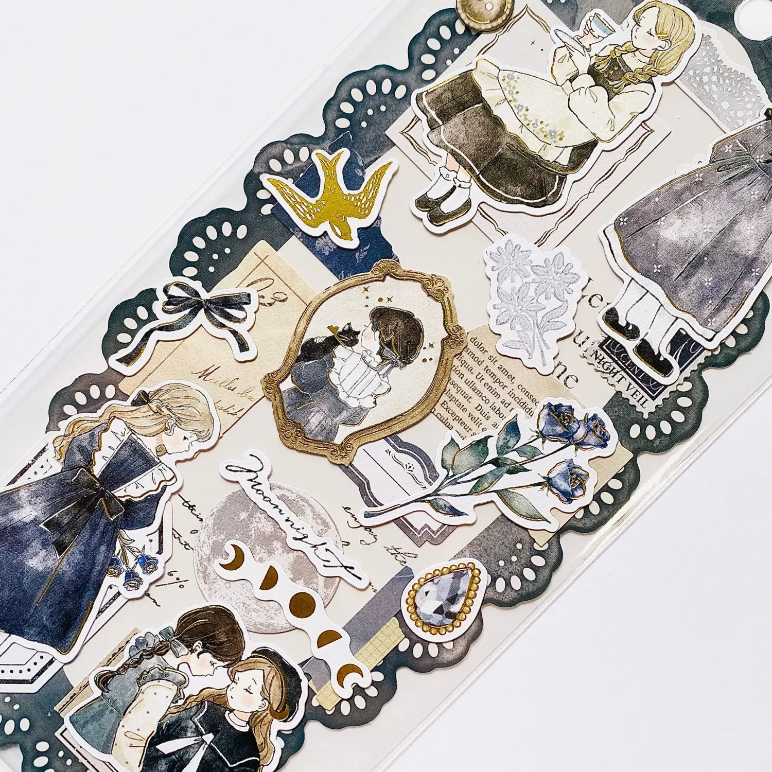 Add a touch of timeless charm to your projects with these adorable vintage-inspired floral stickers. Featuring delicate illustrations of girls in flowing dresses, charming bouquets, and intricate lace accents, these stickers are perfect for journaling, scrapbooking, cardmaking, and more.