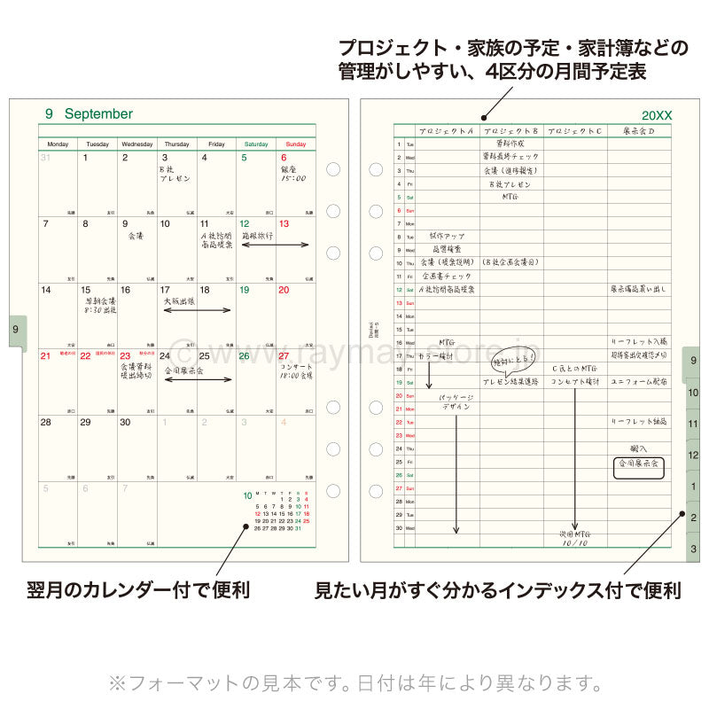 Raymay - 2026 Da Vinci Monthly Planner Refill - A5 Size - 5 (4 Plans with Index)