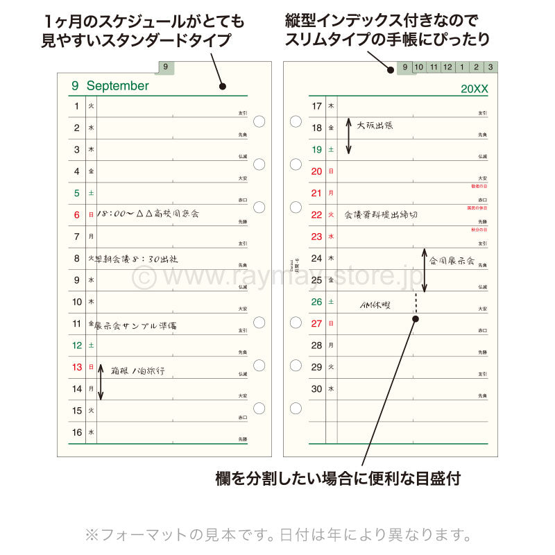 Raymay - 2026 Da Vinci Monthly Planner Refill - Bible Size - 6 (List Style)