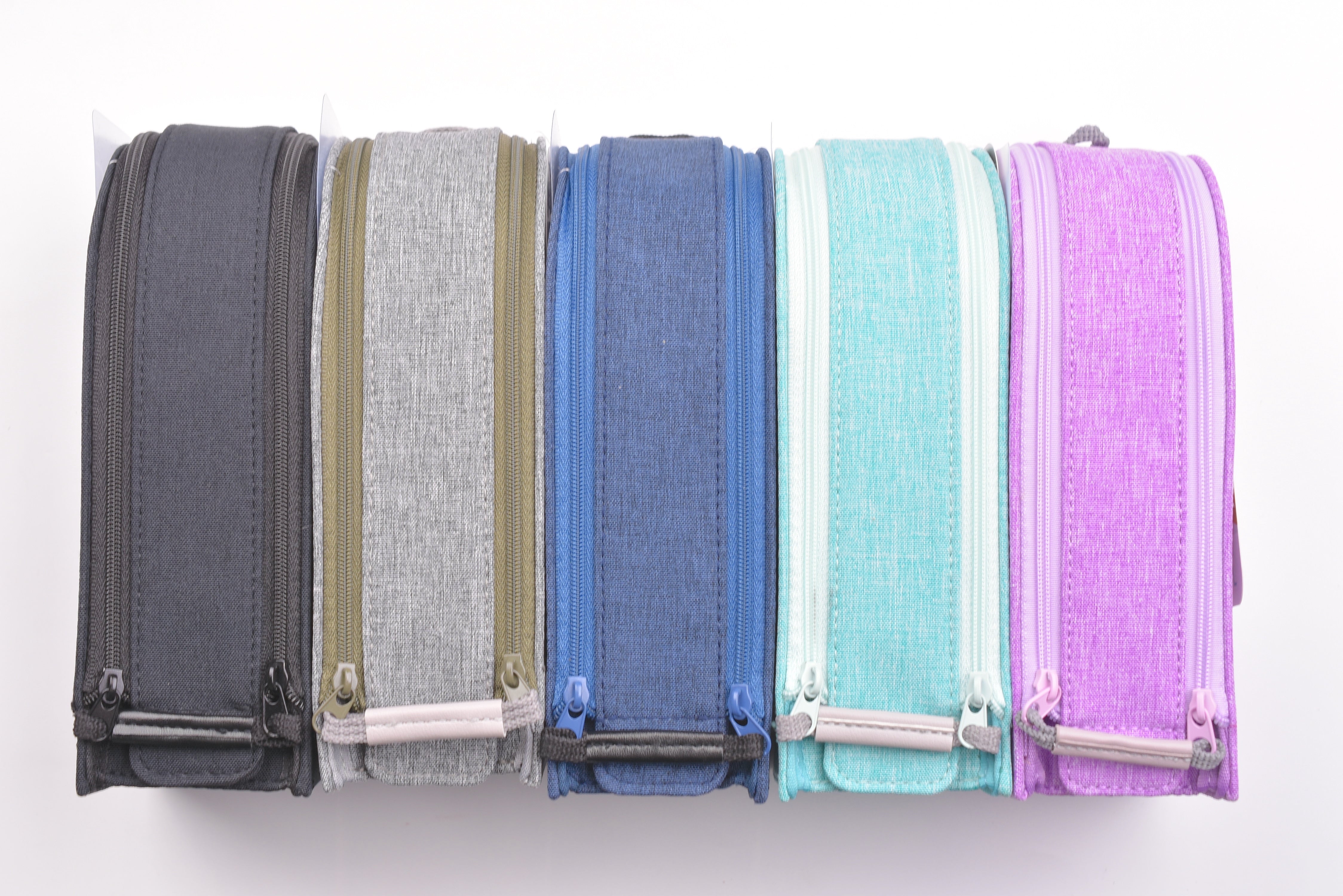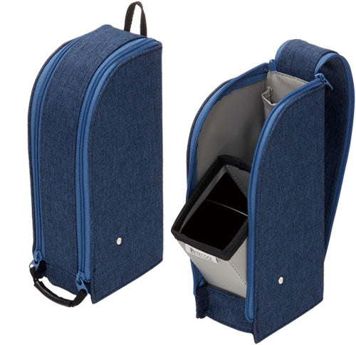 The Detecool Pen Case from Raymay is a standing case made of a durable rigid fabric, perfect for both storing your pens and tools during travel as well as conveniently accessing them from your desk. The dual-zipper neatly opens up to a large compartment that contains two standing compartments that can be tilted outward for ease of use, as well as a small pocket to store your smaller stationery items such as an eraser or washi tape. The exterior zipper flap also has a magnetic closure built in for it to easily lock in place when closing the case.
