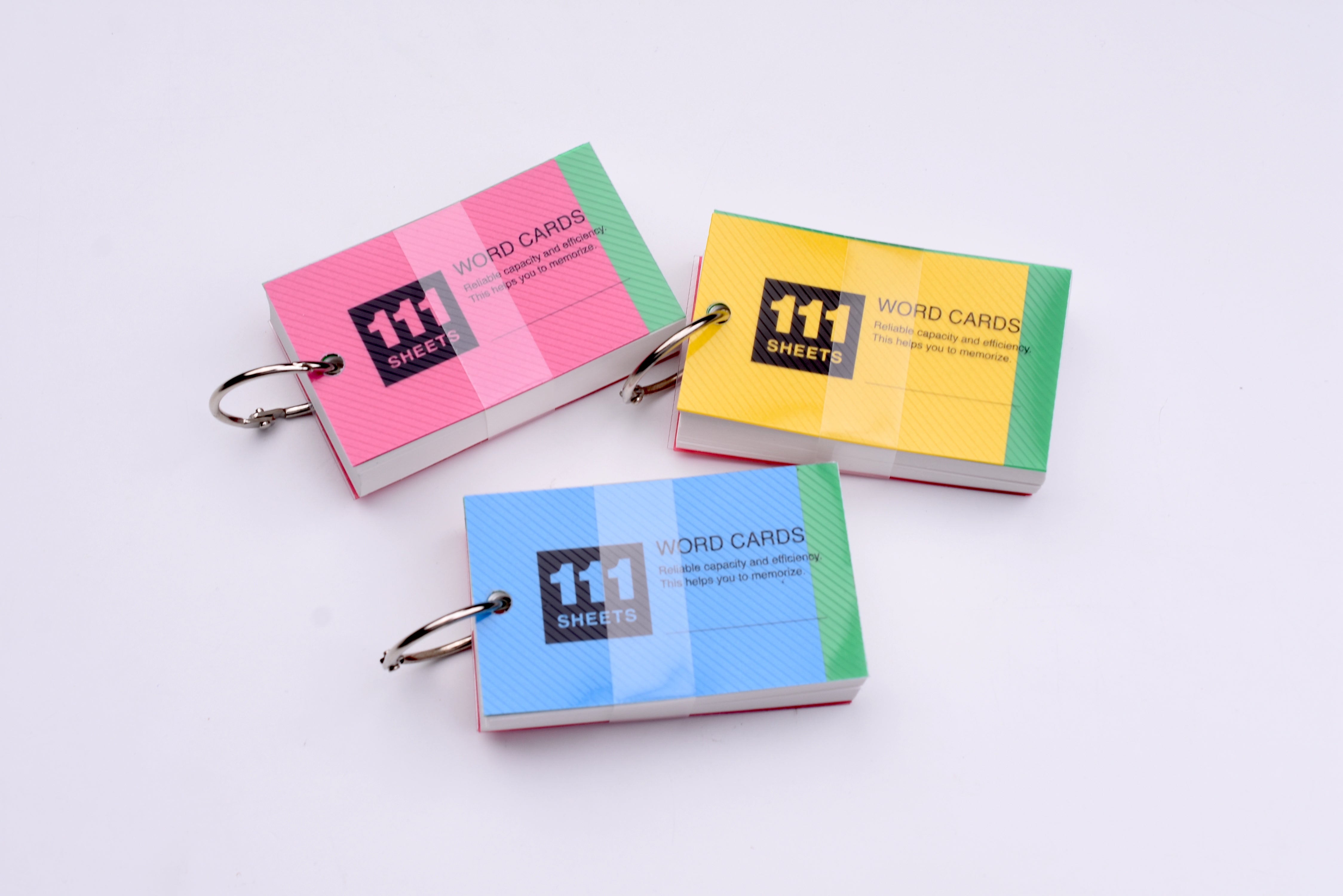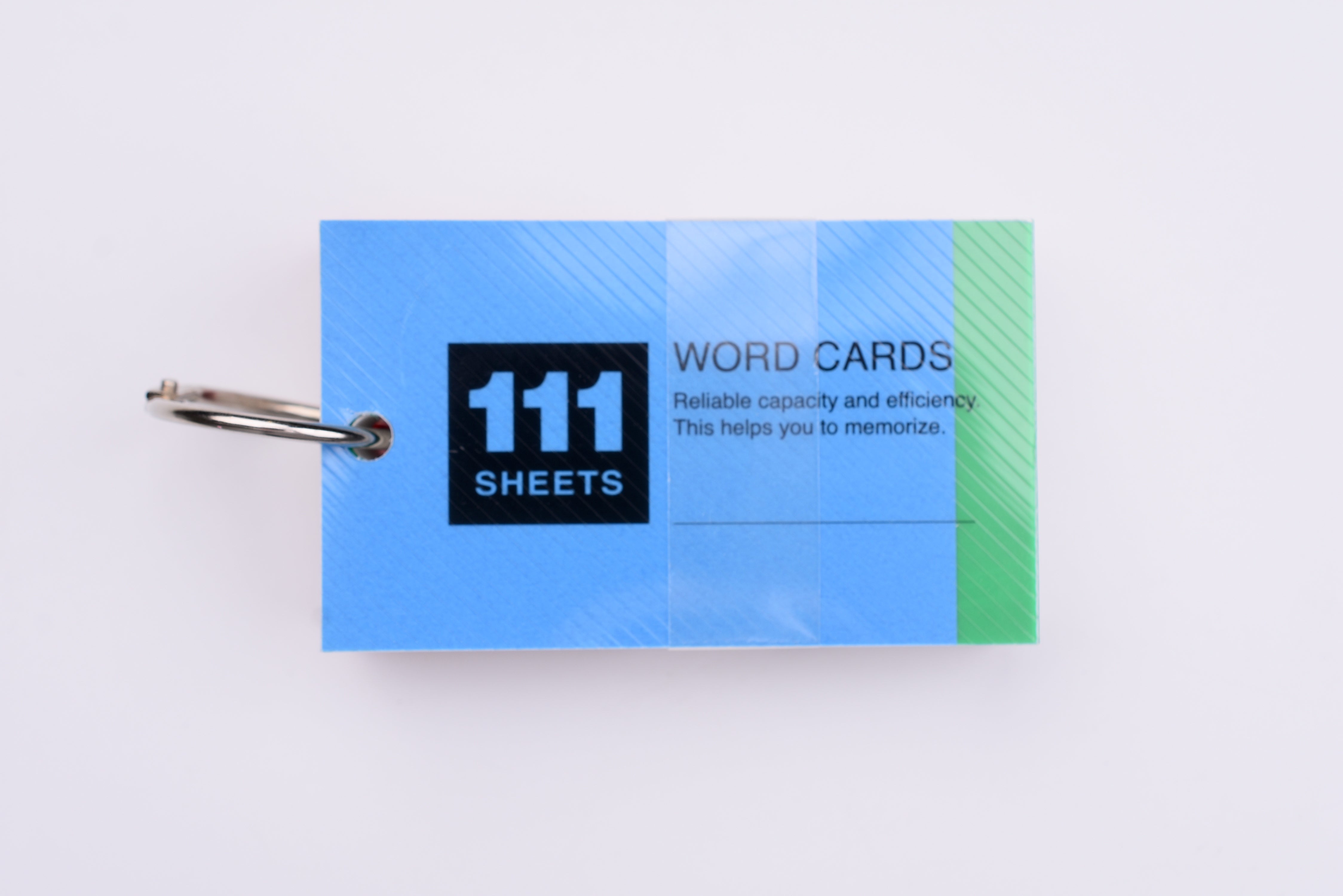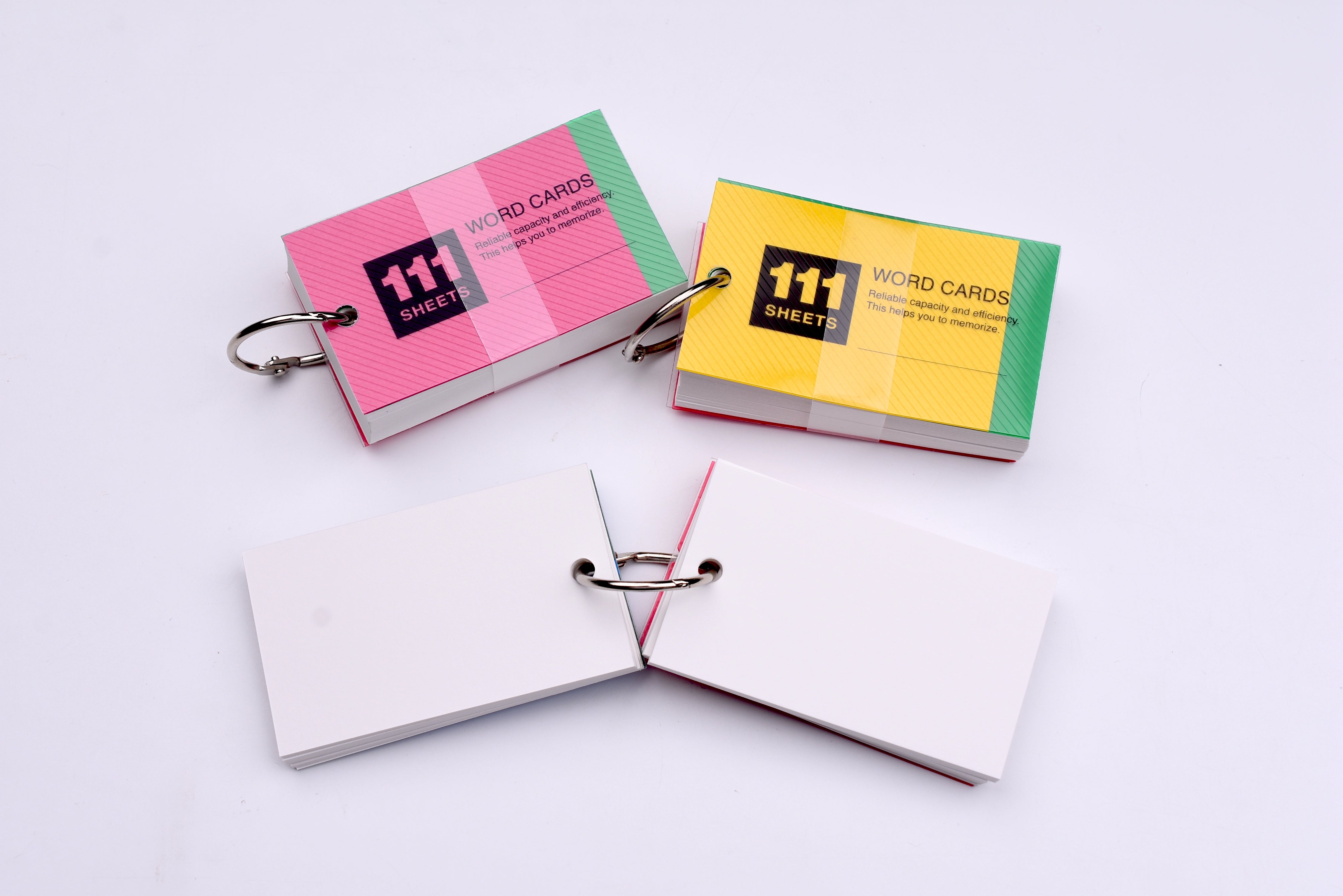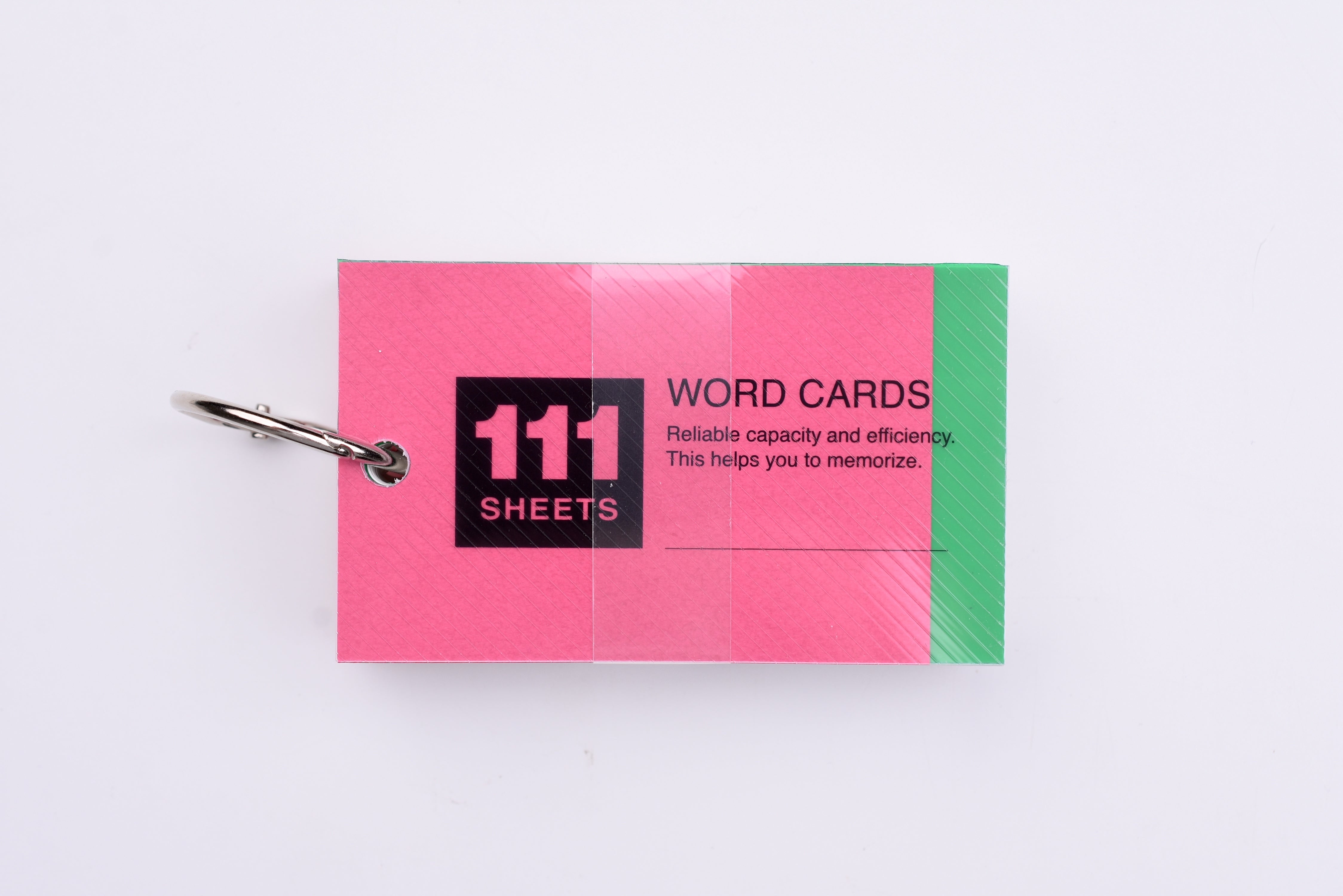 Raymay Word Cards - Wide. These word cards are a versatile tool for on-the-go learning, note-taking, or miniature sketching. The word cards feature Raymay's signature Tanto paper. Bound by a metal binder ring, these cards allow for easy removal and reorganization. They are small and compact size, which is ideal for storing in pockets, a great tool for students and anyone needing a portable study cards. Each set includes 111 sheets and a red and green transparent card.