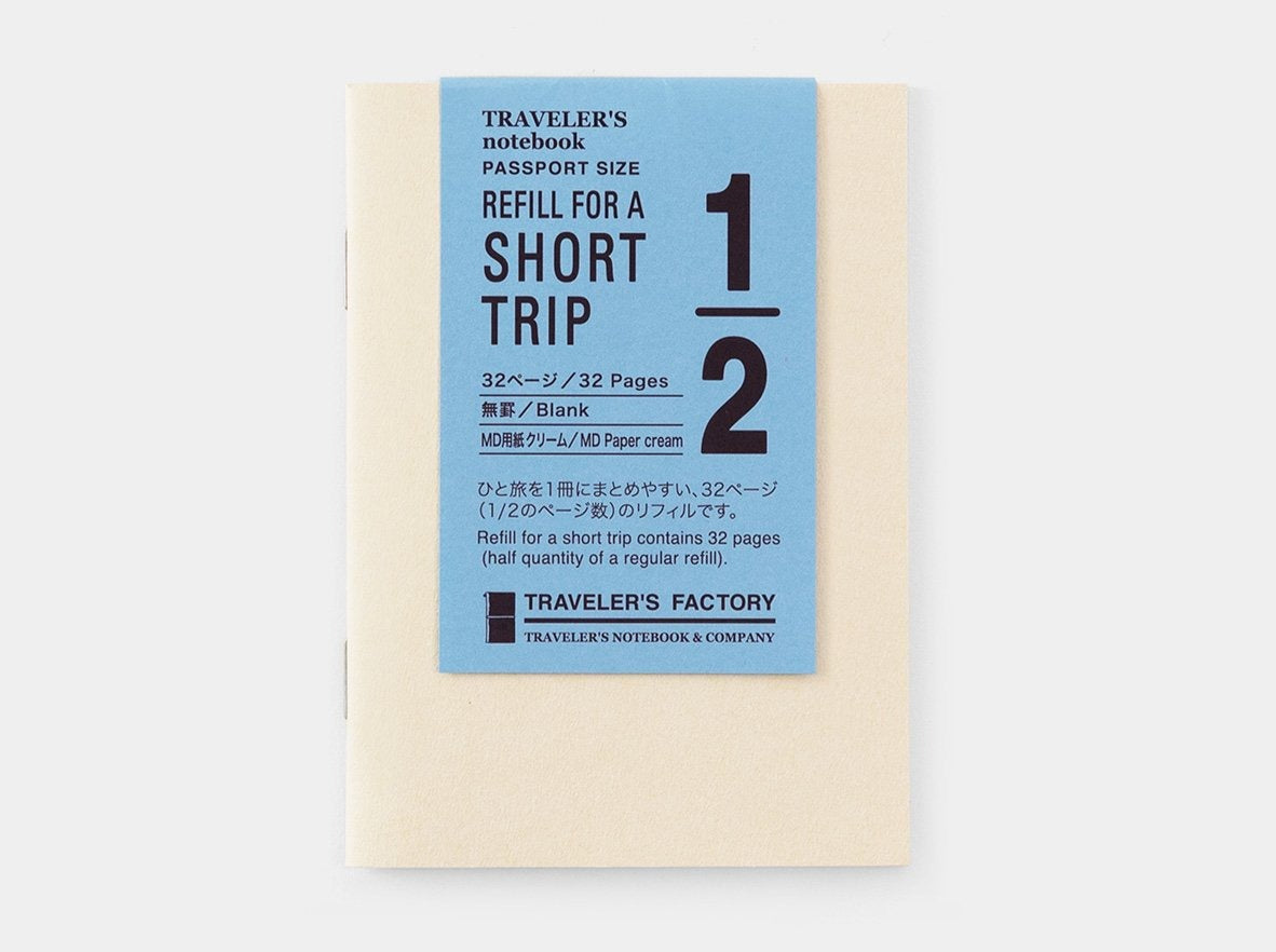 This is a half-size Traveler's Co. notebook, perfect for a single adventure or as an every day carry notebook. Being half-size, it contains 32 pages instead of the usual 64 pages. This refill contains plain, cream colored paper. This refill is for the passport sized Traveler's Notebook.