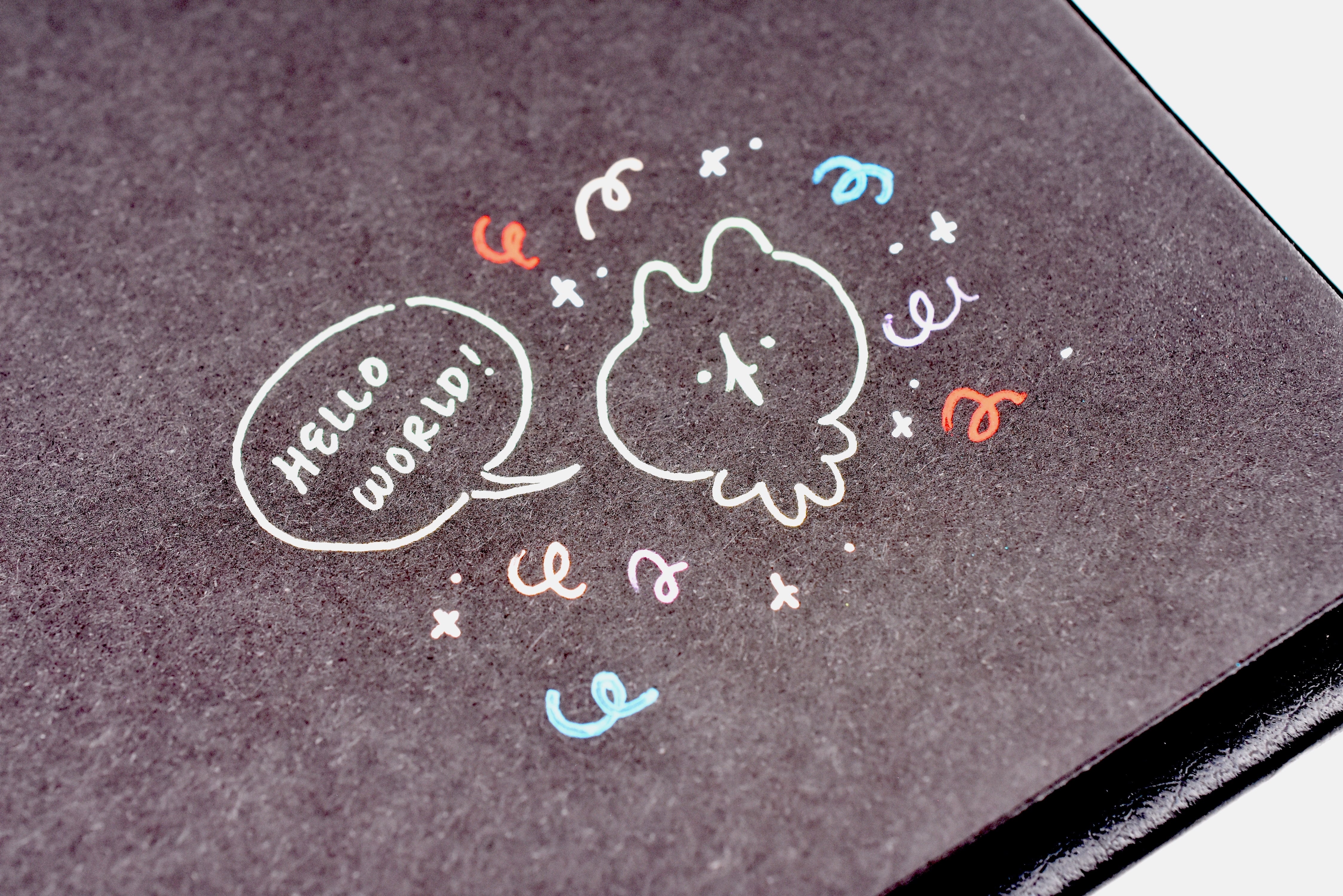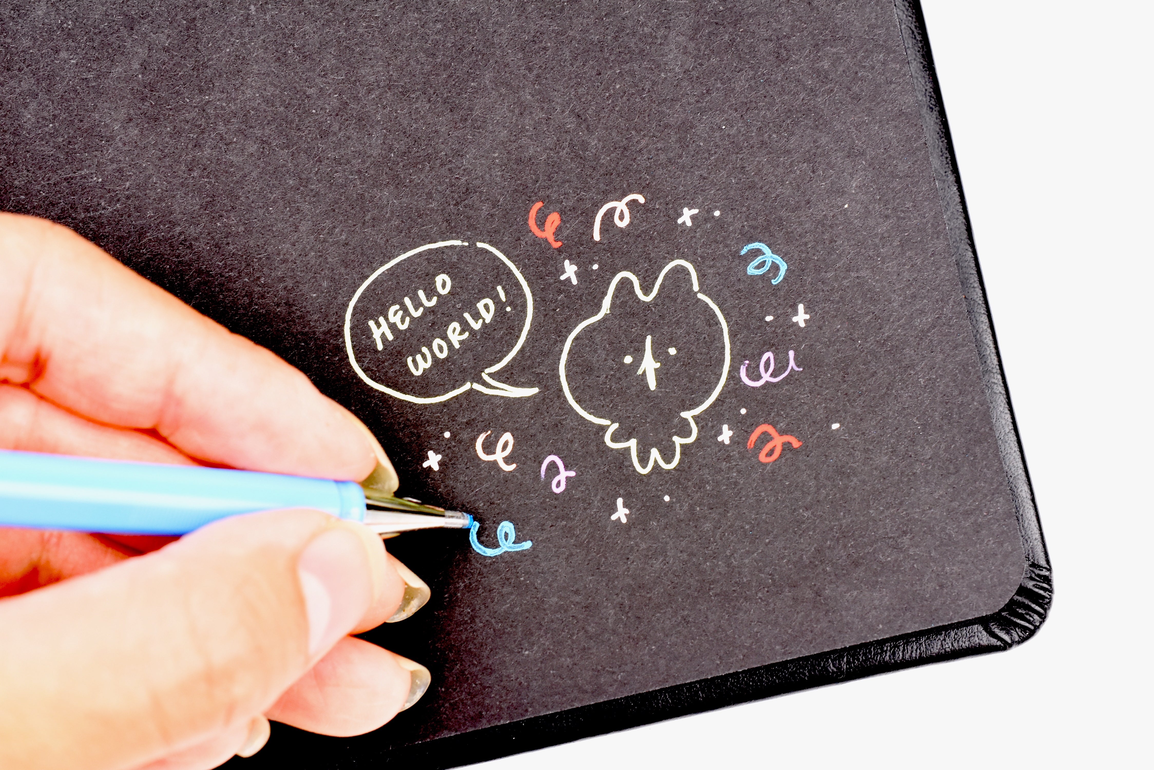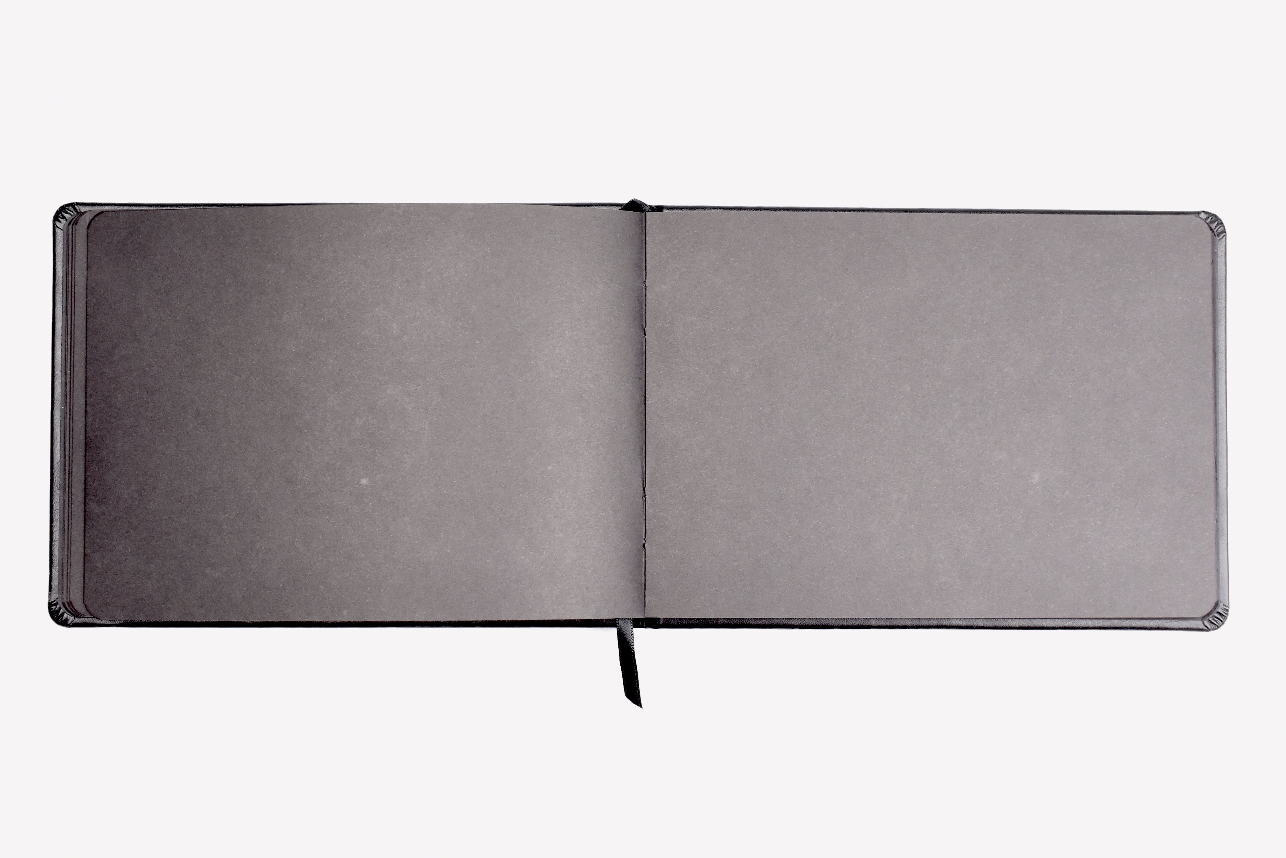 Rhodia Carb'ON Book - A5. Encased in an Italian leatherette hardbound cover with an elastic closure and ribbon marker, the deep-dyed Carb'ON paper provides a black surface that invites a unique writing or drawing experience. Its double-grain paper offers difference textures on each side of the sheets: a finely grained texture for detailed work, as well as a smooth finish great for dry drawing techniques. The black Carb'ON paper is acid-free, pH-neutral, and light-resistant.
