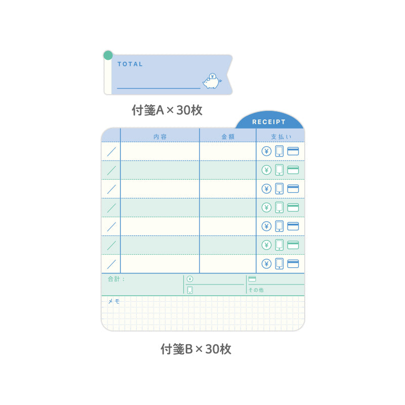 The flag-shaped notes are great for marking daily expenses on a monthly calendar or using as quick-reference indexes. The square notes offer more space for details and can be paired with shop cards, illustrations, or diary entries — perfect for life logging. Each set also includes a handy index tab that doubles as a bookmark.