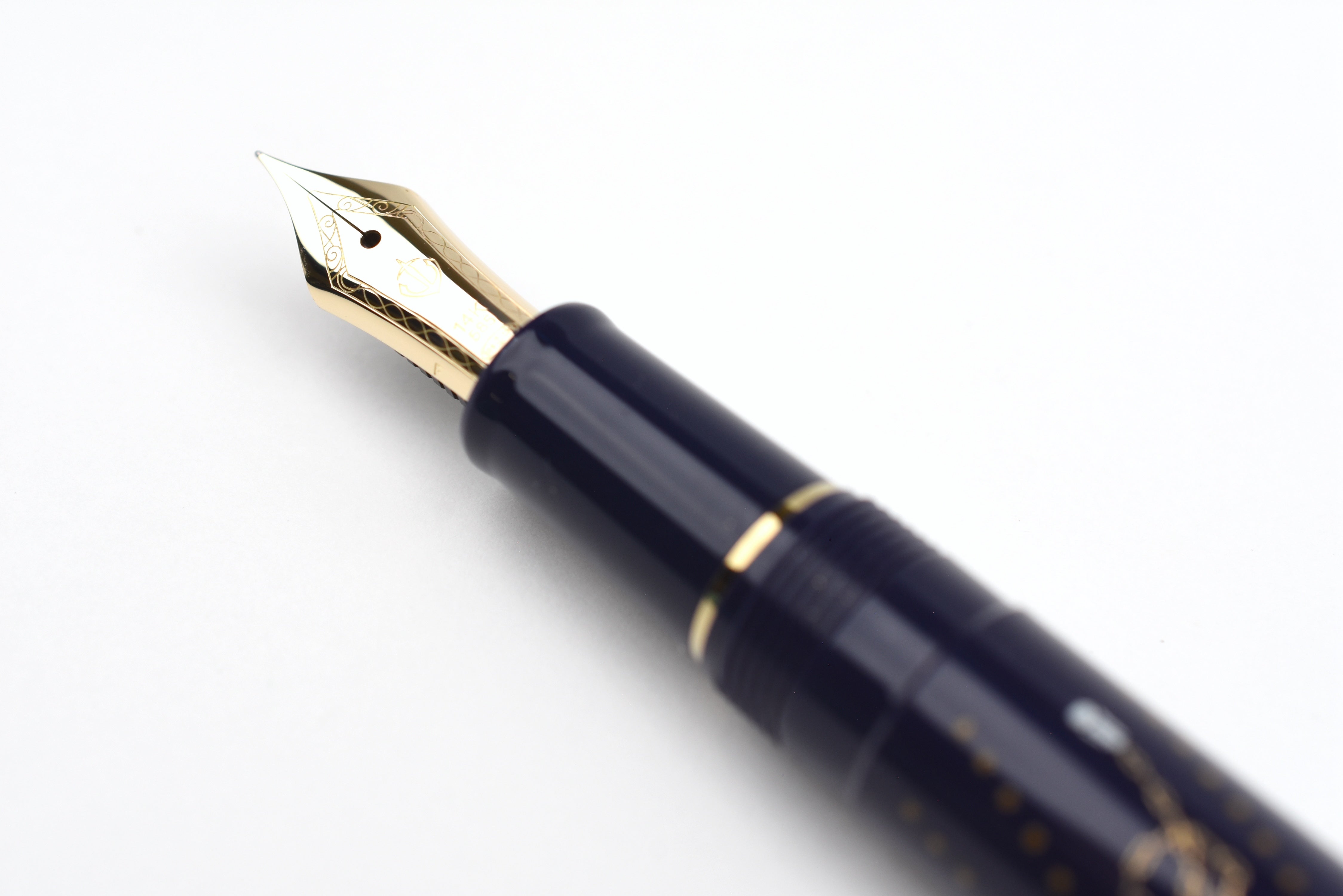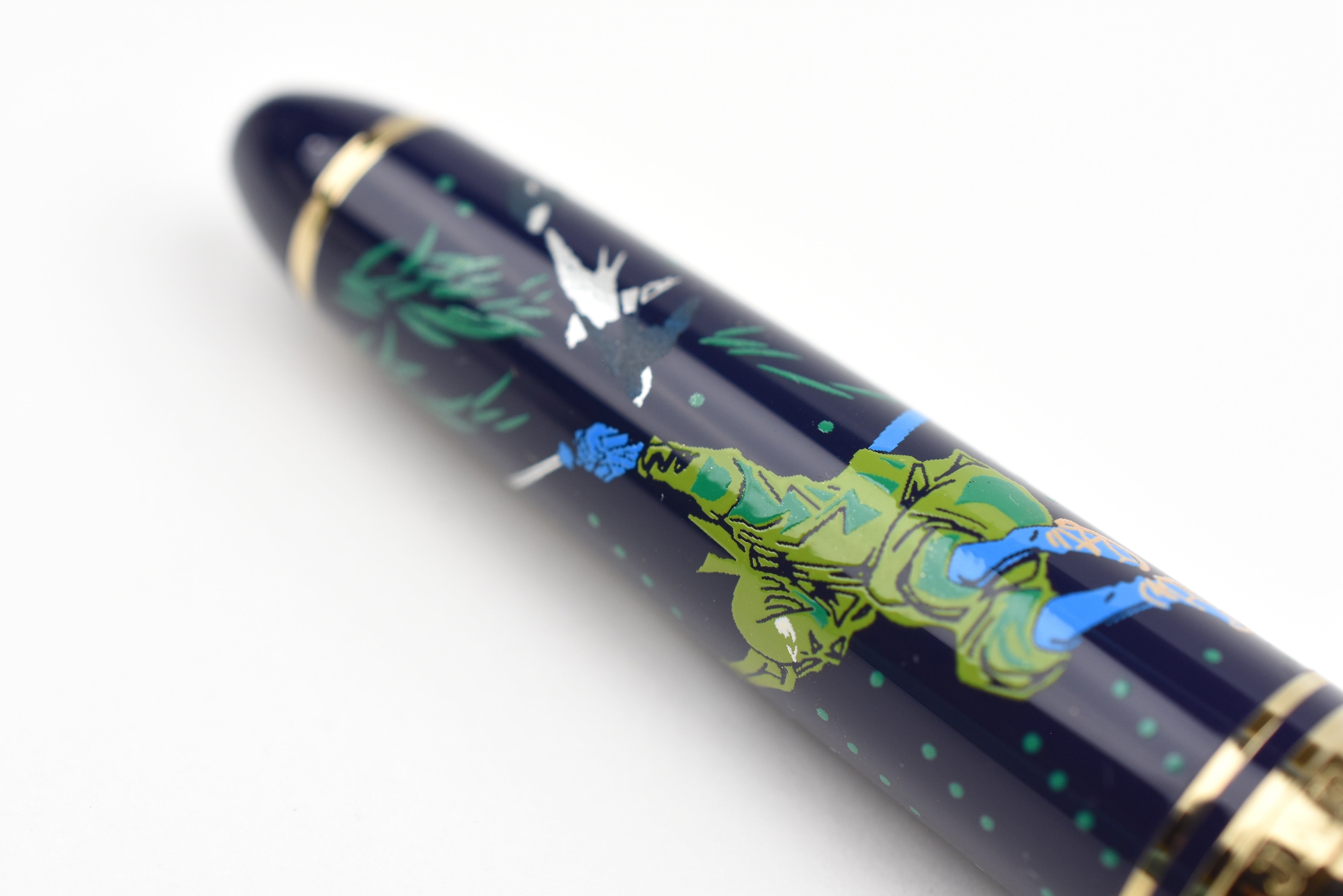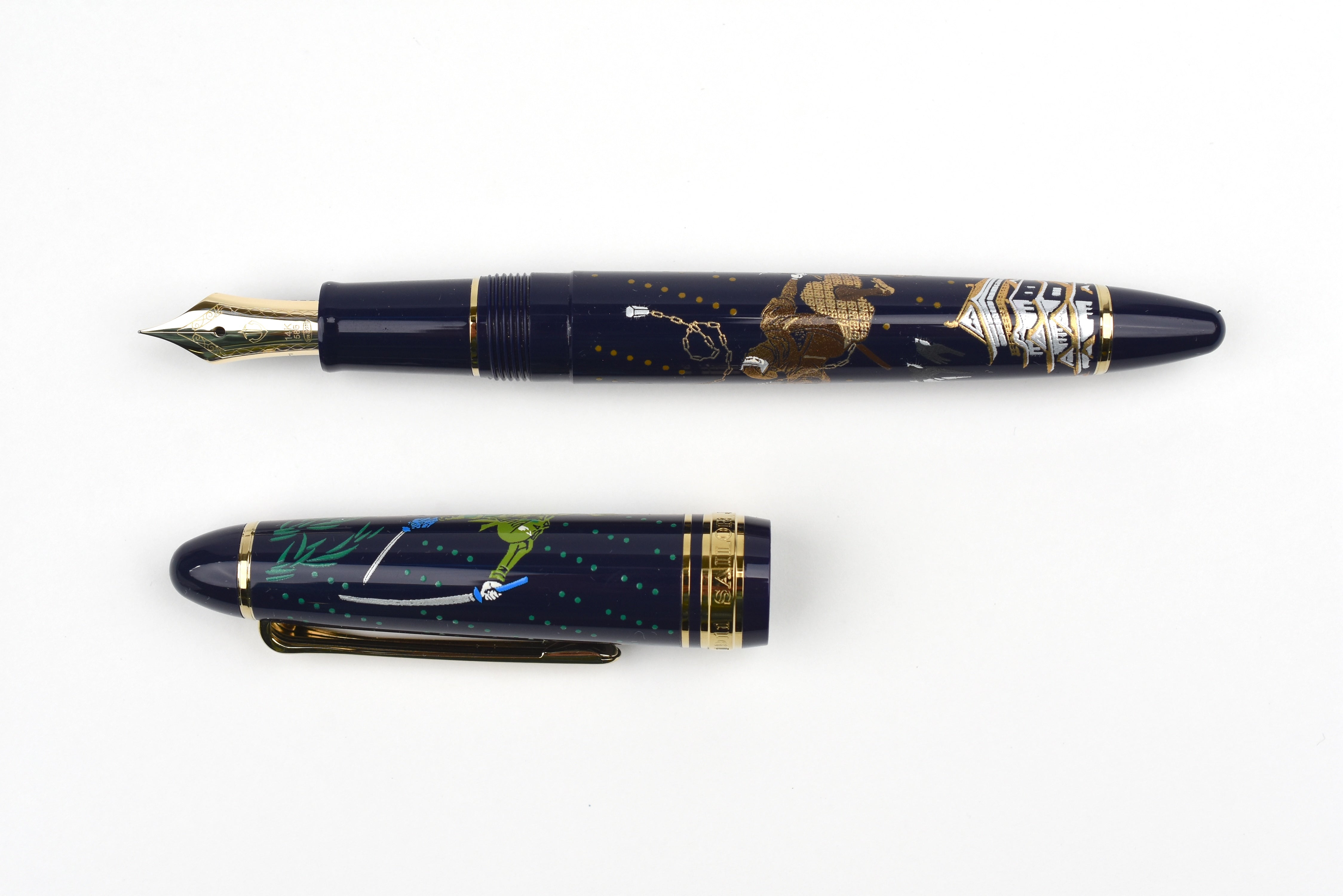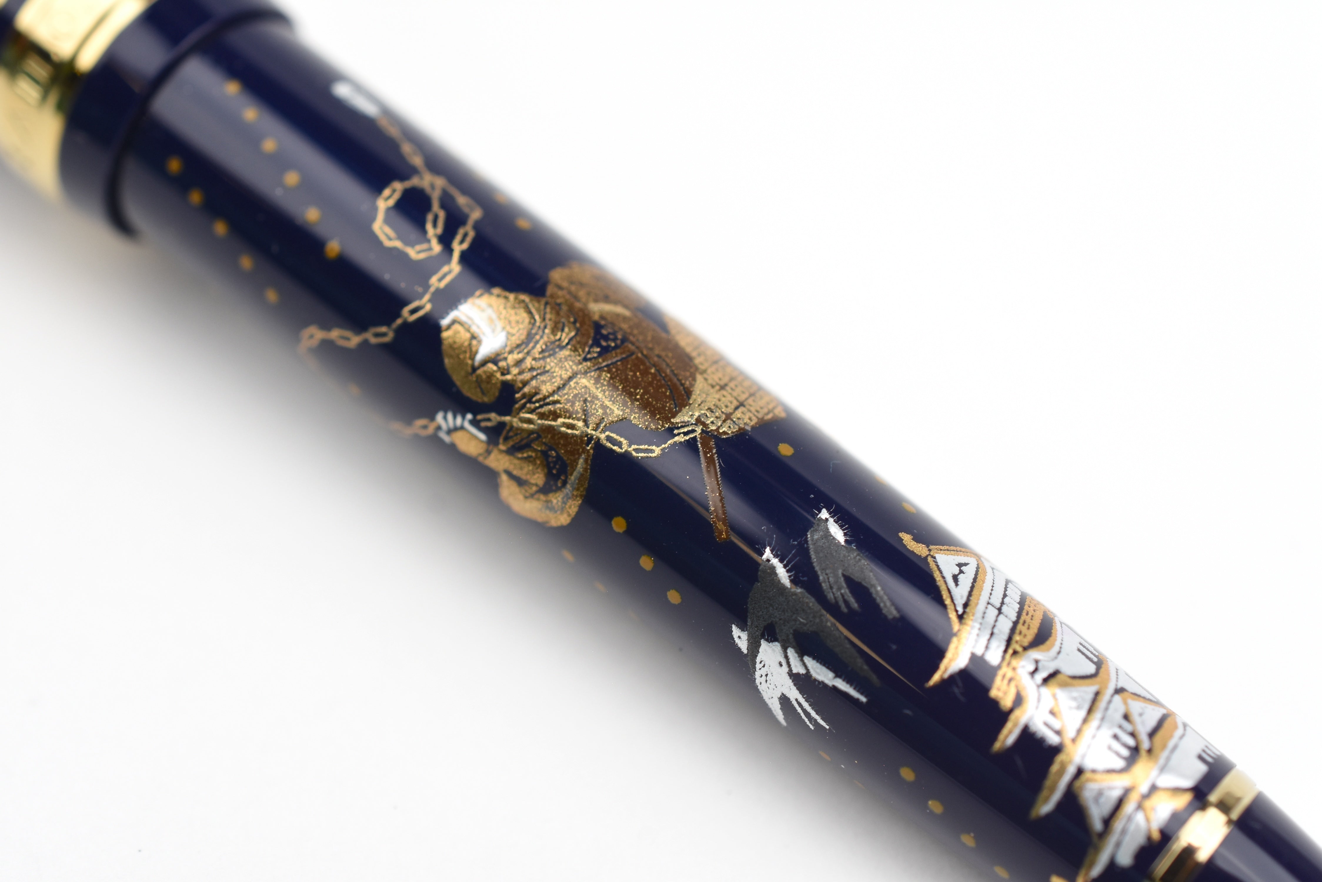 The 1911 Standard - Kusarigama comes with a 14K solid Gold nib and a dark blue body. The art work is based on kusarigama, which is a weapon that can be used to entangle an opponent's weapon or ensnare their neck or legs.