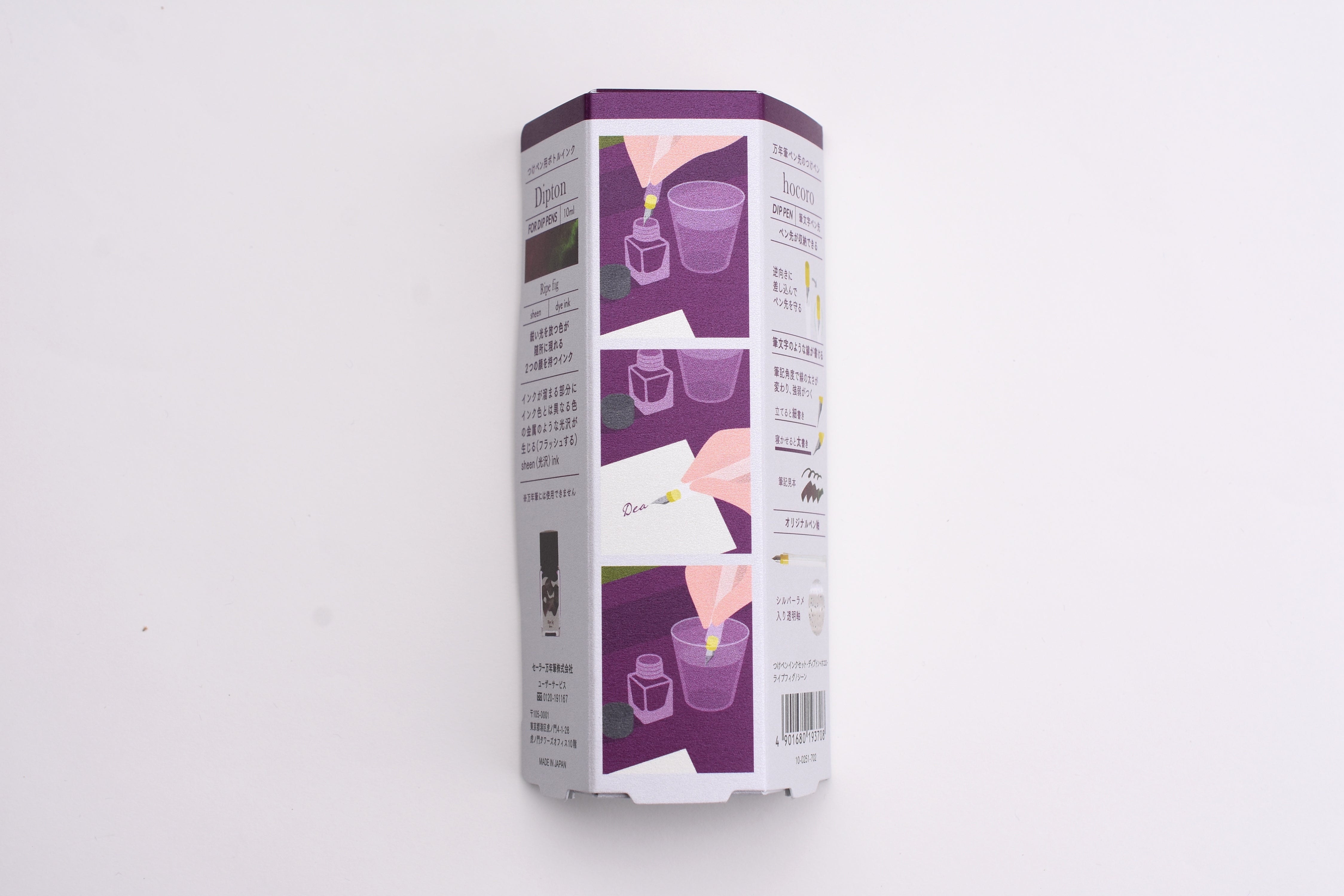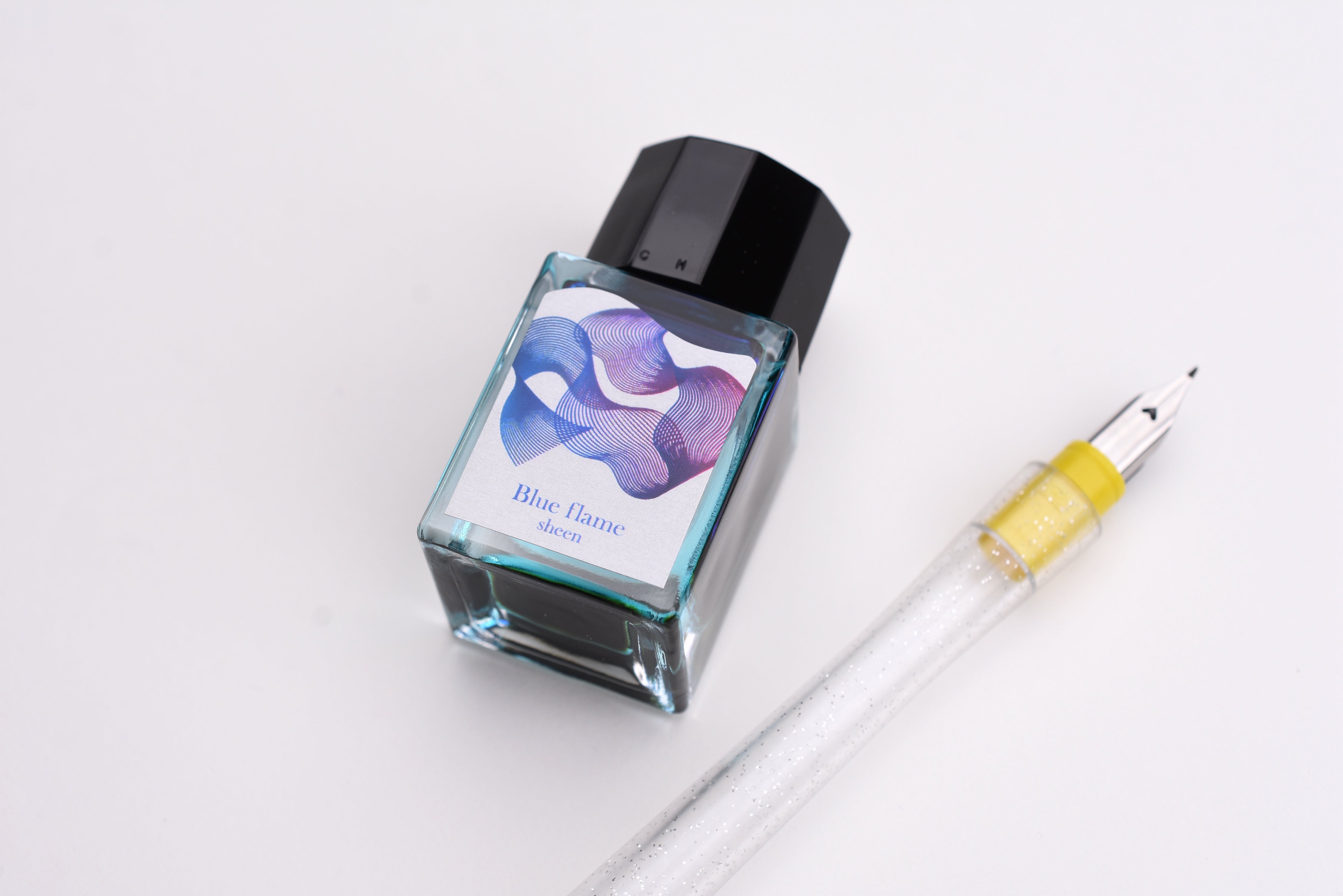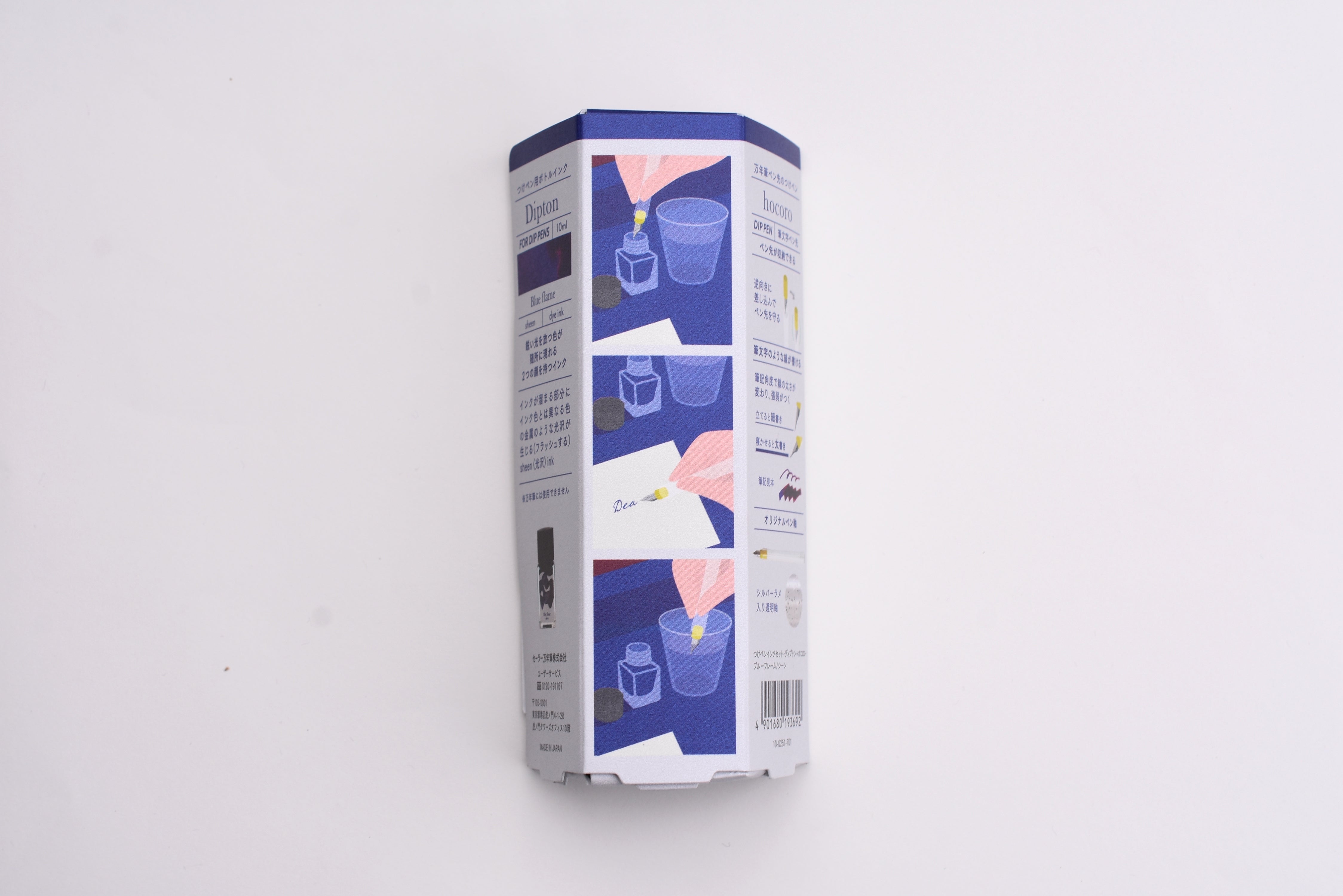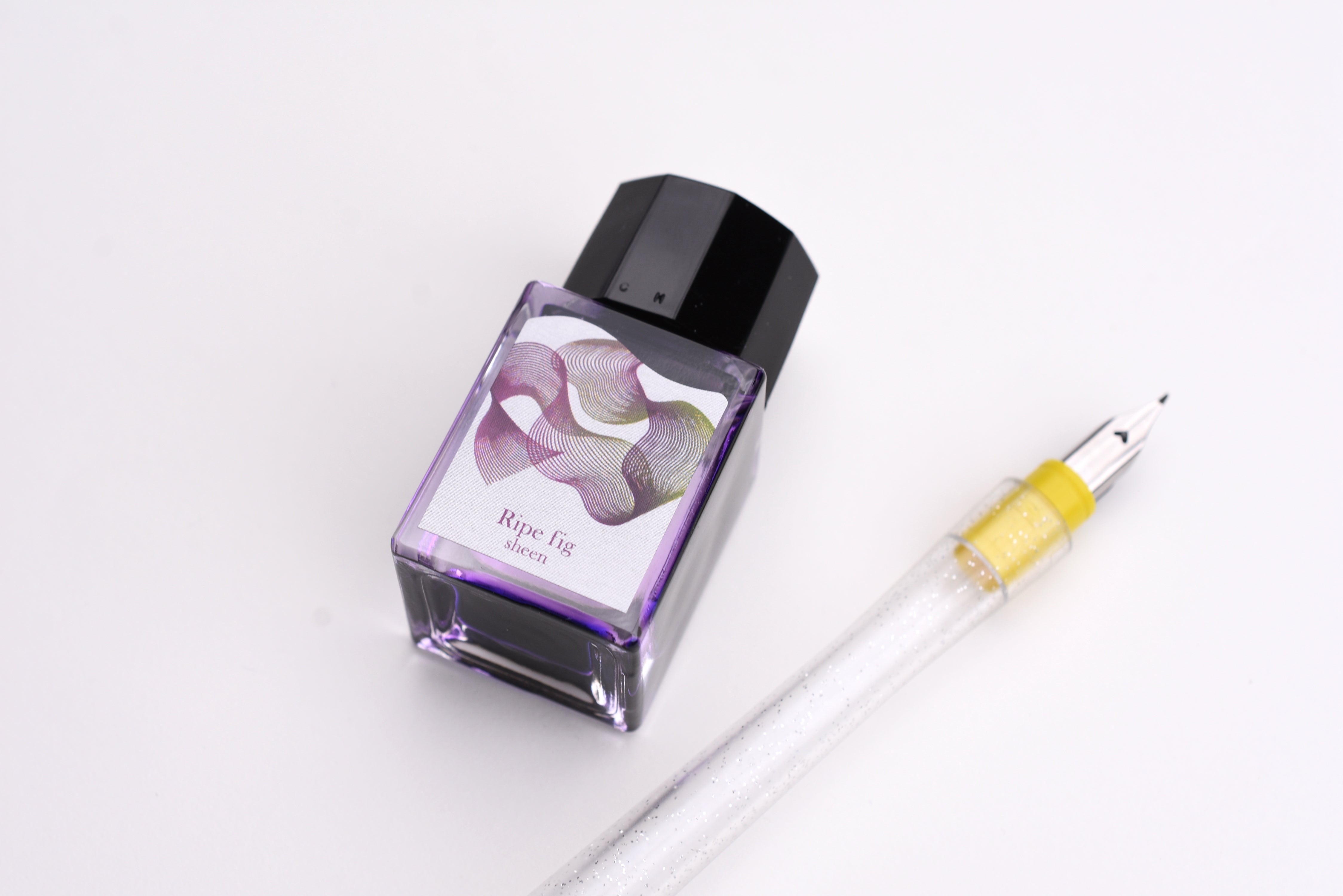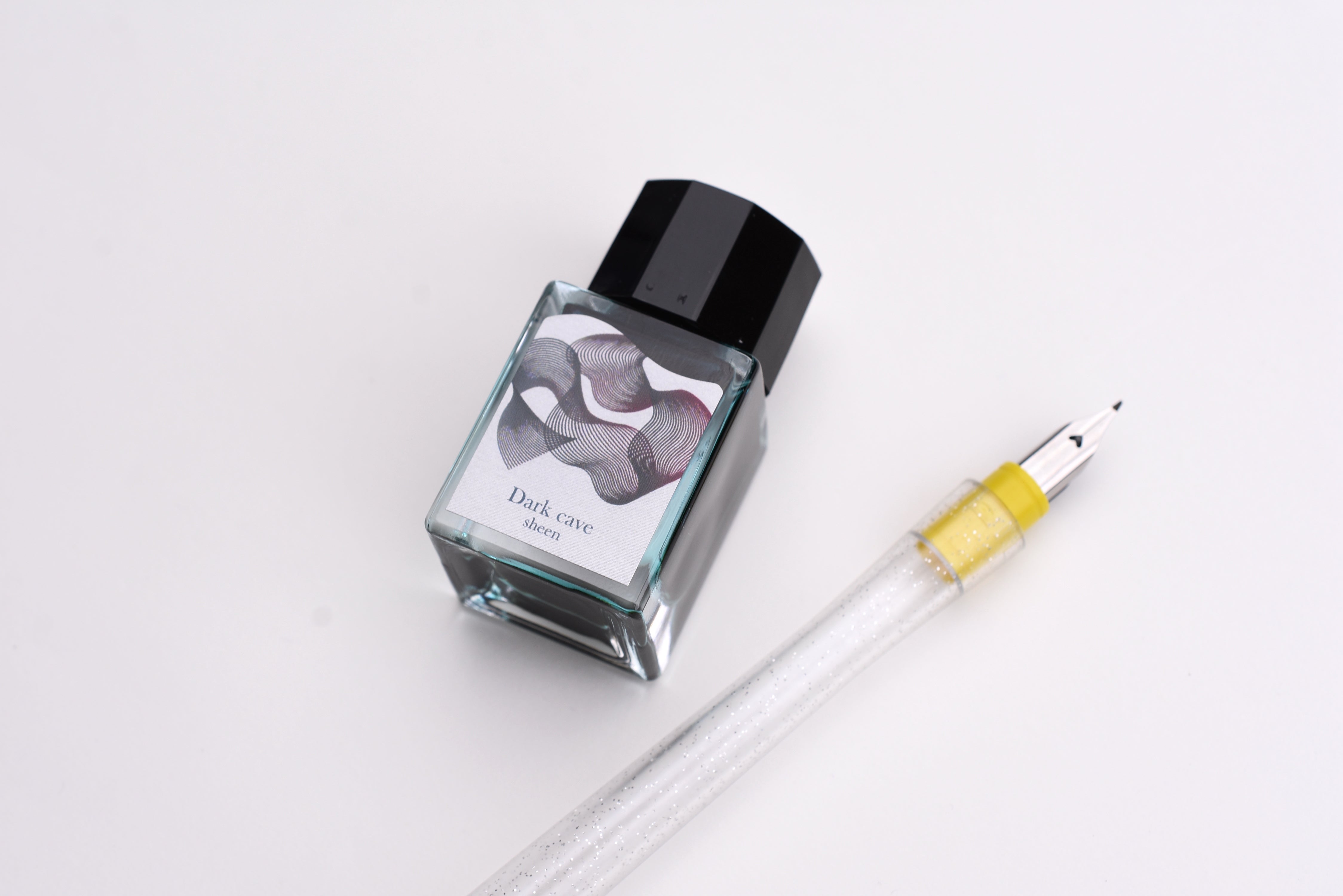 The latest Dipton Ink series from Sailor is a line of special inks created especially for dip pen use. The name "Dipton" derives from the action "Dip" and "ton(トン)", an onomatopoeia for the tapping sound made when pressing the nib against the bottle rim to drip off excess ink. The three new sheening inks, Blue flame, Ripe fig, and Dark cave, are named after the contrasting, mysterious dark ink colors. This Dip Pen and Sheening Ink Set includes one of Sailor's innovative dip pen with a fude nib and one 10mL bottled sheening ink. This special edition Hocoro pen comes with a transparent pen barrel with glitter design, and the fude nib provides you a perfect width to fully enjoy the sheening ink.