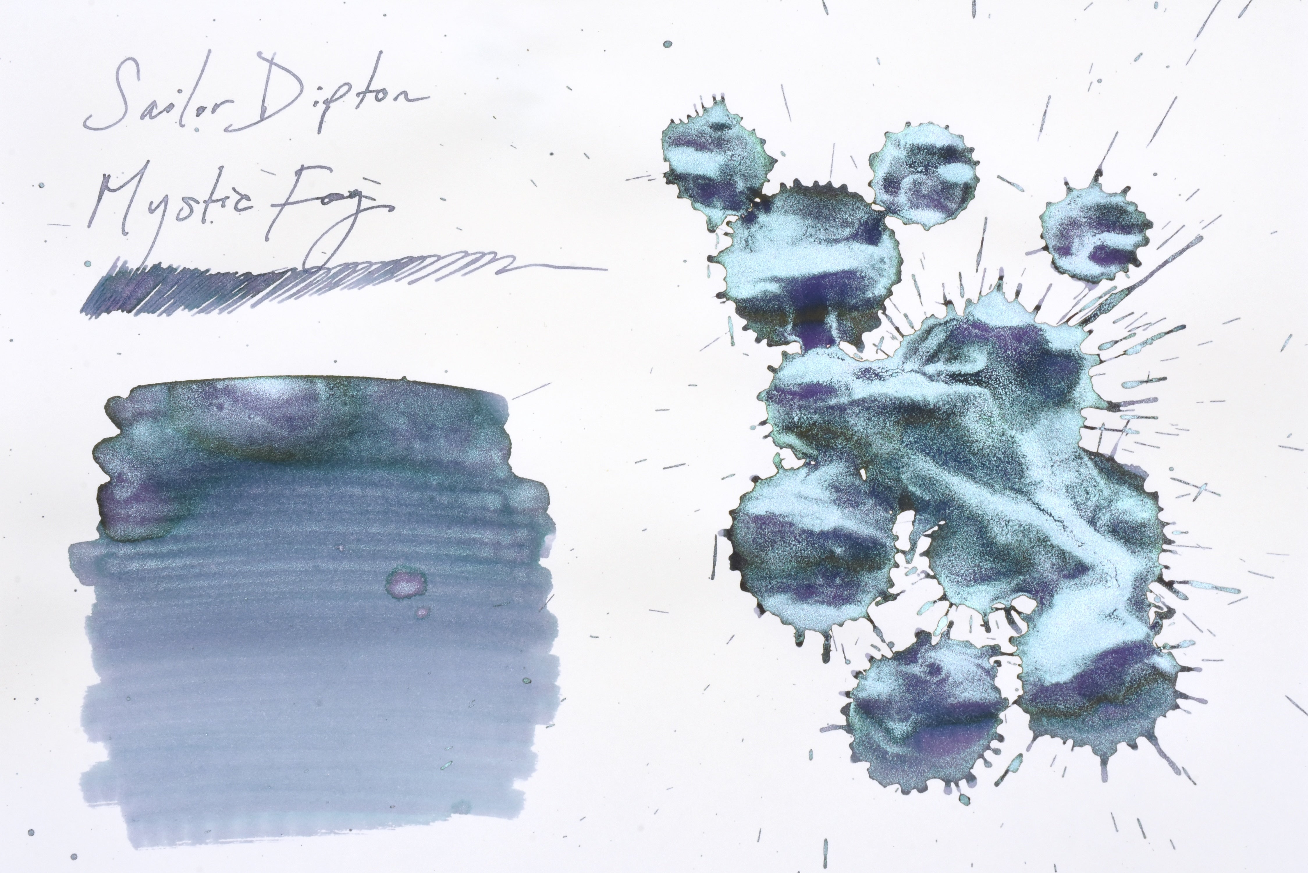 The collection includes three celestial-themed colors—Mystic Fog, Angel's Ladder, and Twilight Romance—each showcasing a unique type of shimmer. The name “Dipton” combines “dip” with “ton” (トン), an onomatopoeia for the gentle tapping sound made when removing excess ink from a nib.
