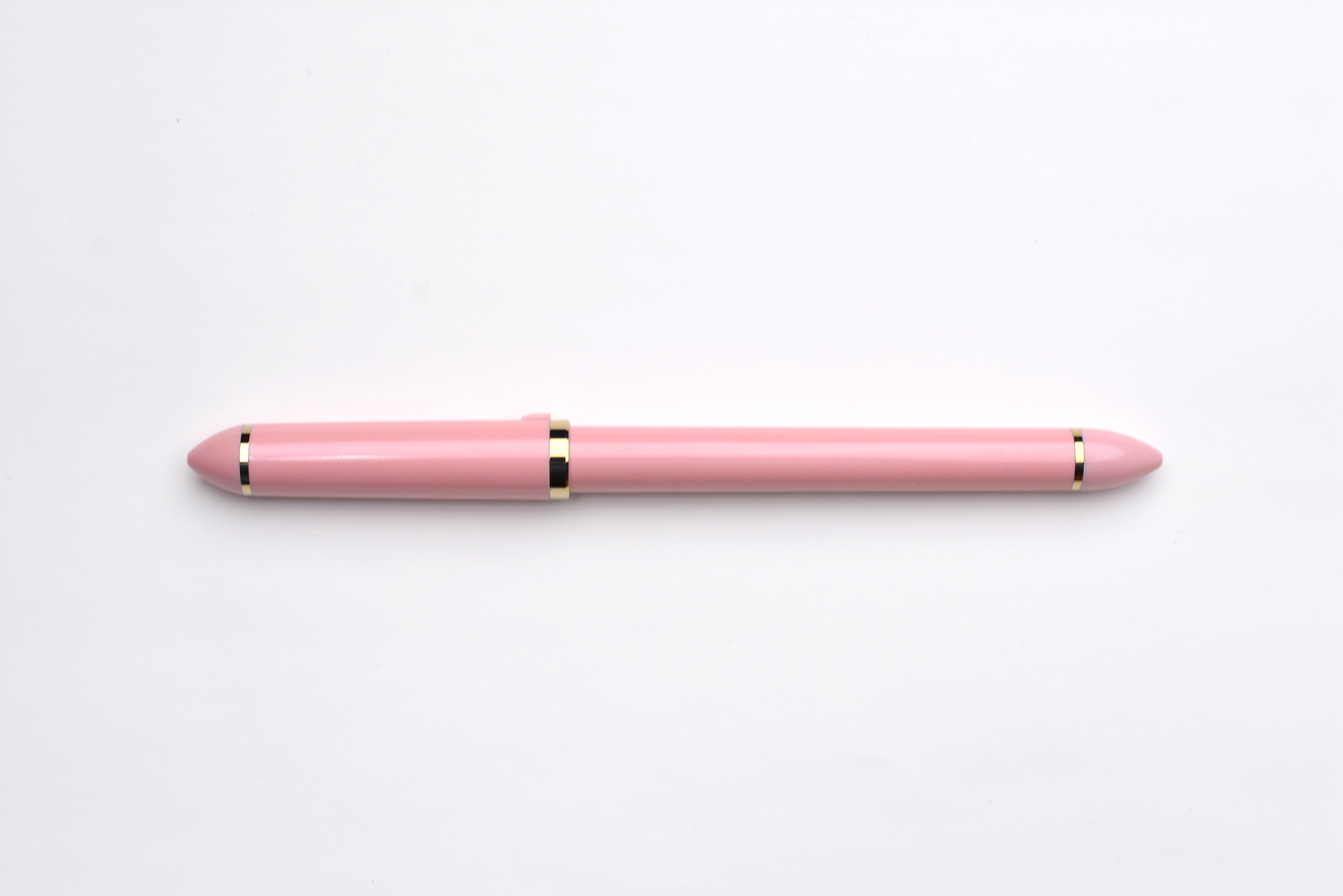 The body of the pen is lovely. Most of the pen is a cherry-blossom pink, but the very back is a slightly sparkling, paler pink shade. This pen is light, and comfortable to write with.