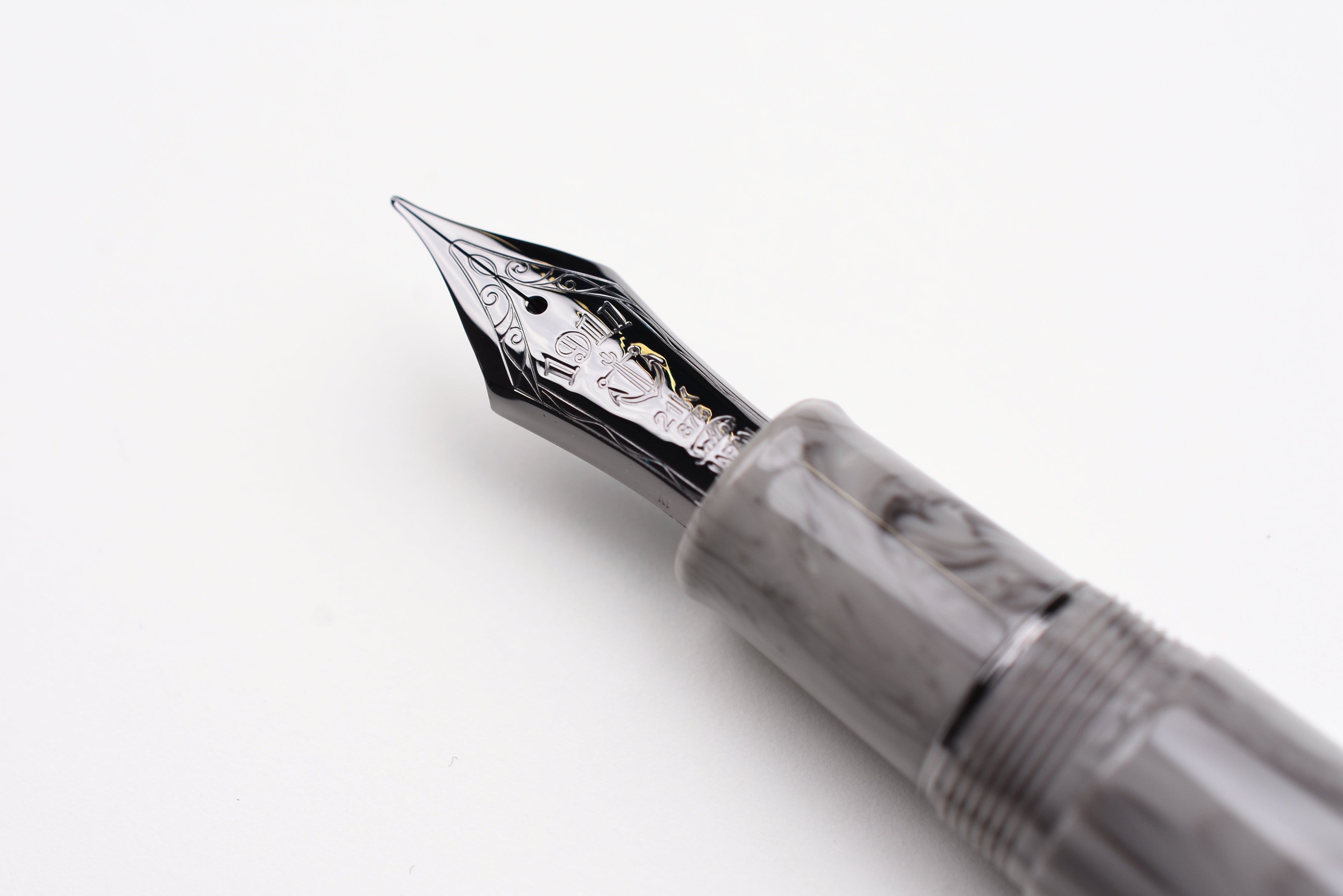 Sailor Luminous Shadow King of Pen Fountain Pen – Fog Gray – Limited Edition evokes a foggy moonlit landscape with its marbled white-and-gray palette.