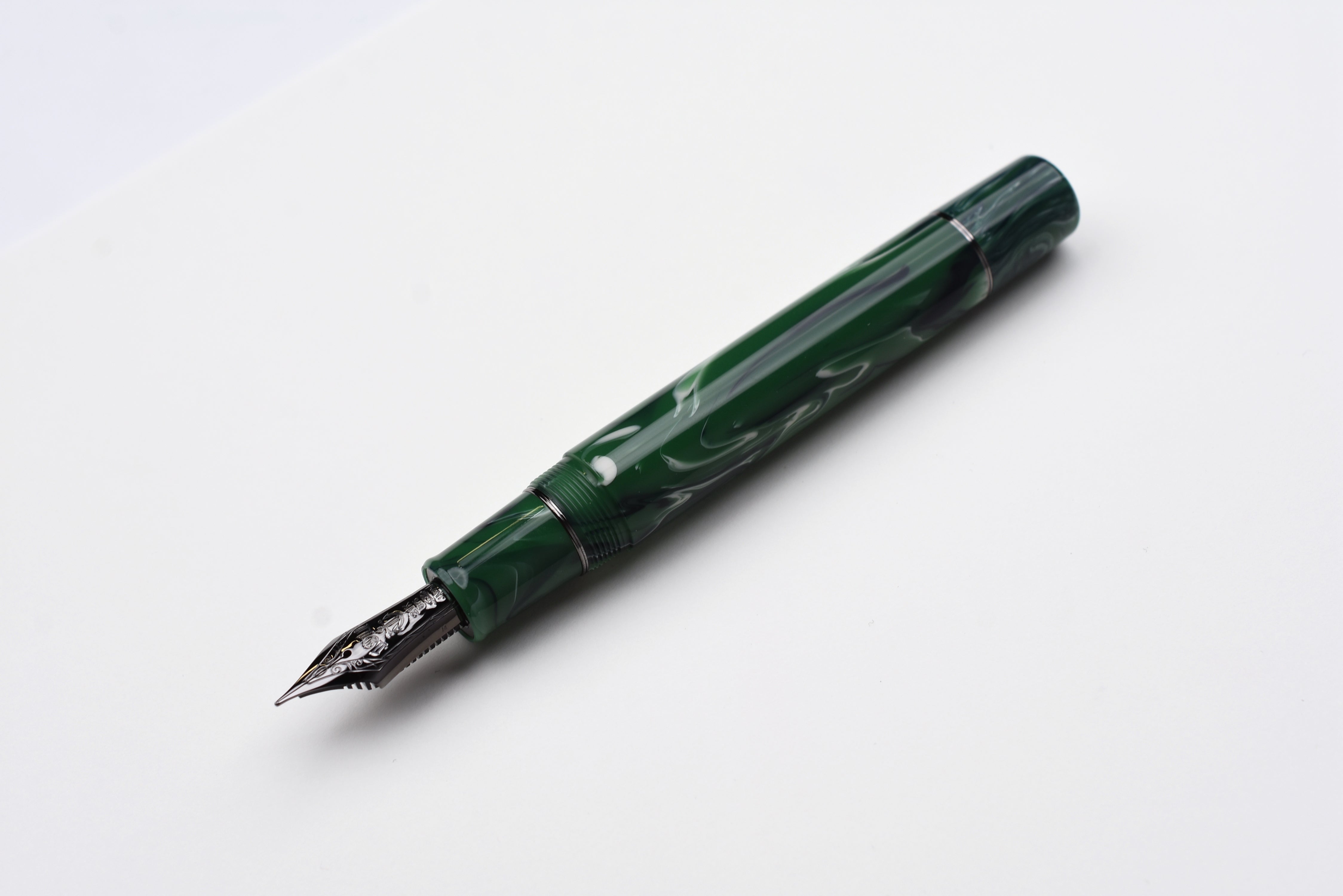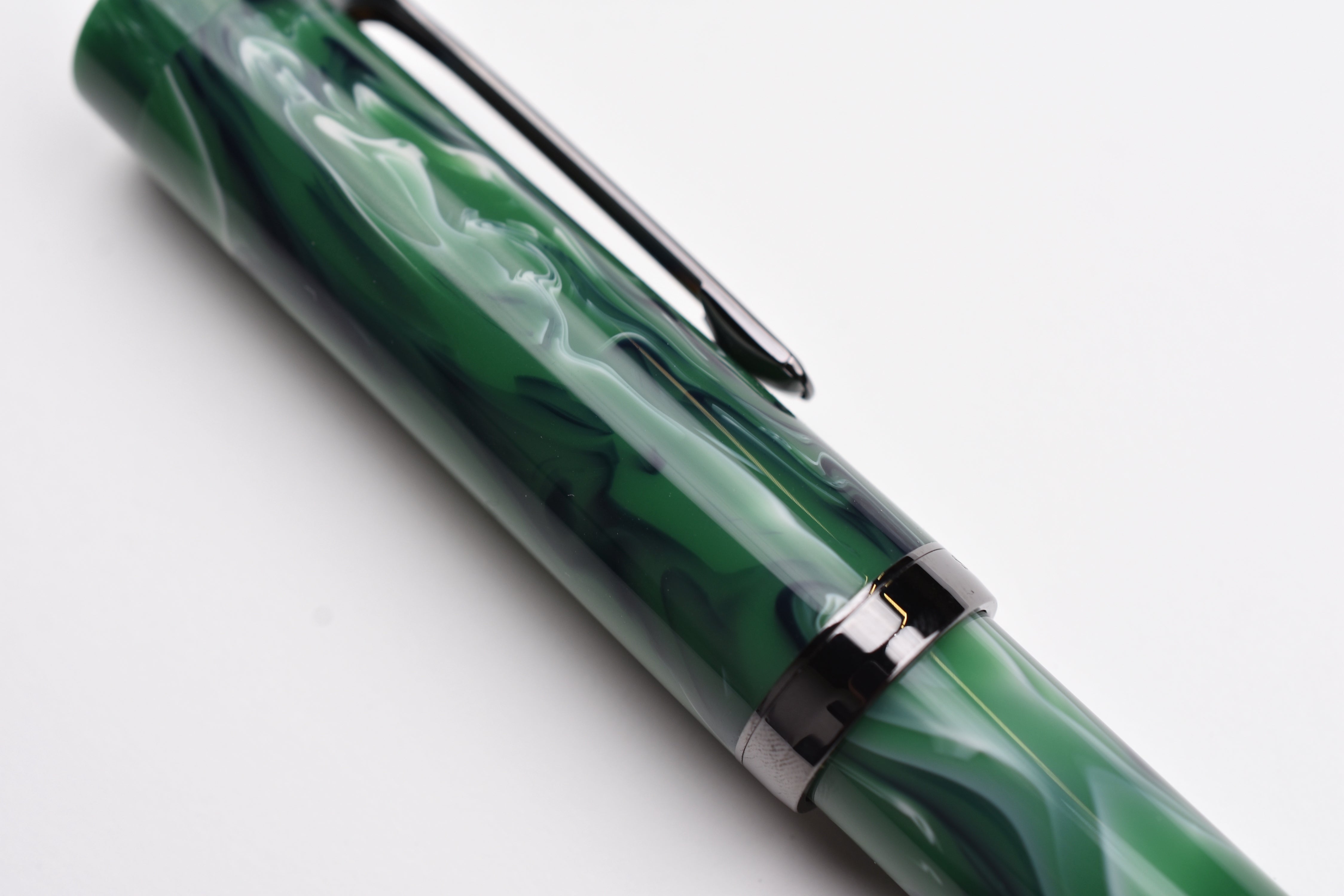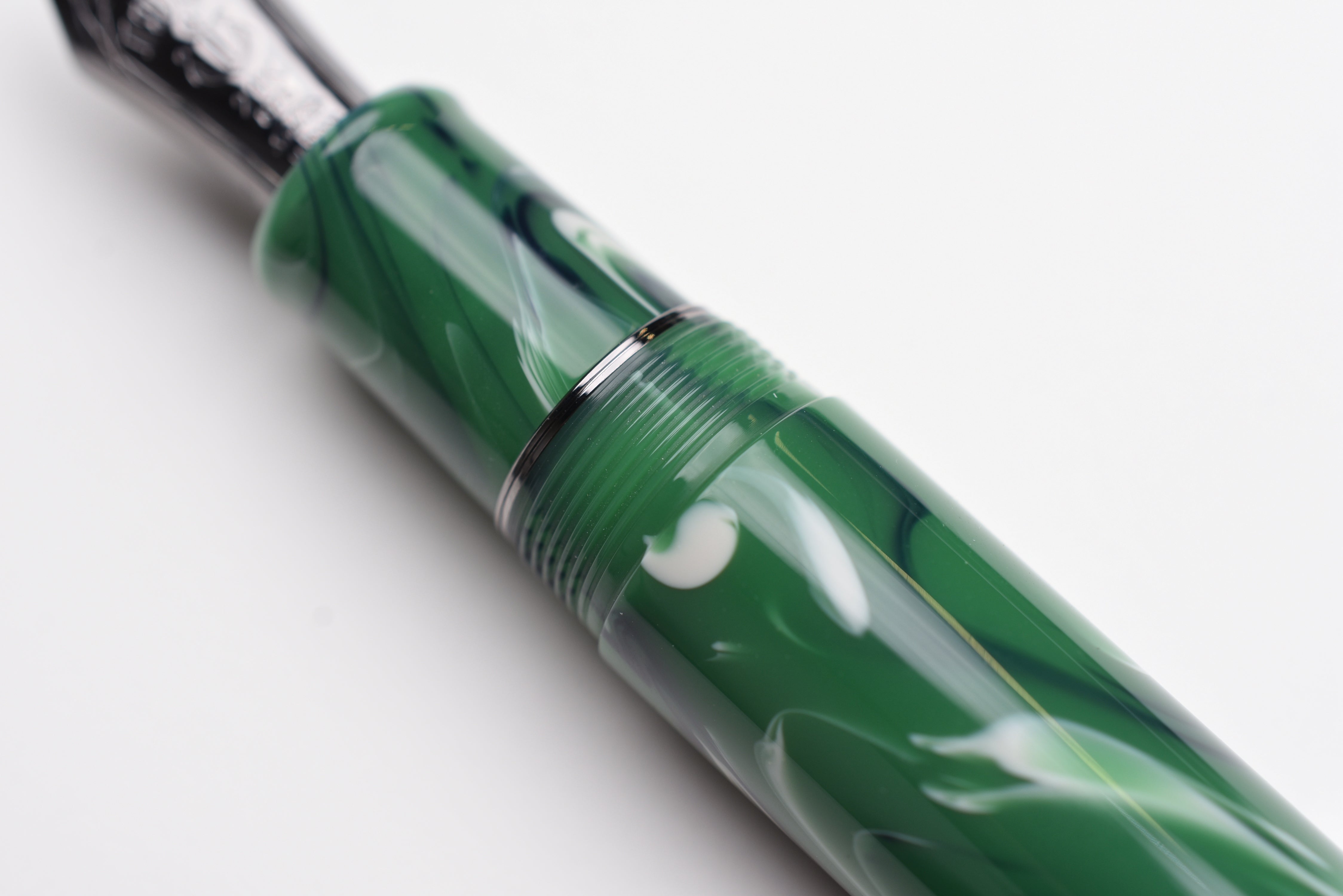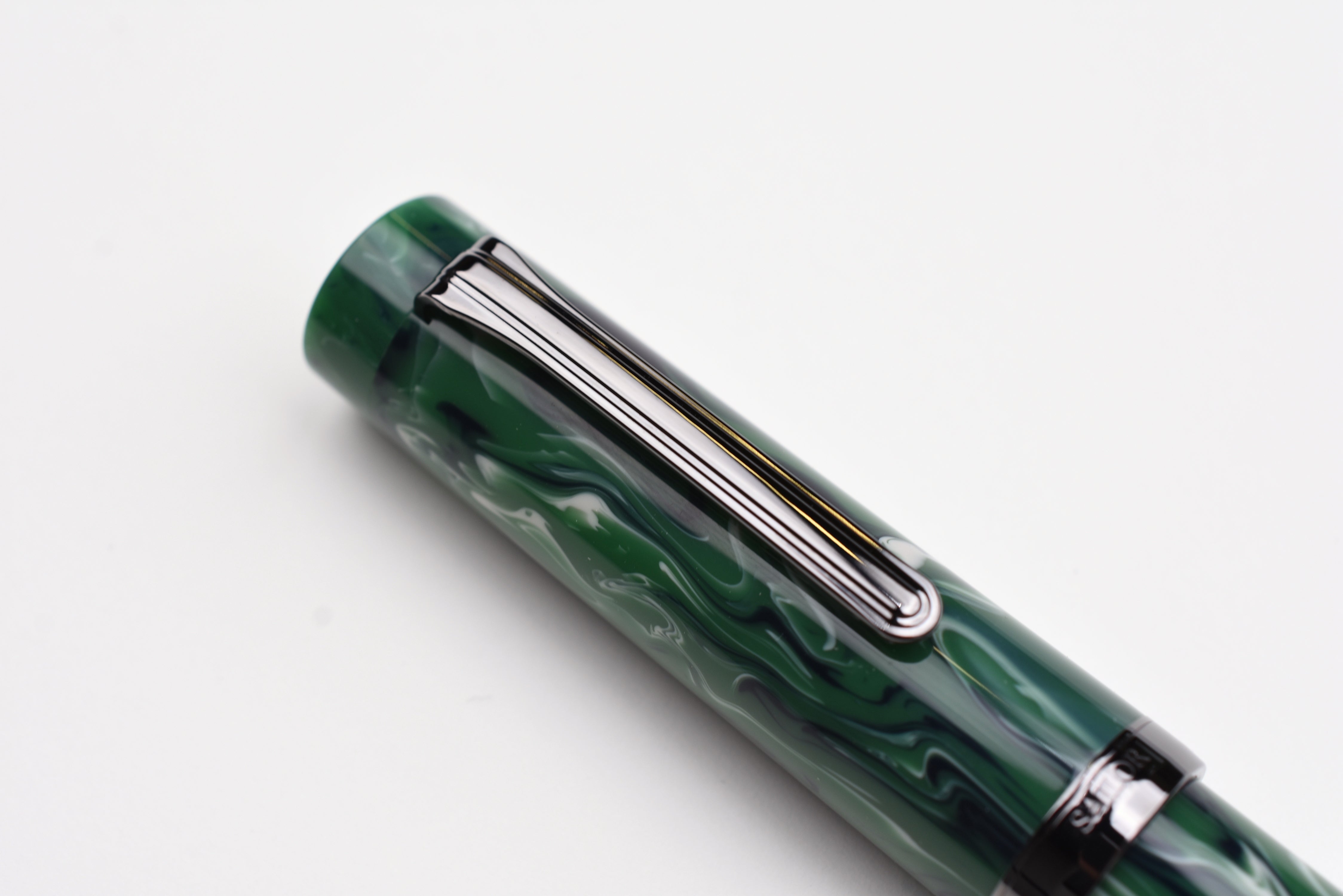 Sailor Luminous Shadow King of Pen Fountain Pen – Grove Green – Limited Edition evokes a dark forest glade shaded by trees with its deep greens and black-ion-plated accents.