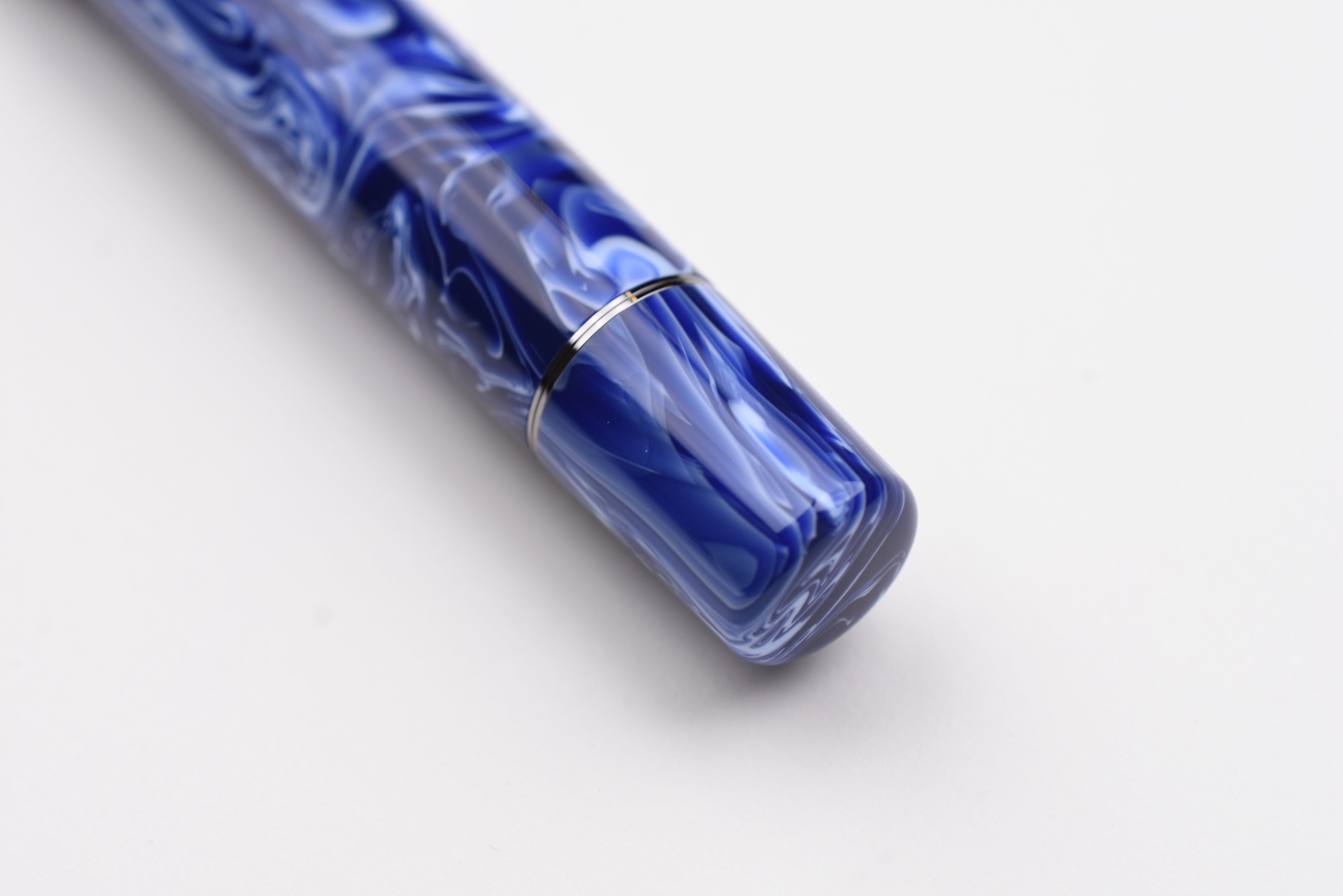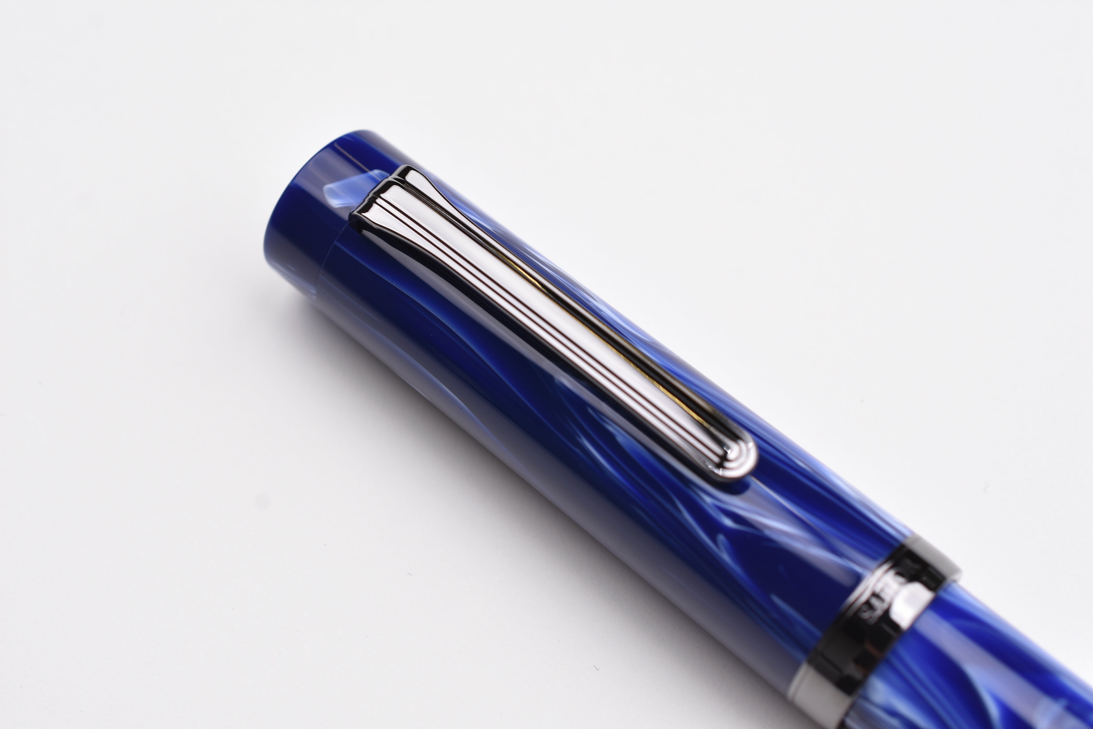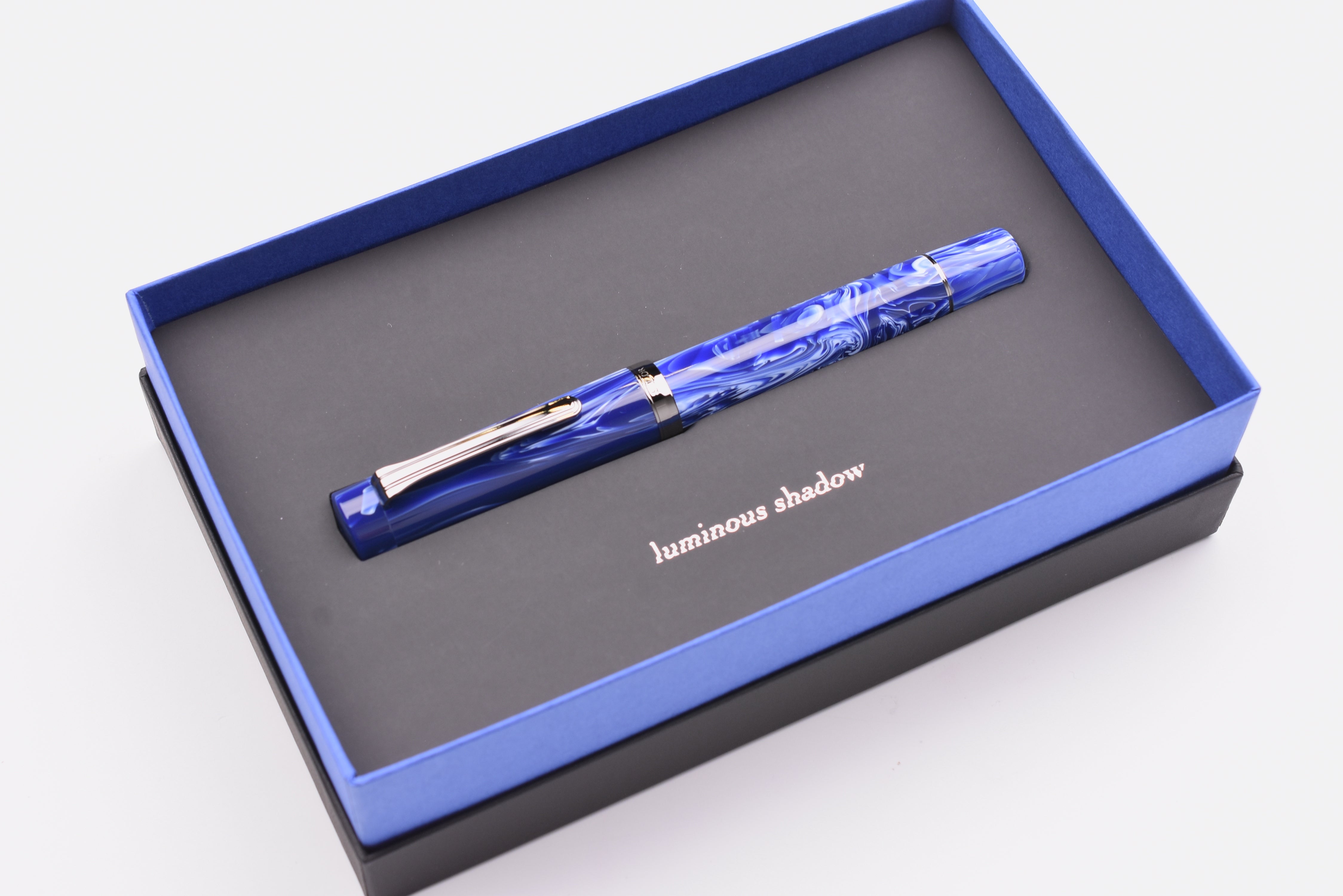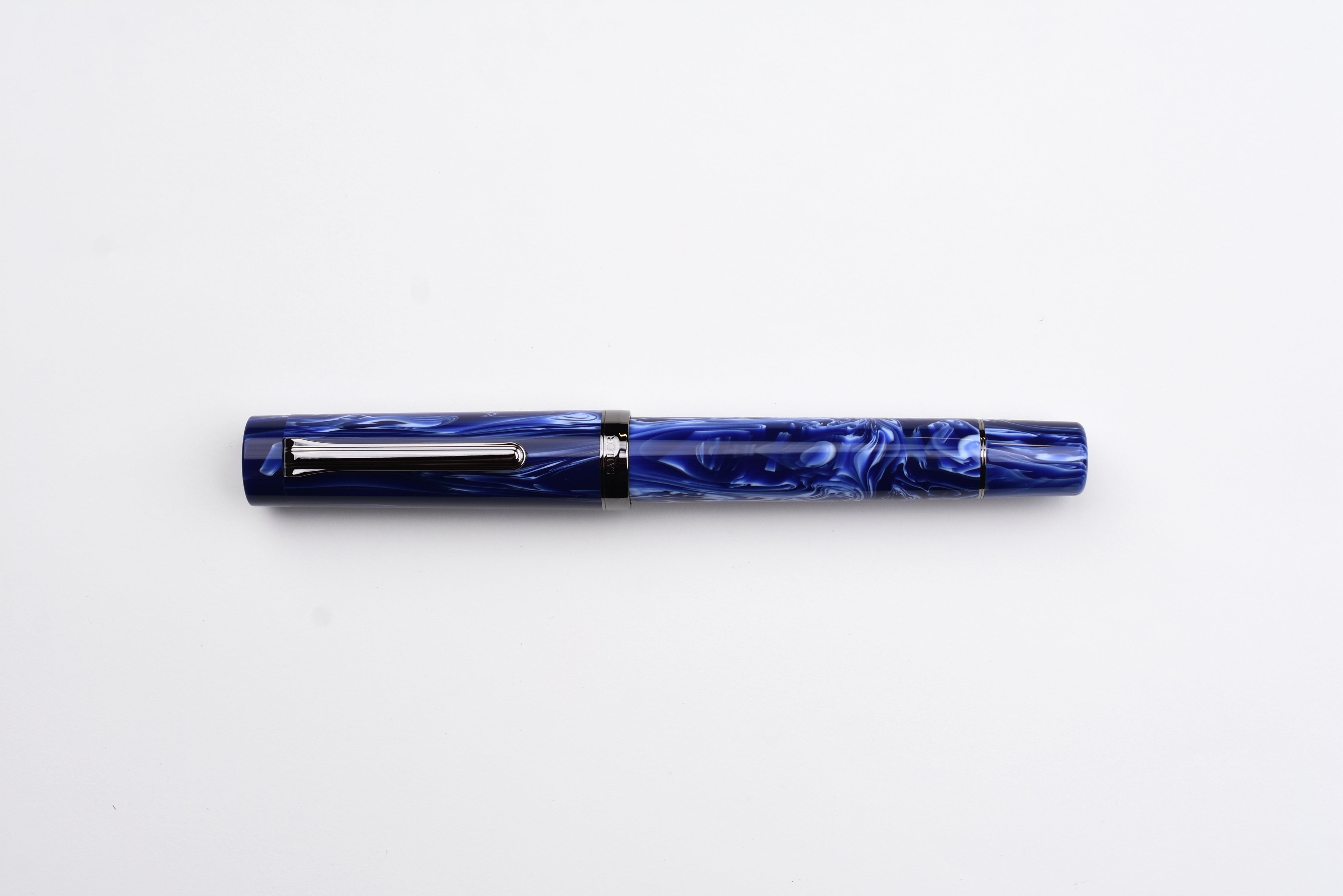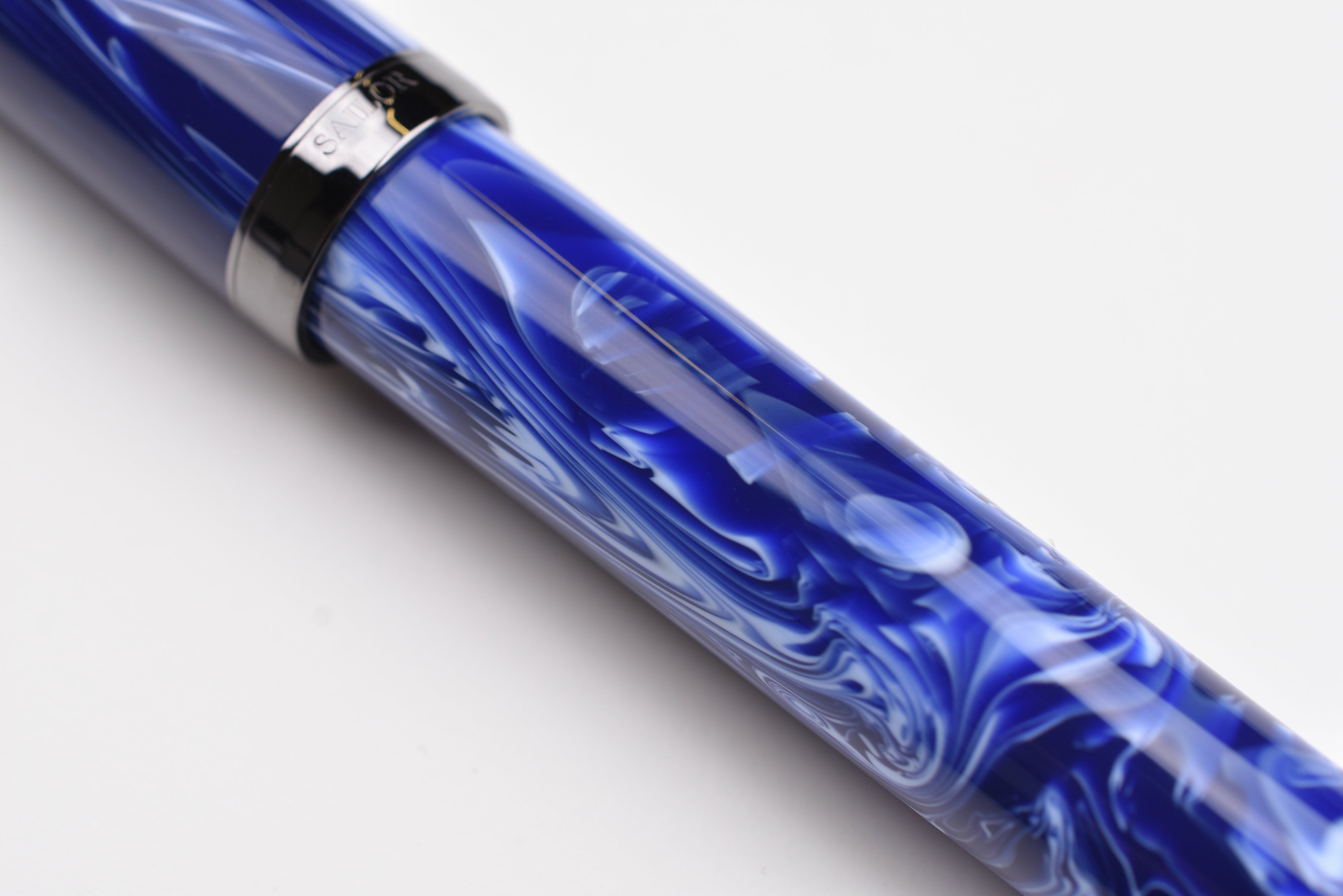 Sailor Luminous Shadow King of Pen Fountain Pen – Storm Blue – Limited Edition evokes dark, swirling storm clouds and the hints of light that come through with its deep blue and white marbled finish.