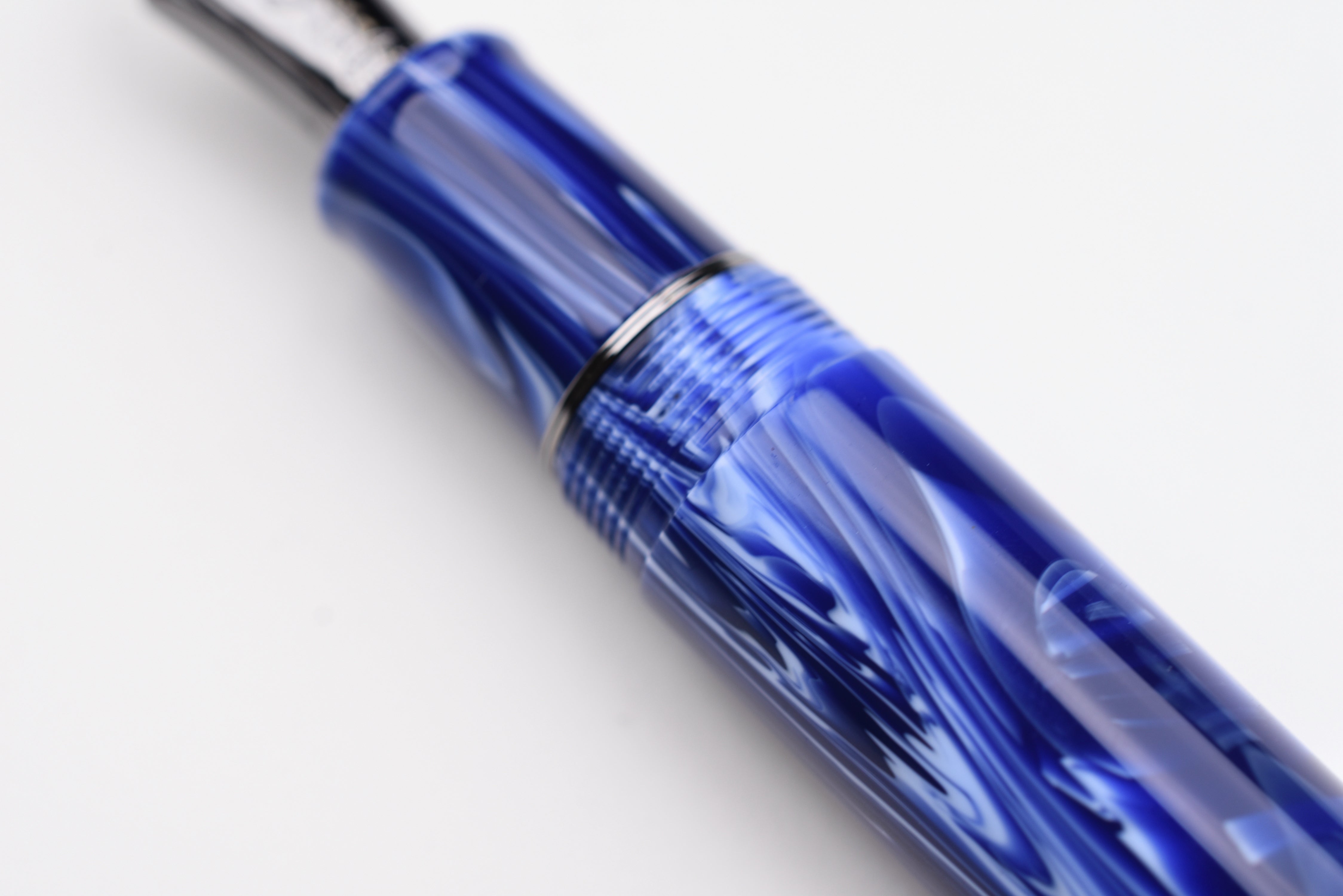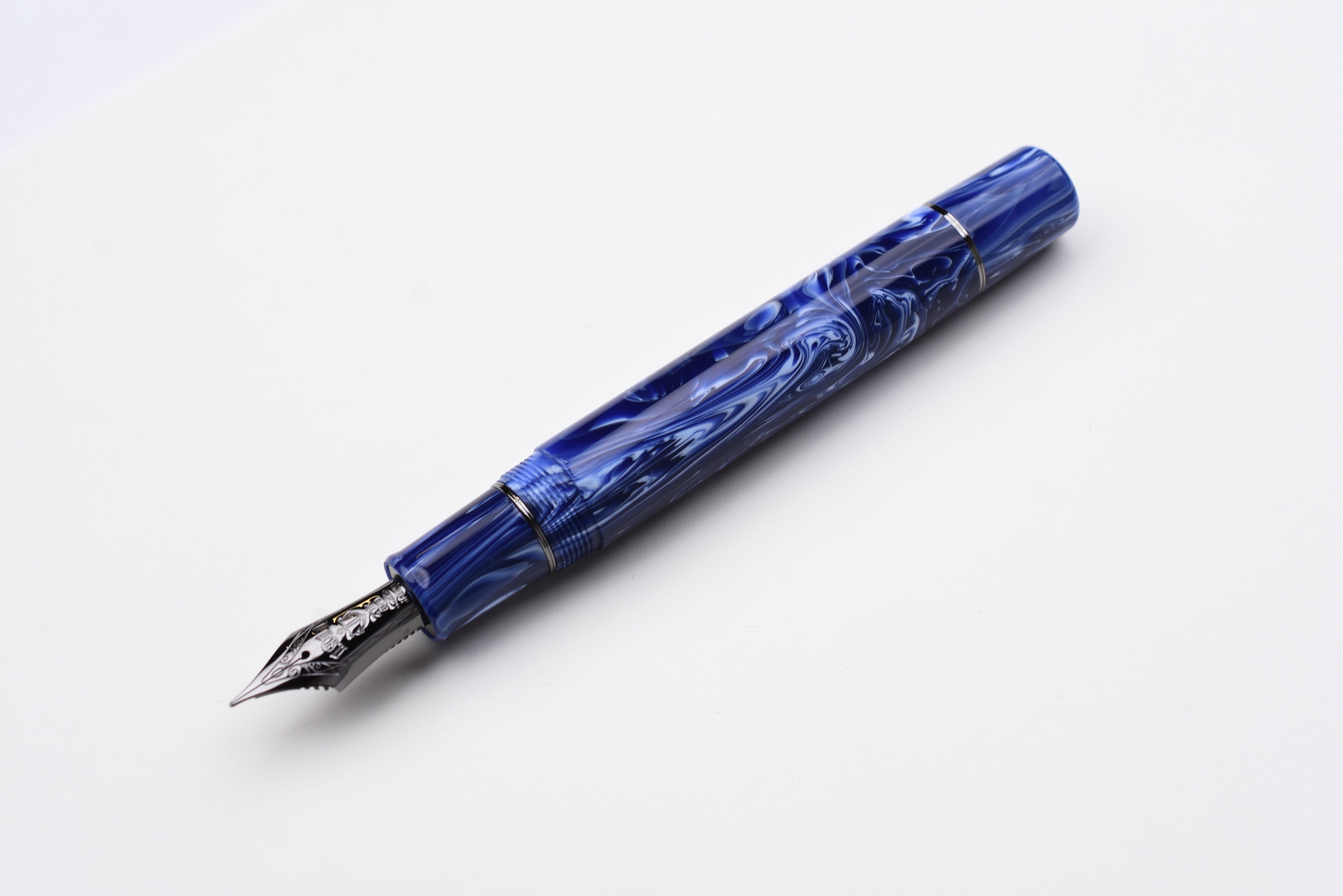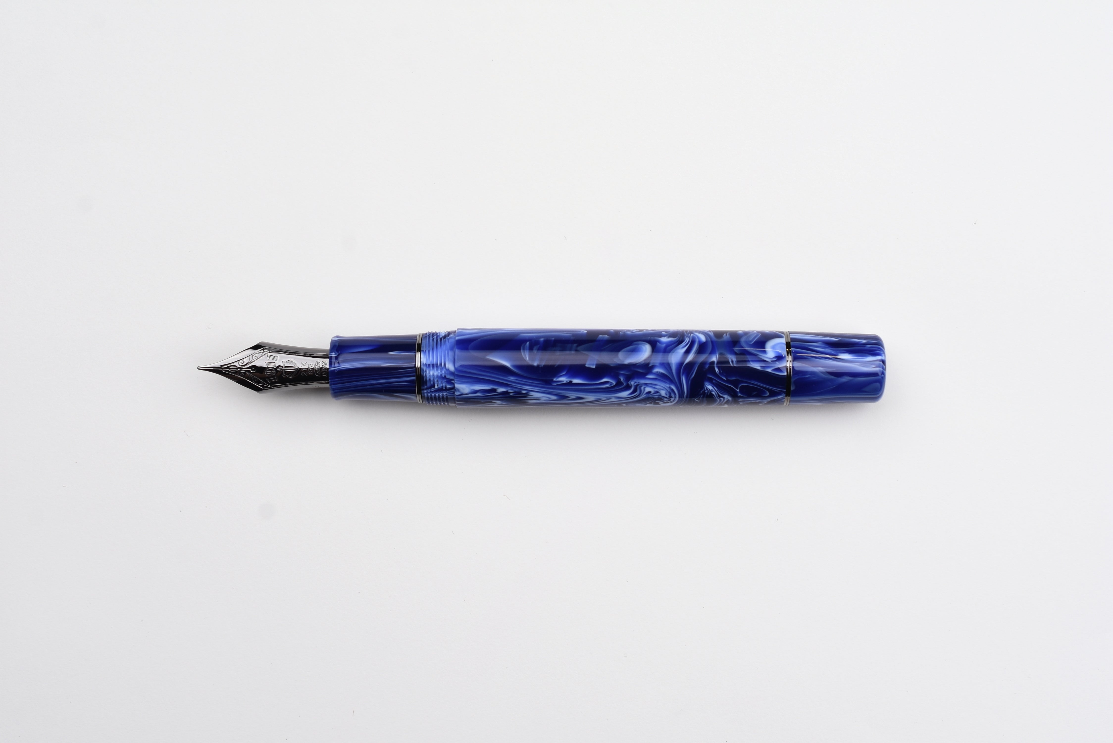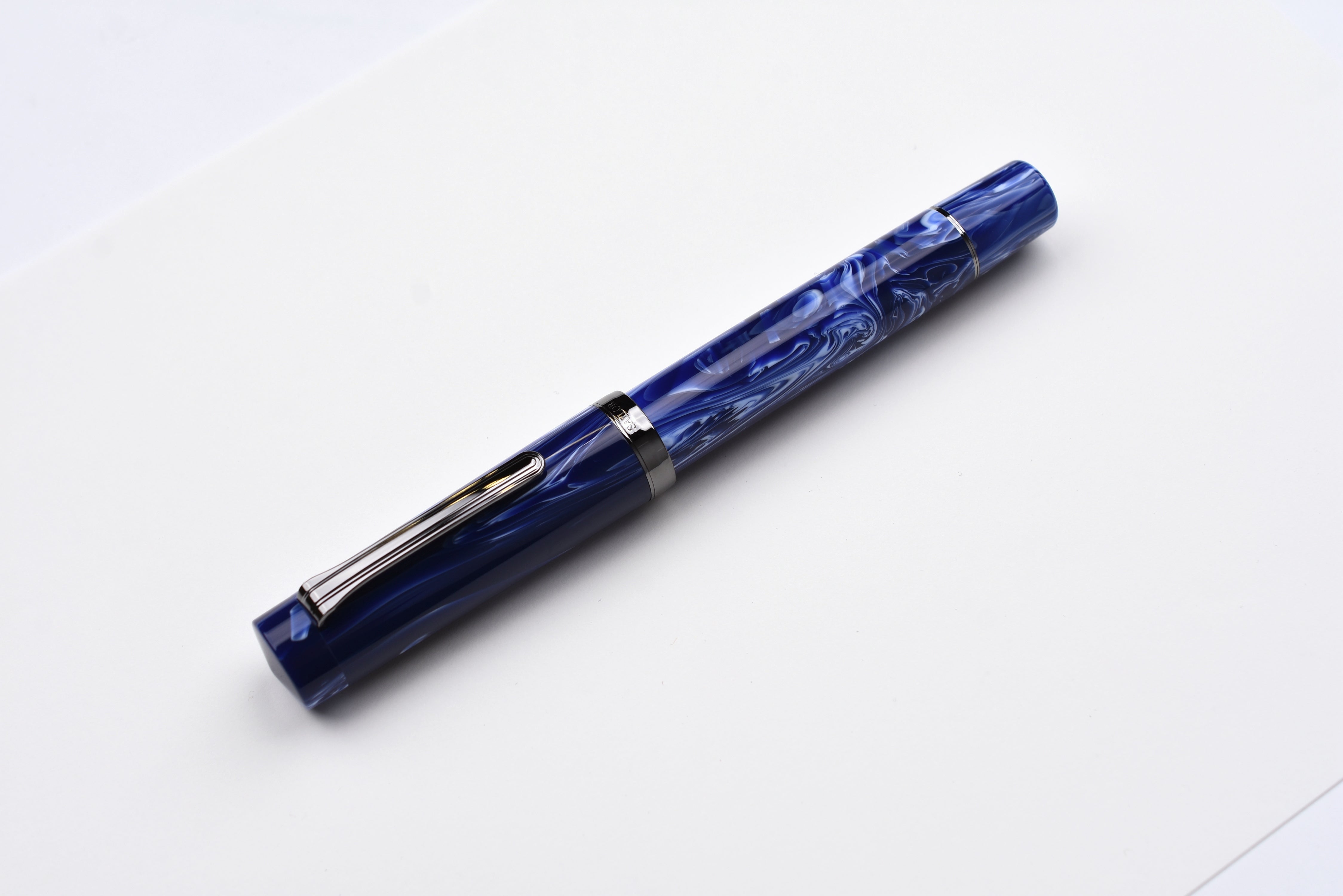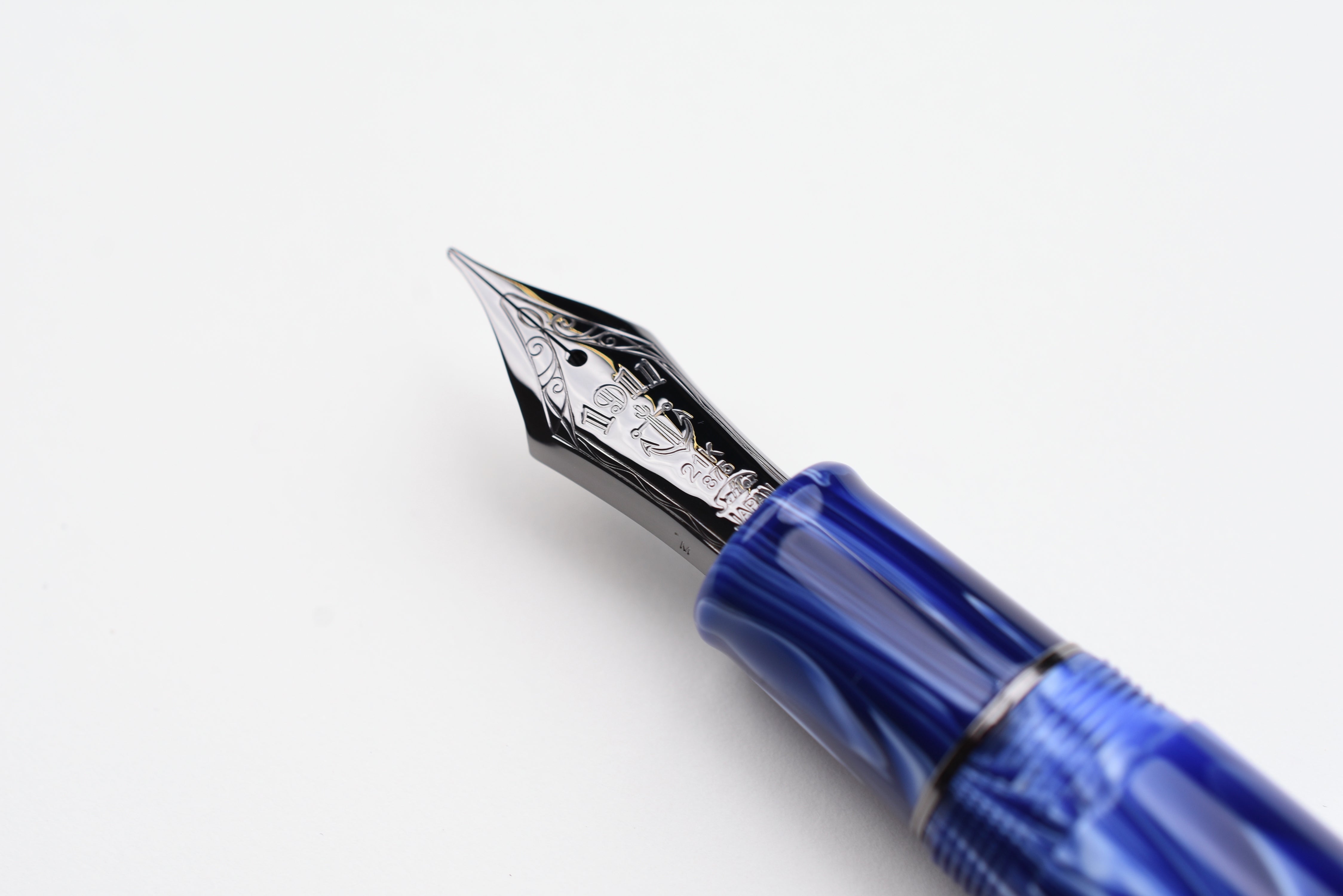 Sailor Luminous Shadow King of Pen Fountain Pen – Storm Blue – Limited Edition evokes dark, swirling storm clouds and the hints of light that come through with its deep blue and white marbled finish.