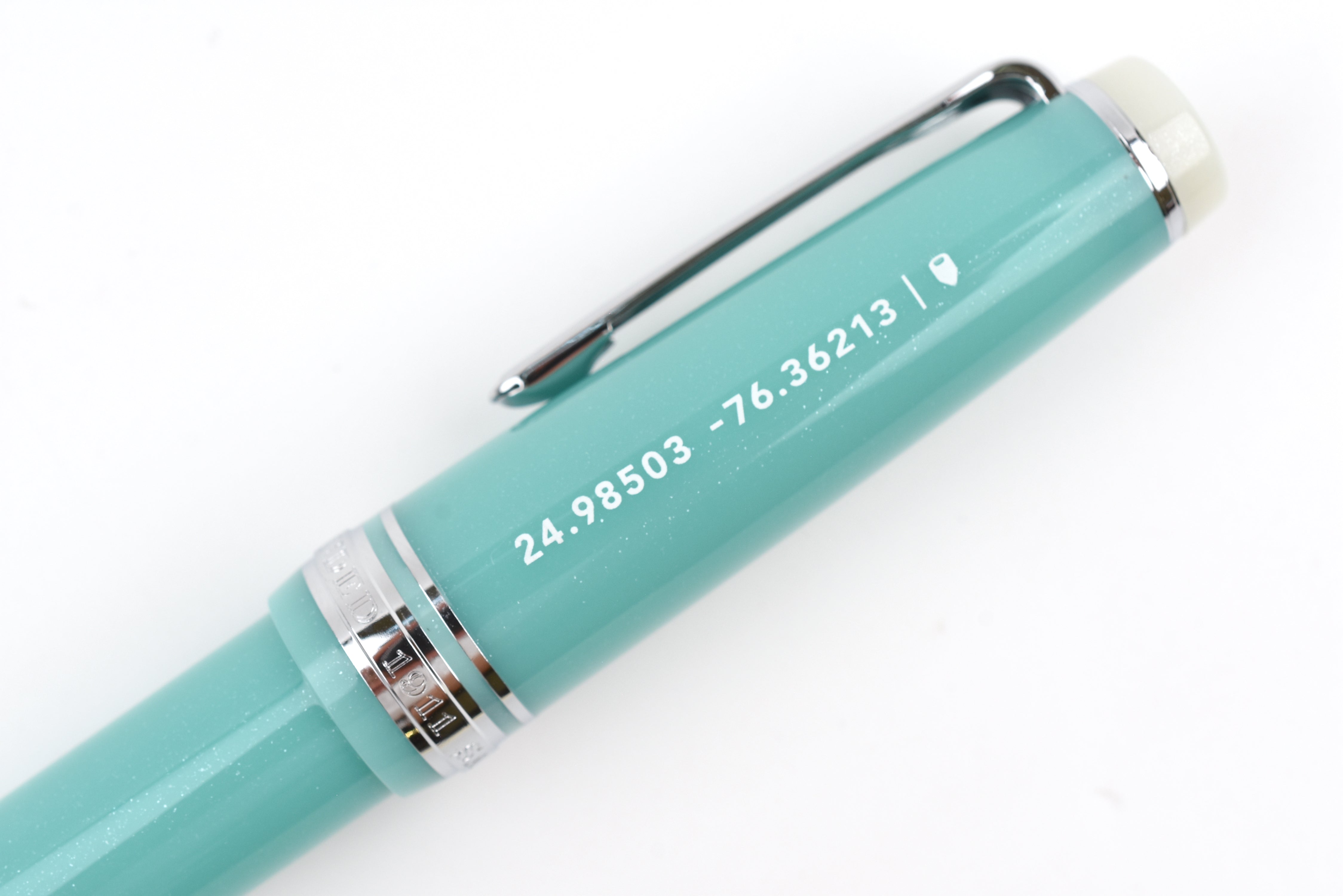 Located in the Bahamas and best known for its scenic beaches, Eleuthera Island is surrounded by stunningly turquoise-blue colored waters. The coordinates on the pen: 24.98503, -76.36213, will bring you directly to this beautiful tropical island. This limited edition fountain pen also comes with a special Sailor converter that matches with the pen body.