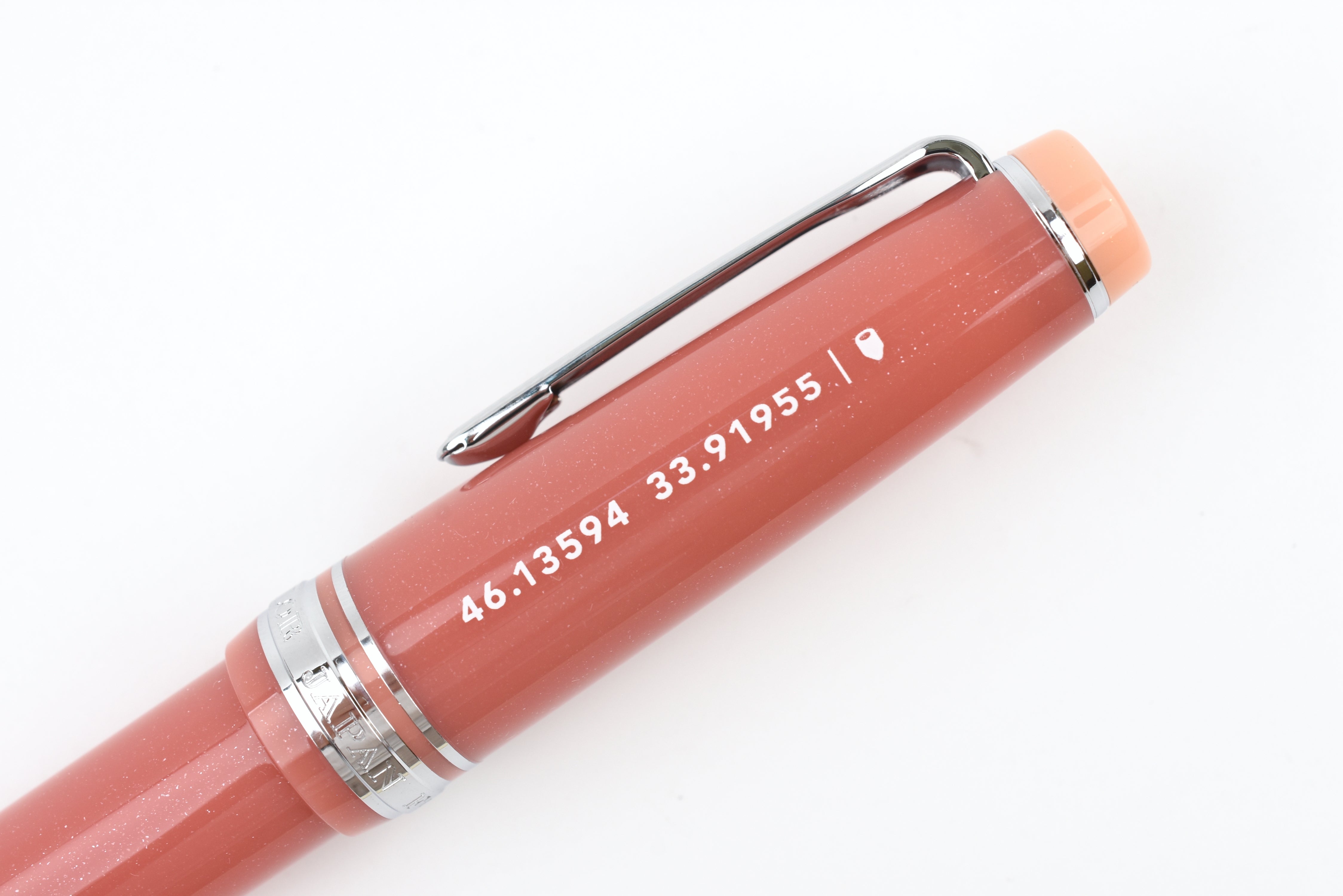 Located on the west coast of the Sea of Azov in Ukraine, Syvash is also known as the Putrid Sea or Rotten Sea. The coordinates on the pen: 46.13594, 33.91955, will bring you directly to this coral red lagoon. This limited edition fountain pen also comes with a special Sailor converter that matches with the pen body.