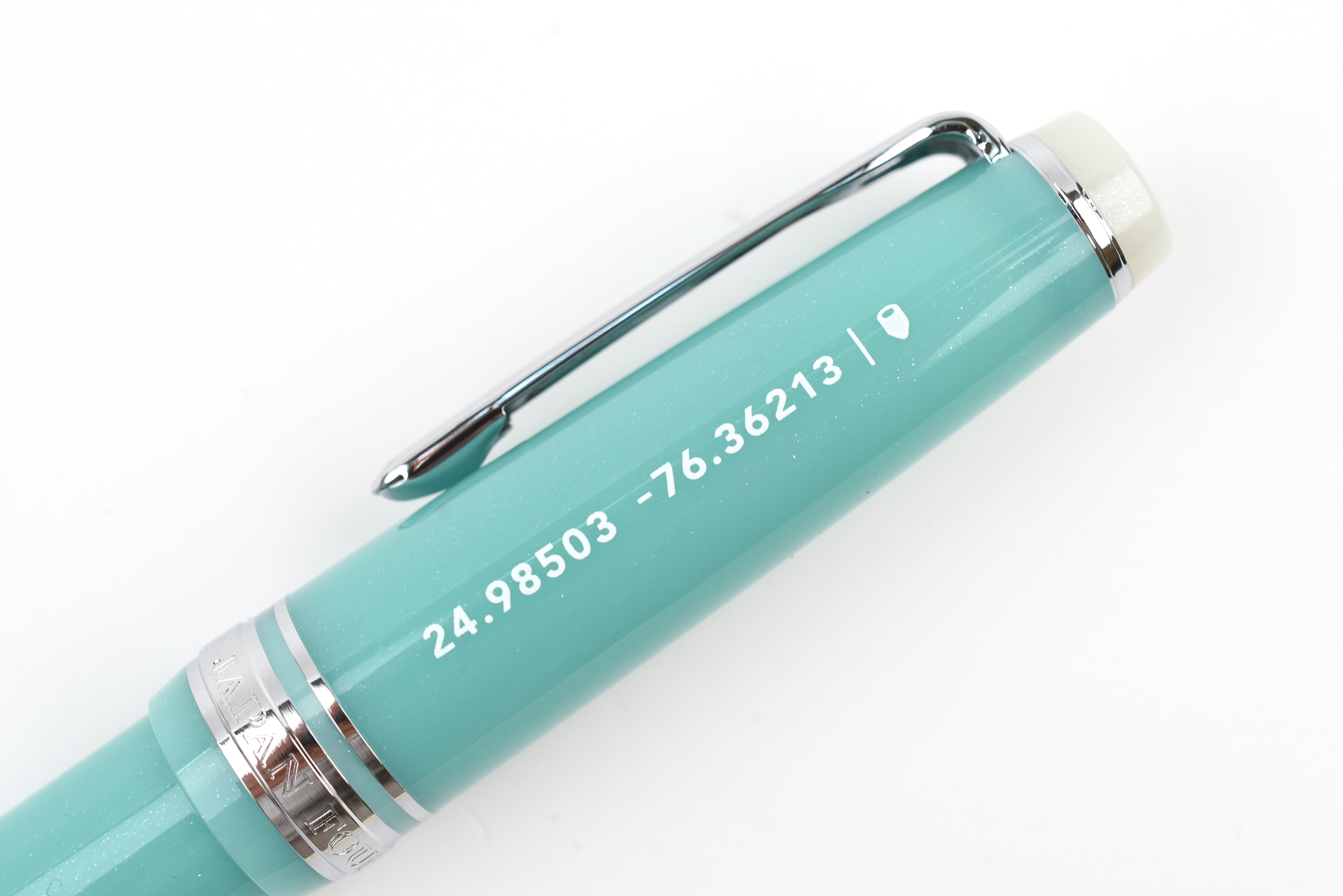 Located in the Bahamas and best known for its scenic beaches, Eleuthera Island is surrounded by stunningly turquoise-blue colored waters. The coordinates on the pen: 24.98503, -76.36213, will bring you directly to this beautiful tropical island. This limited edition fountain pen also comes with a special Sailor converter that matches with the pen body.