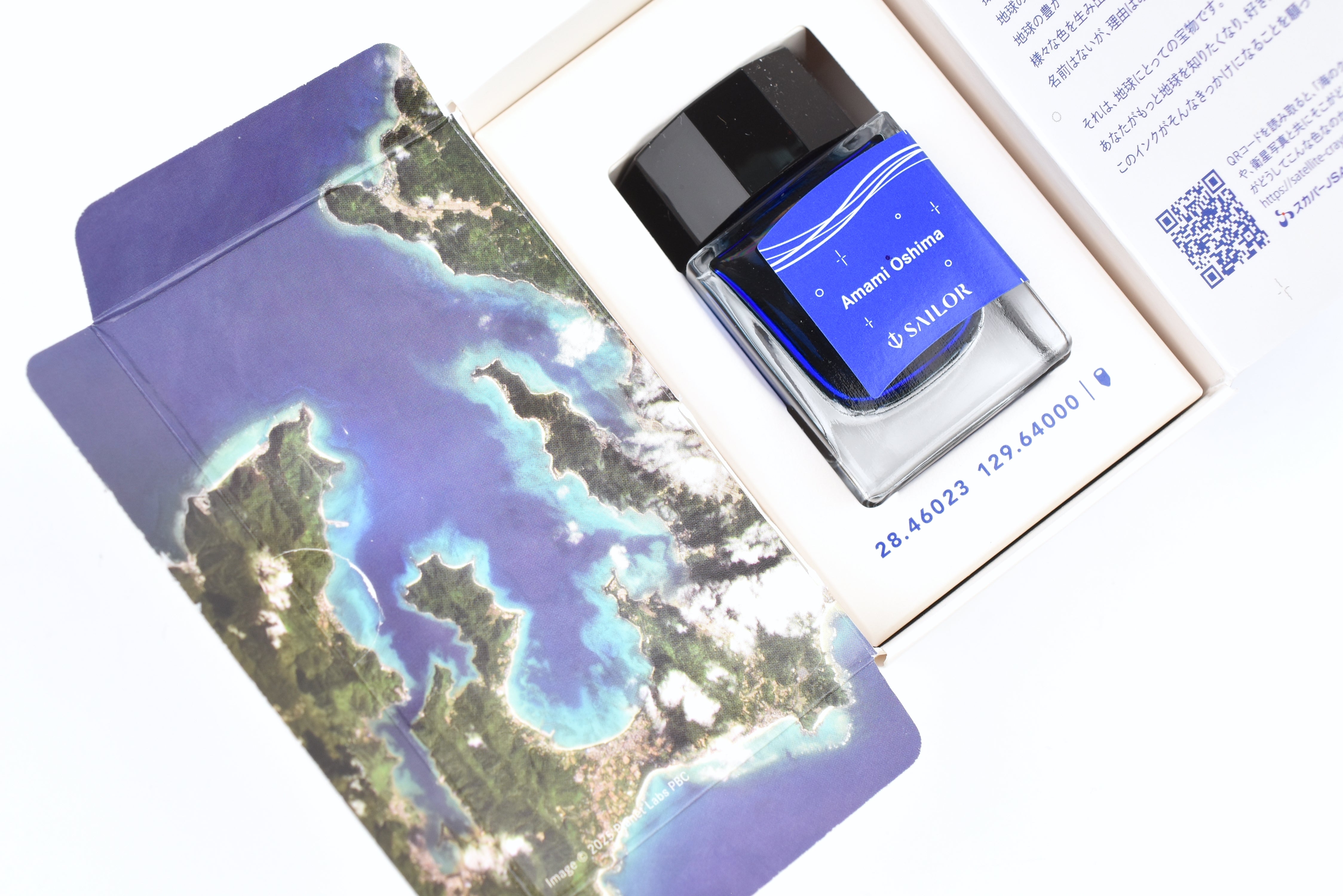 The Satellite Crayon Project is a special program in Japan that aims to share the beauty and nature of our planet to a broader audience. This special project extracts the beautiful colors from satellite photography and transforms them into different sets of crayons. In this limited collaboration with Sailor, they selected the 12 Sea Crayon Set and transformed them into ink colors including the following three sea bodies: "Syvash", "Eleuthera Island", and "Amami Oshima". On the packaging of each ink bottle, you may find geographic coordinates that will bring you to the location of the sea, as well as a stunning satellite image of the color inspiration.